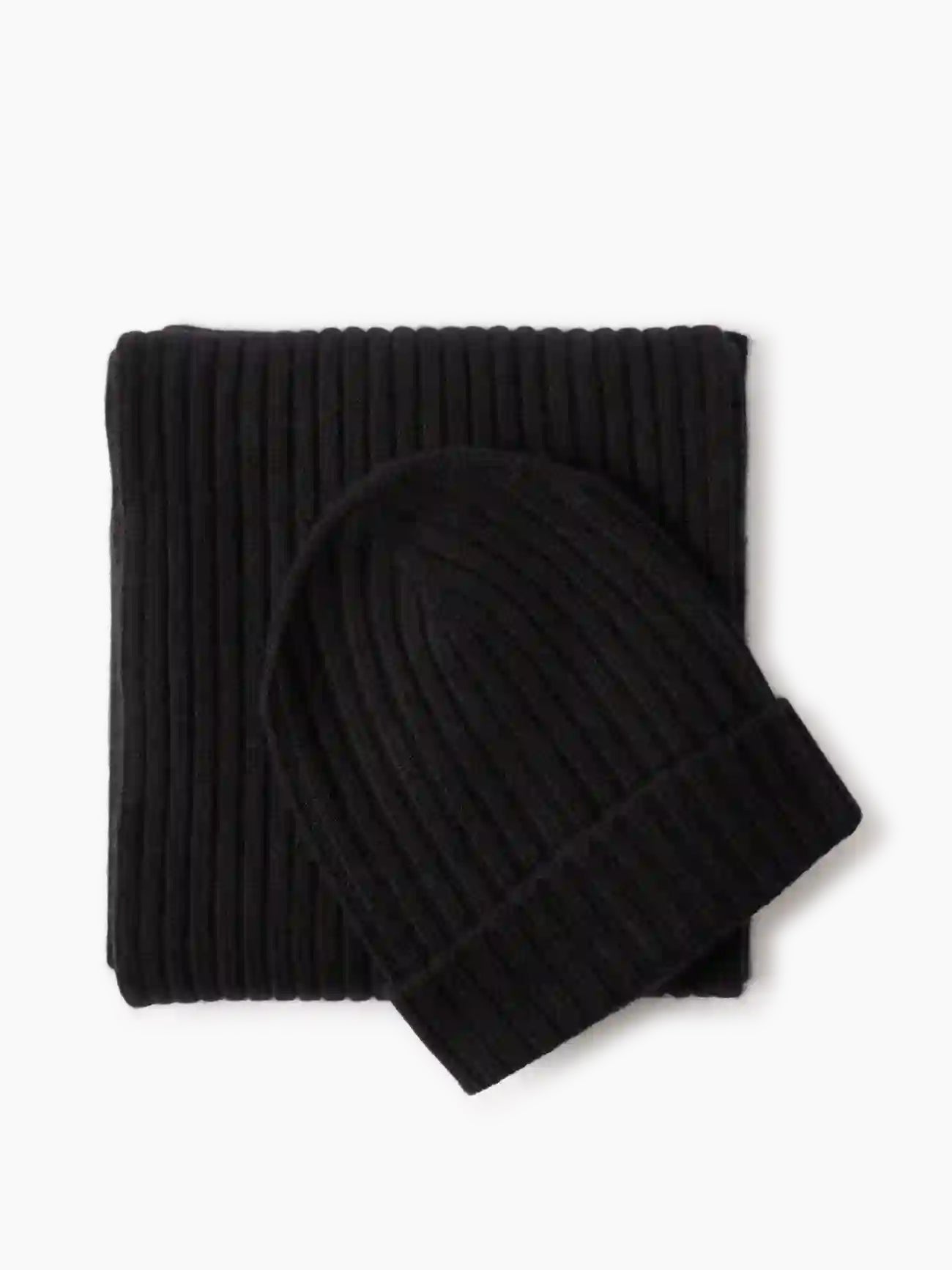 This textured hat and scarf set, in heavy weight luxurious chunky knit cashmere, carefully and sustainably selected for its exceptional softness and rich texture. Featuring fully fashioned seams and a flattering hem turn up.