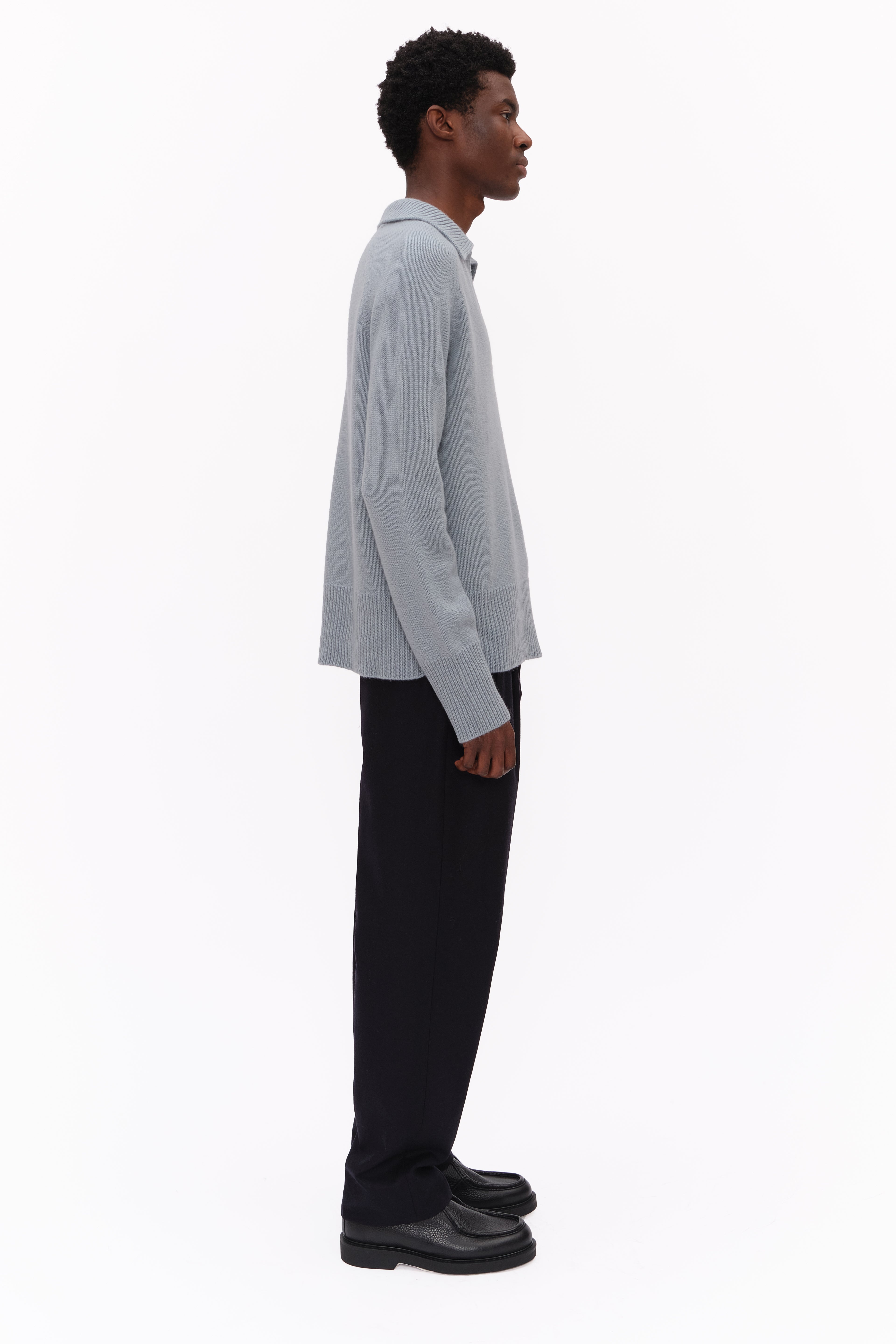 This collared v-neck neck jumper, in luxurious chunky knit cashmere, carefully and sustainably selected for its exceptional lightweight softness. With relaxed silhouette, ribbed cuffs and hem, and balanced by elegant long sleeves, Mr Clifton Gate is perfect for layering or wearing on its own.