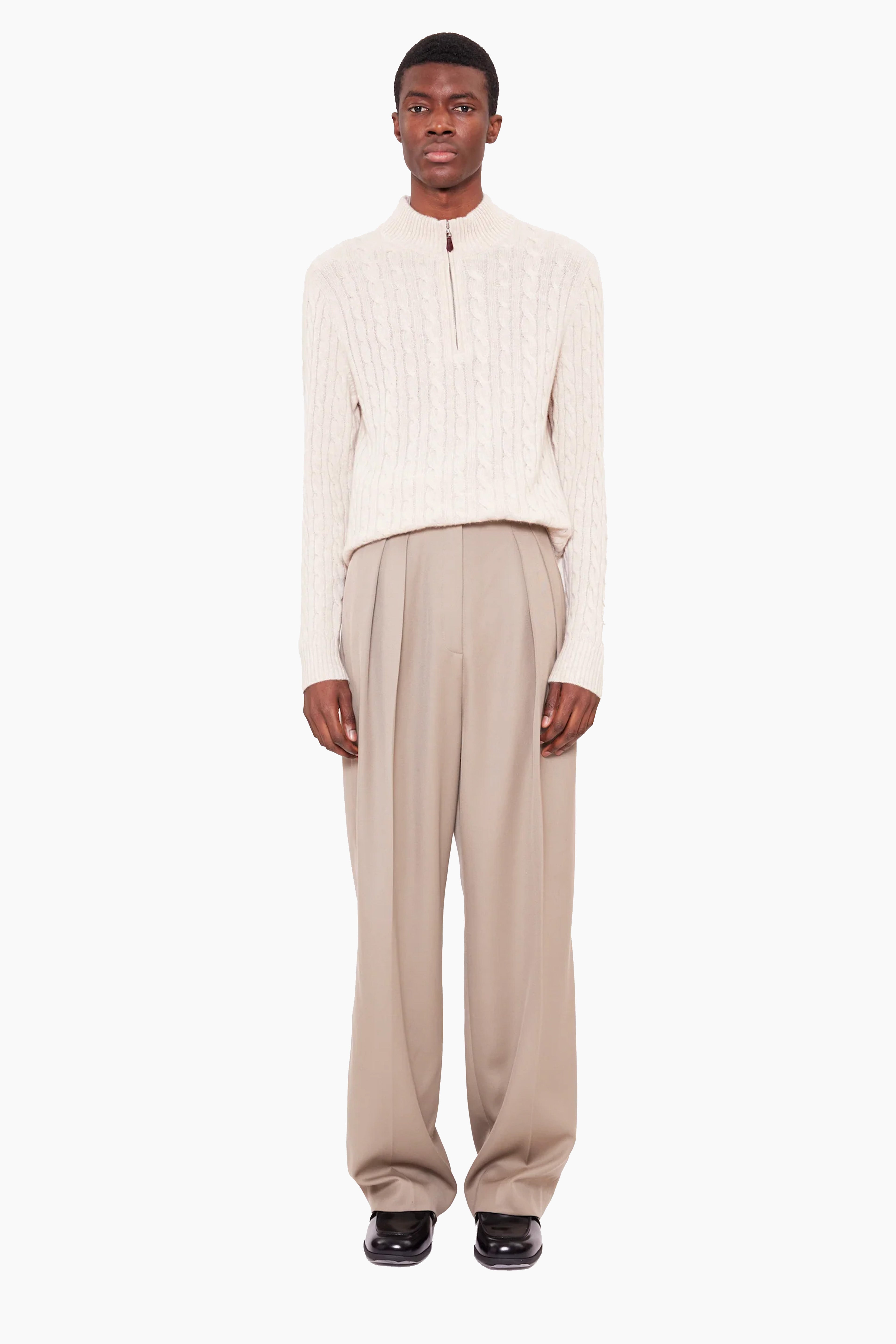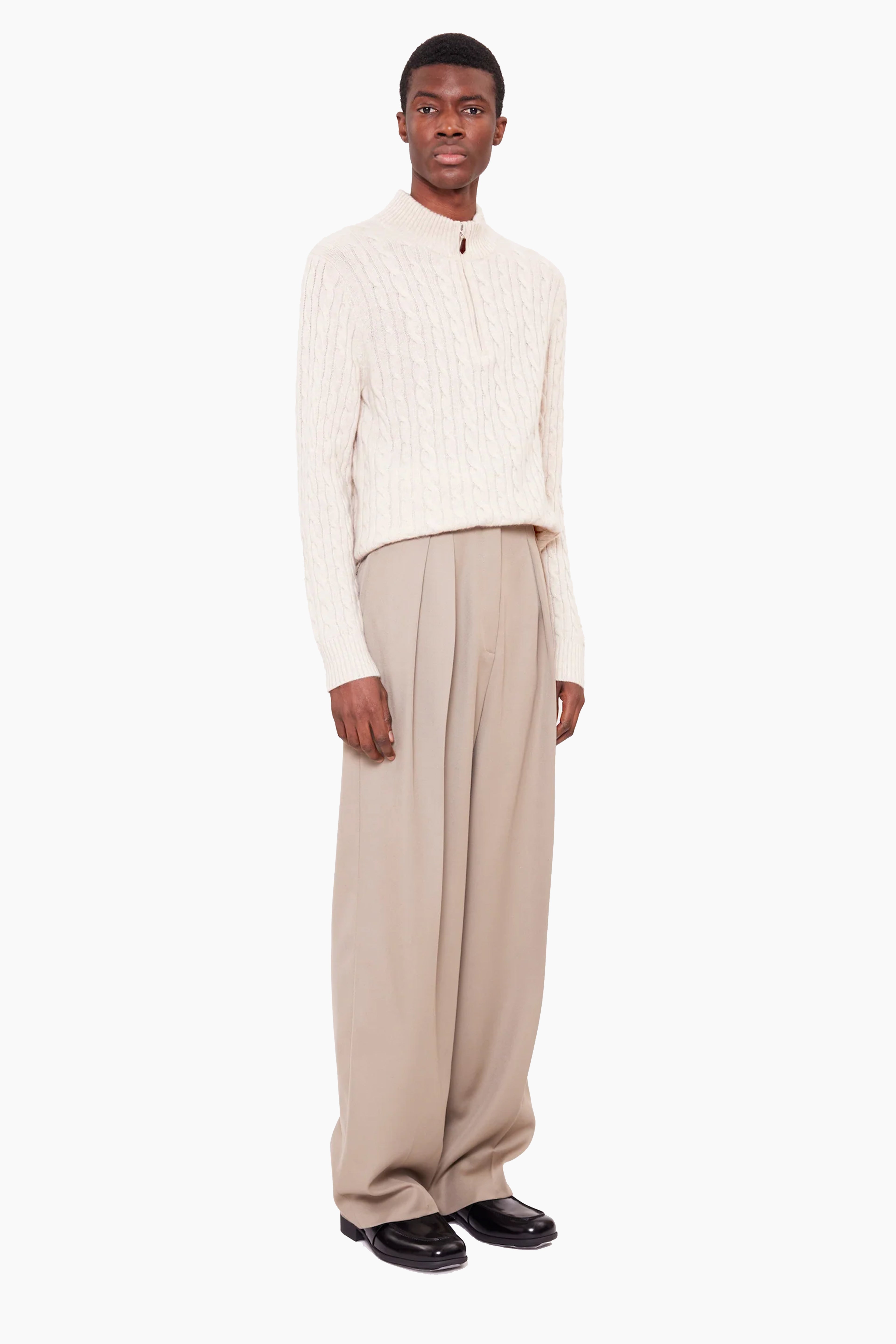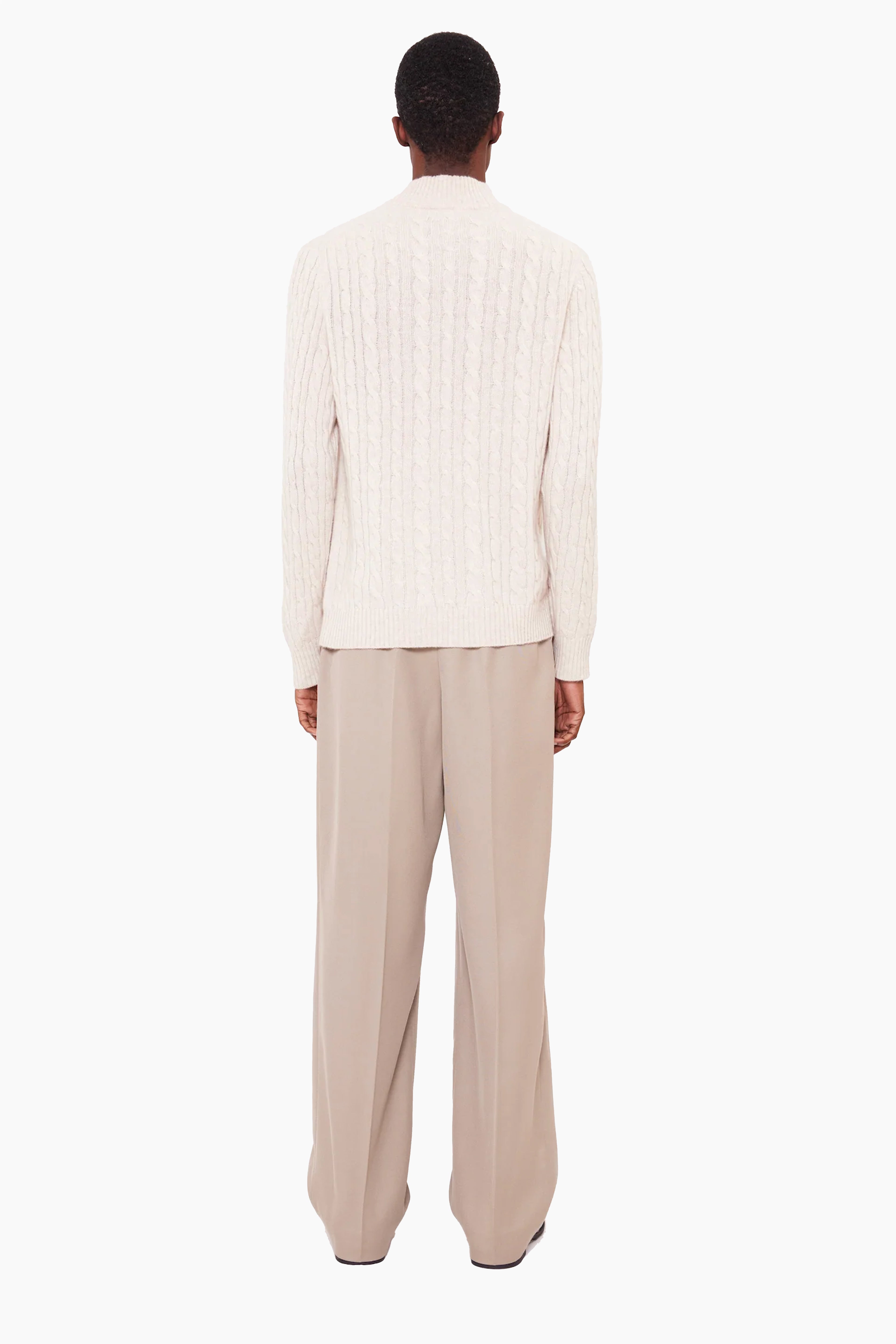 This half zip, in luxurious cable knit cashmere, carefully and sustainably selected for its exceptional lightweight softness. With fitted silhouette balanced by elegant long sleeves, perfect for layering or wearing on its own.