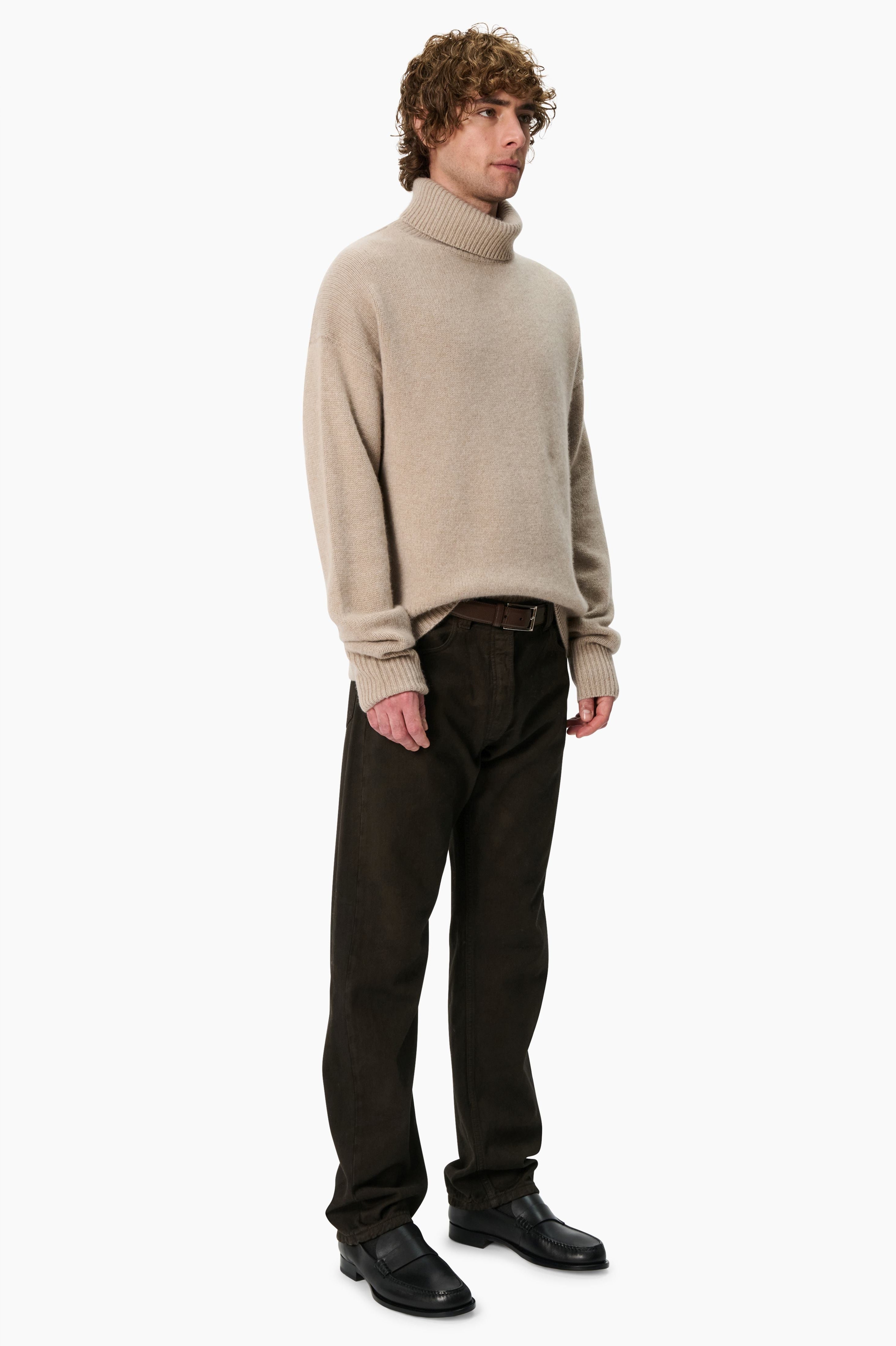 This Double Roll neck jumper, in luxurious chunky knit cashmere, carefully and sustainably selected for its exceptional lightweight softness. With relaxed silhouette, ribbed cuffs and hem, and balanced by elegant long sleeves, Mr World's End is perfect for layering or wearing on its own.