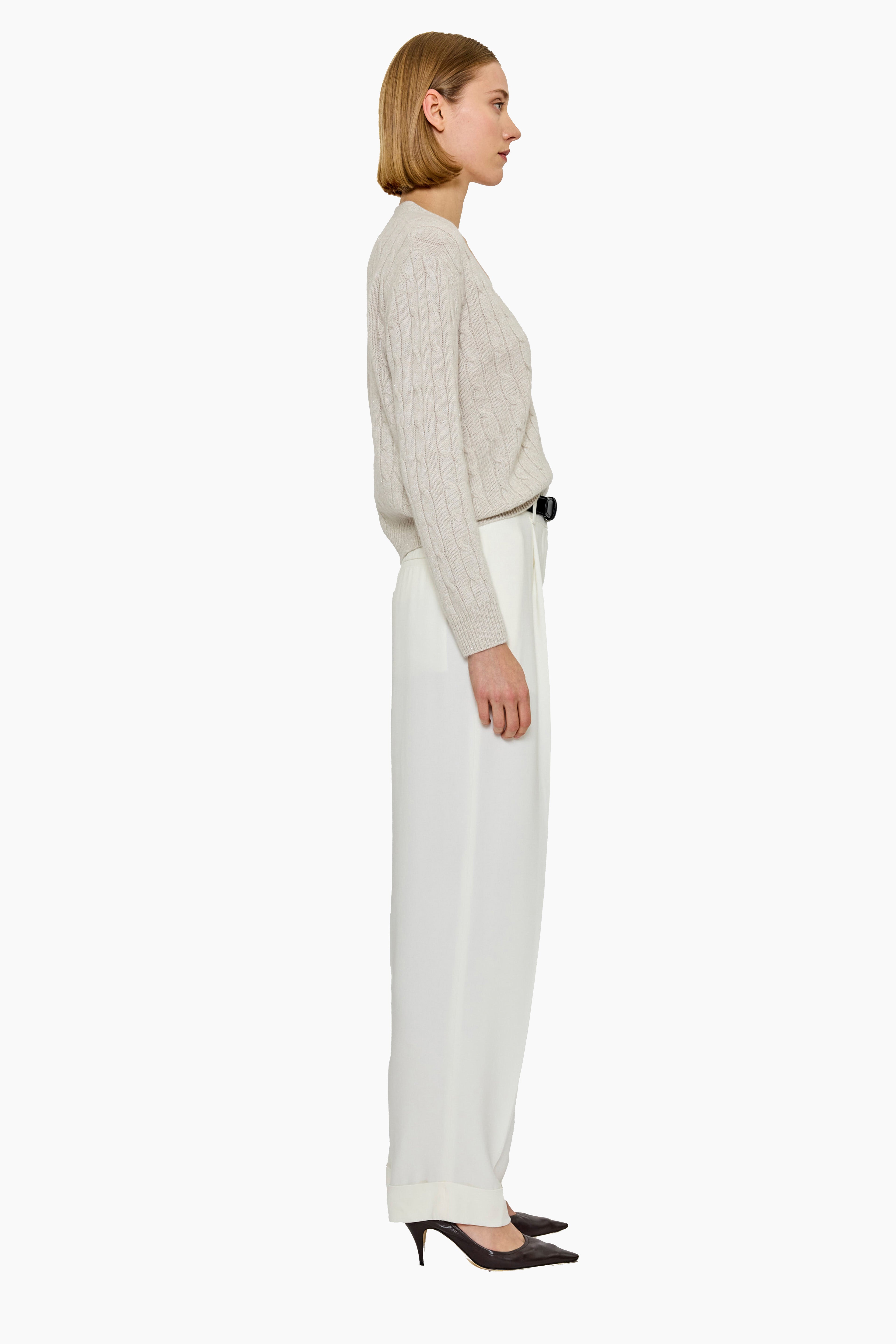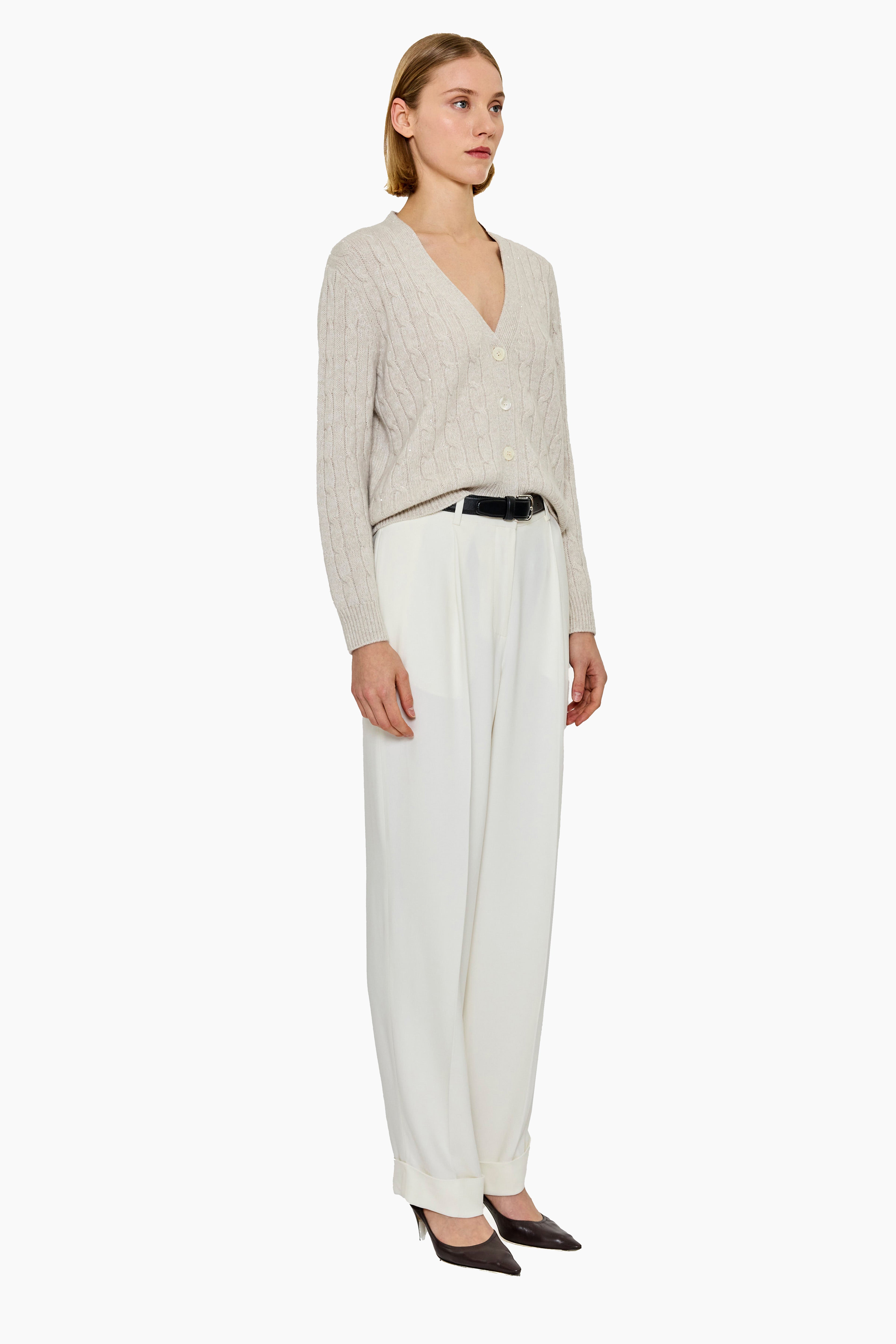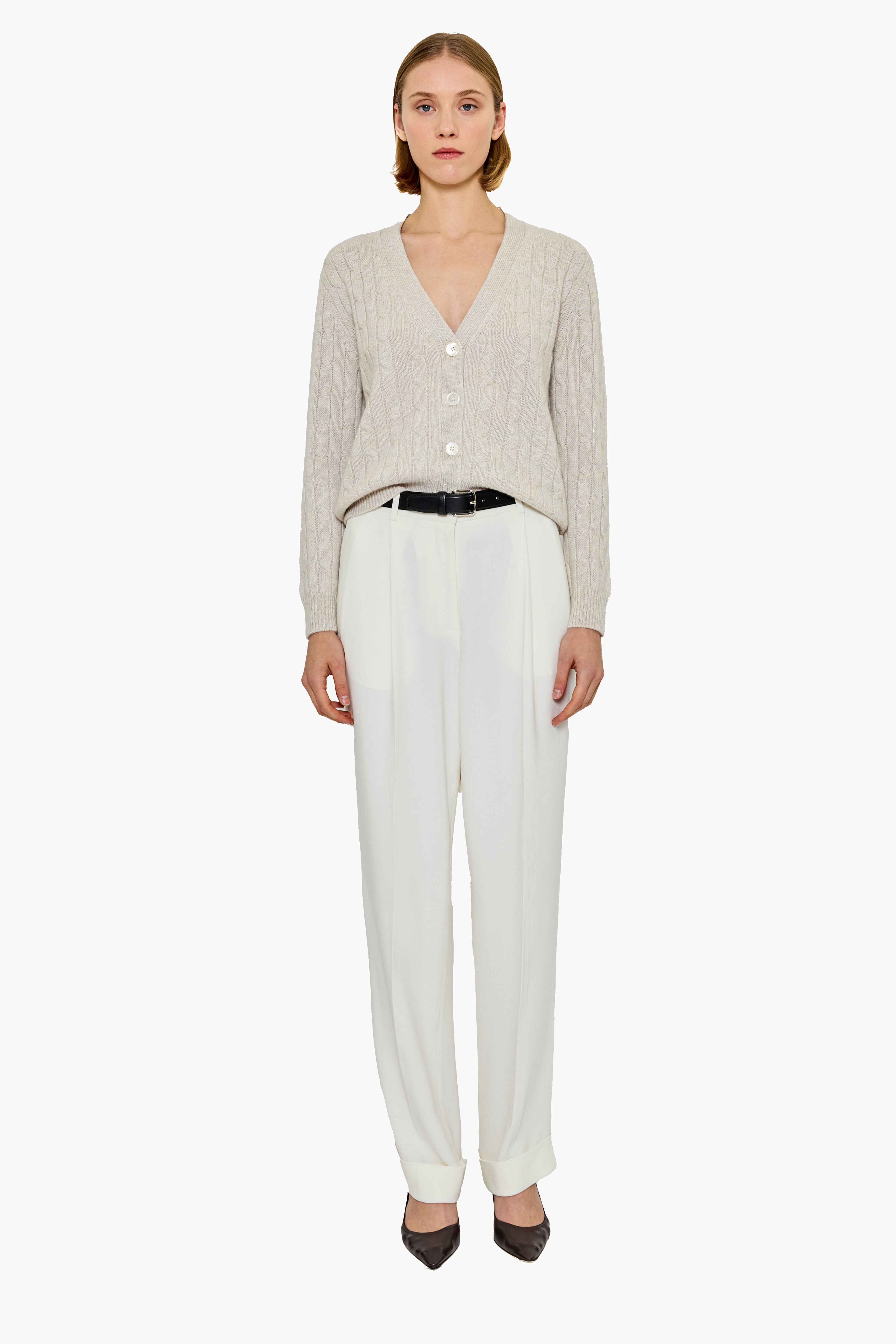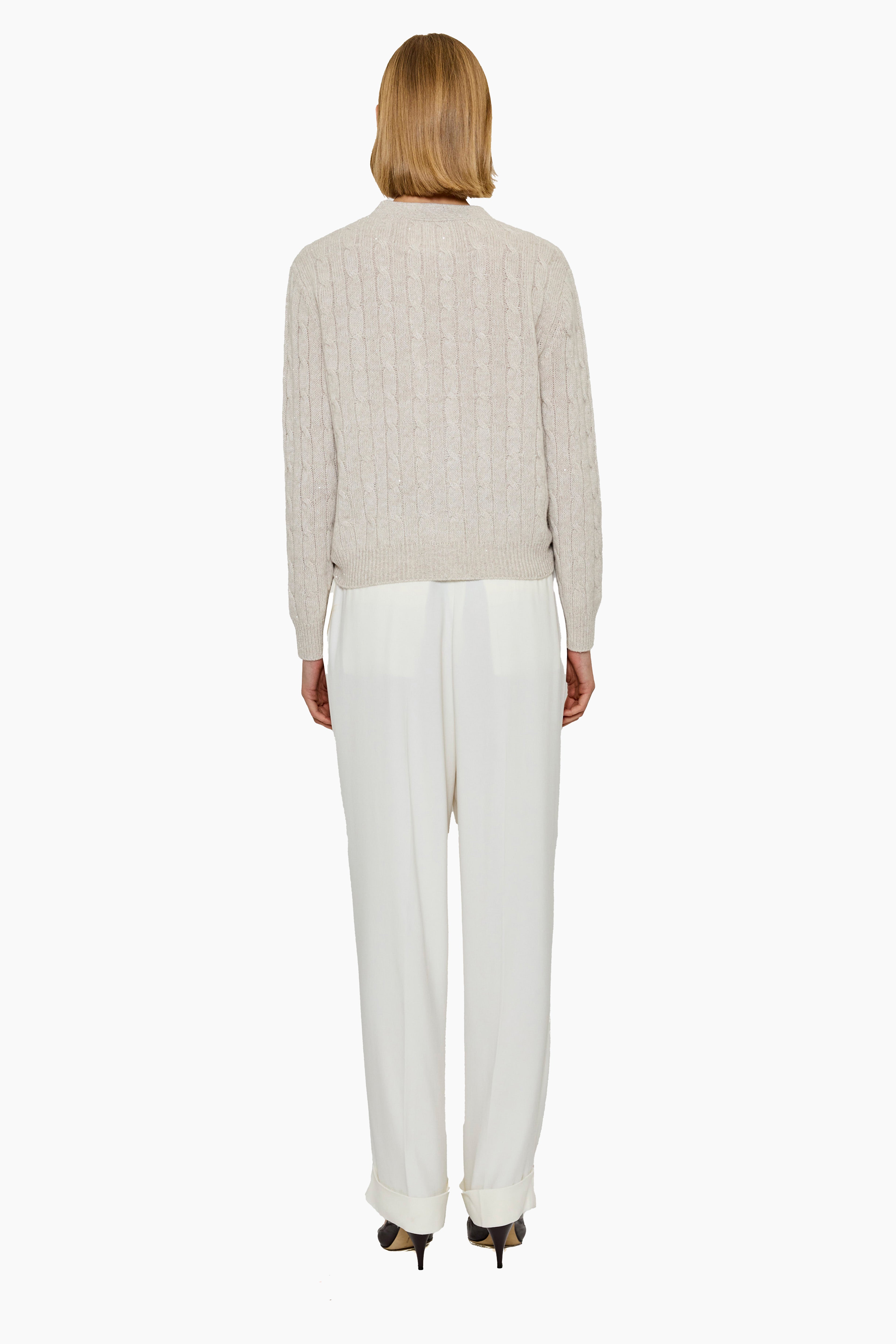 The Lane Cashmere V-Neck Cardigan reimagines a classic silhouette with a hint of subtle sparkle. Crafted from the finest cashmere, it features a flattering V-neckline, button-down front, and a timeless rib finish, delicately accented with minimal sequins for refined shimmer. Soft, warm, and versatile, it’s perfect for both everyday layering and elevated occasions.