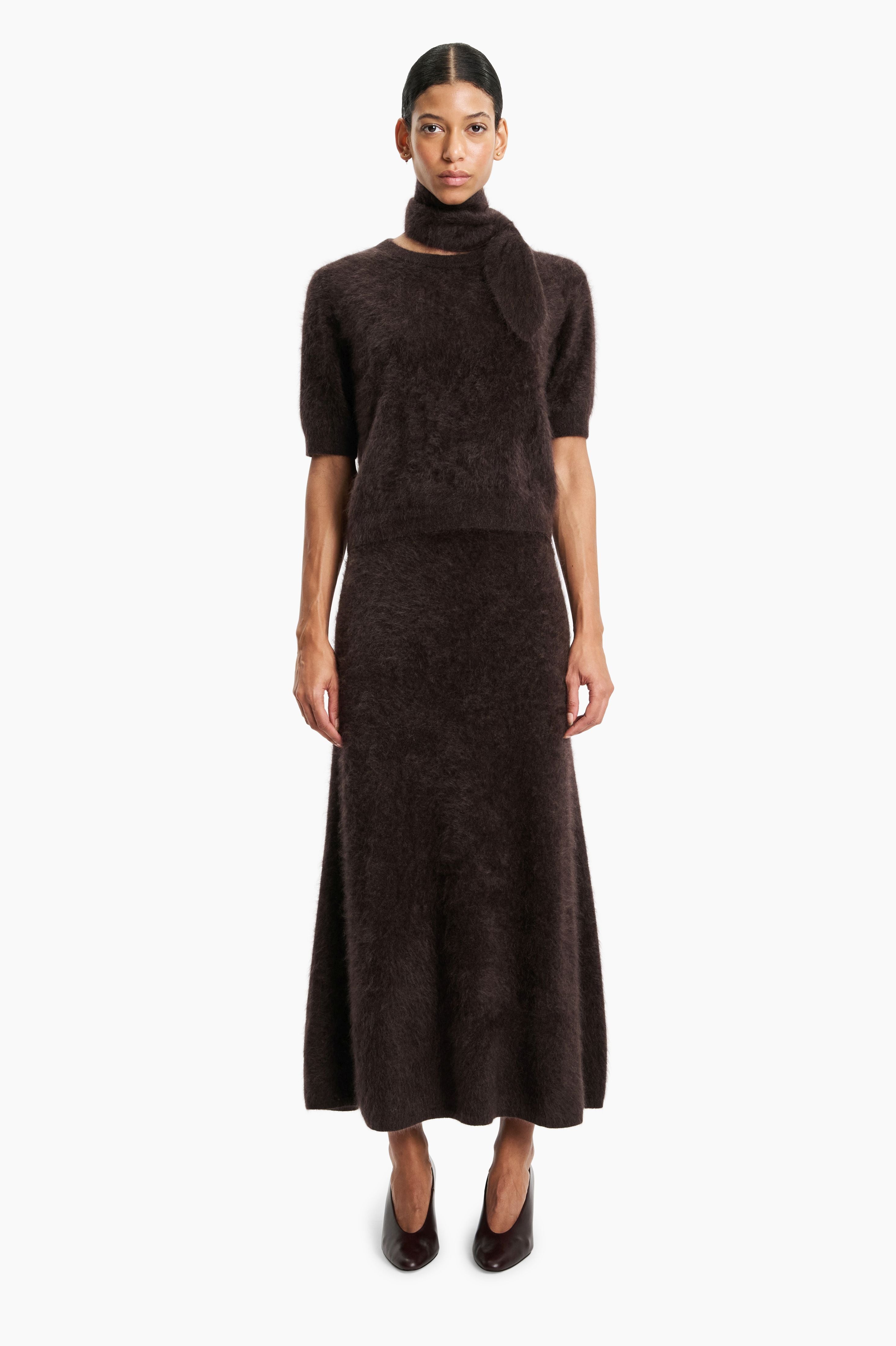 Indulge in understated elegance with our brushed cashmere skirt, a refined essential for effortless dressing. Crafted from sumptuously soft brushed cashmere, it offers a gentle texture with a luxurious hand feel. Designed in a mid-length A-line silhouette, it sits neatly at the waist before softly flaring to create fluid movement. The clean finish and rich tone make it a versatile piece, perfect for pairing with coordinating knits or elevated separates.