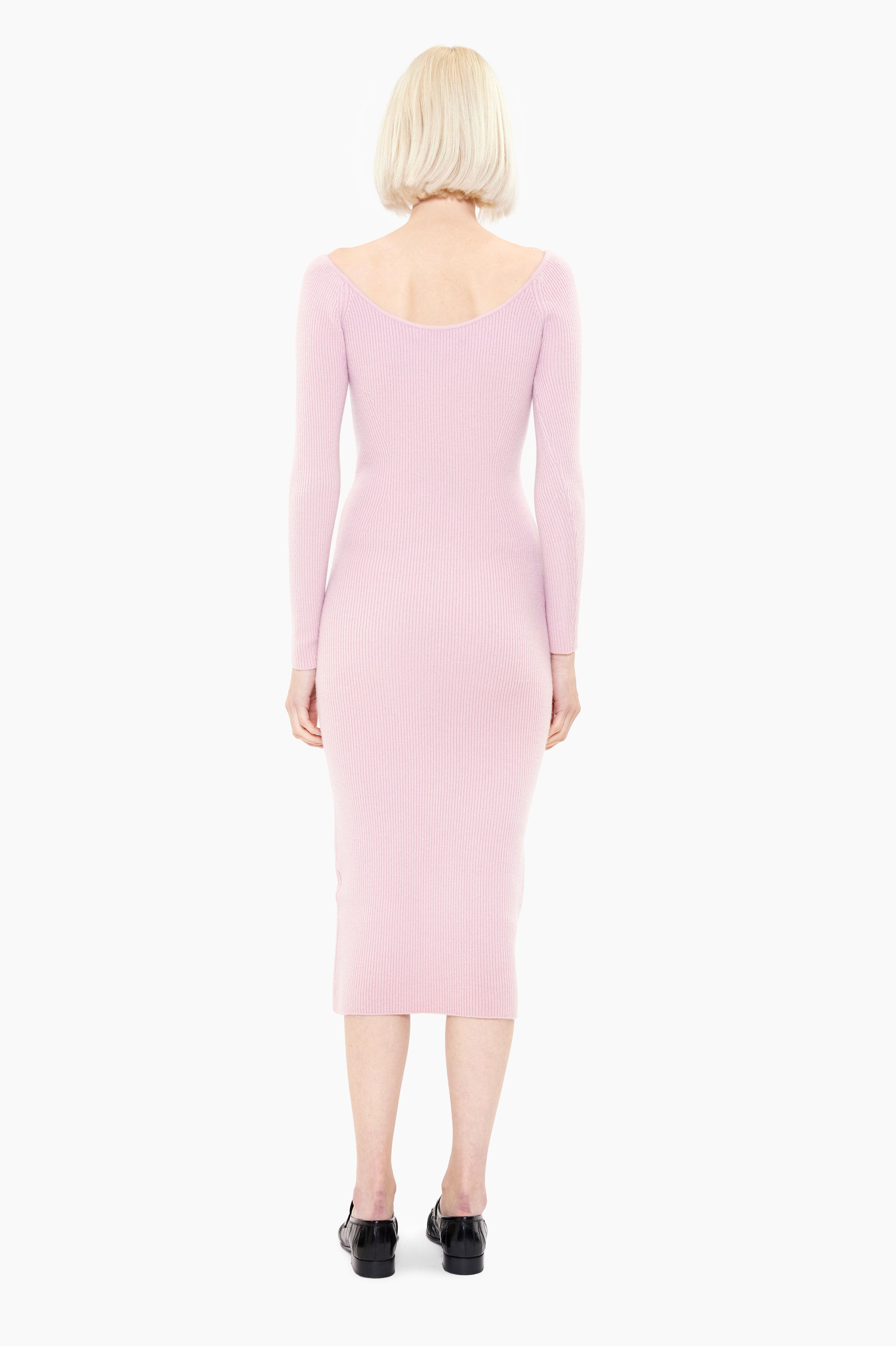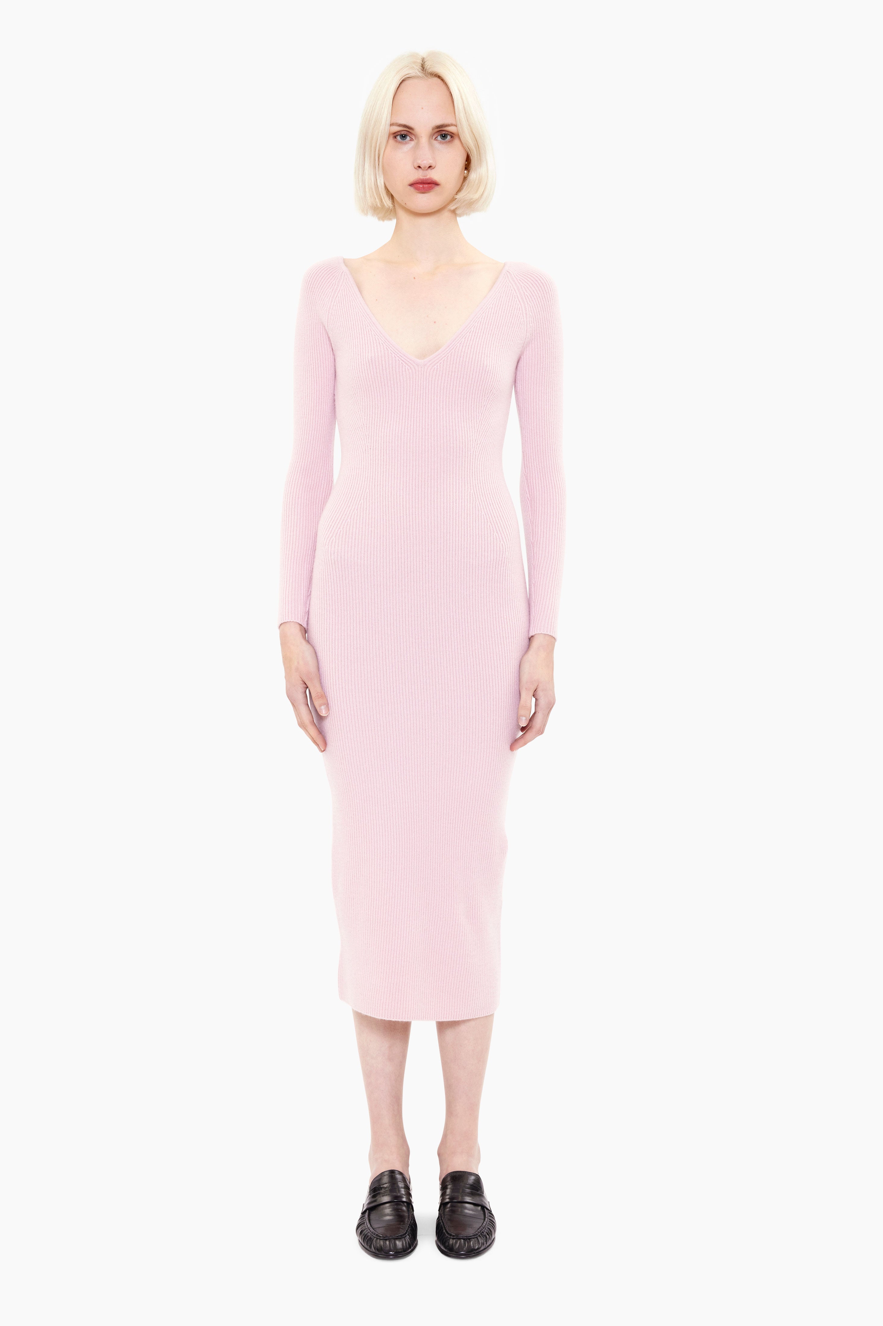 This unique long sleeve dress, highlighted by a flattering v-neck, in luxurious stretchy knit cashmere, has been carefully and sustainably selected for its exceptional stretch and fabric recovery. It features fully fashioned seams with a refined, elegant silhouette.