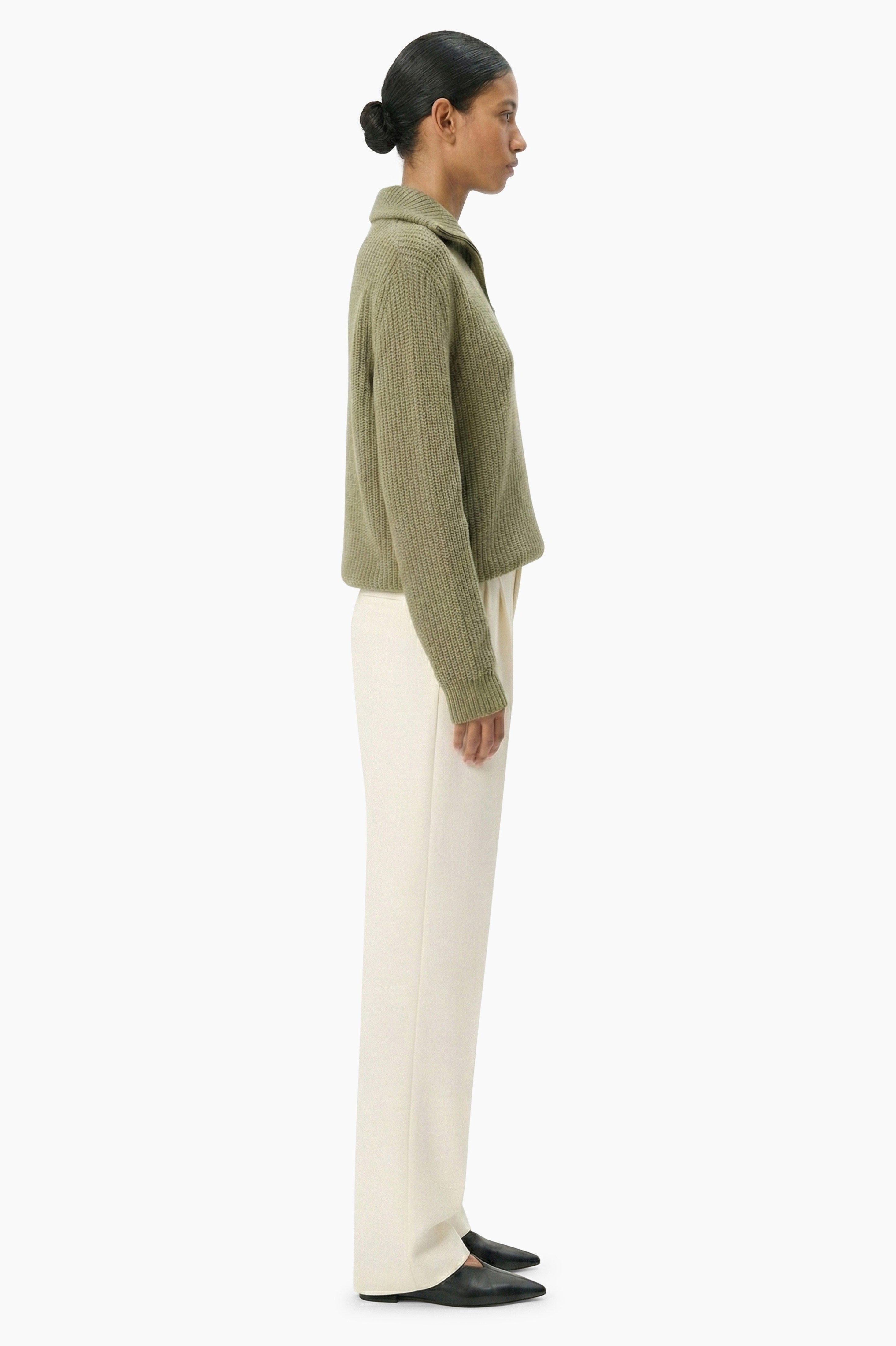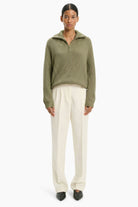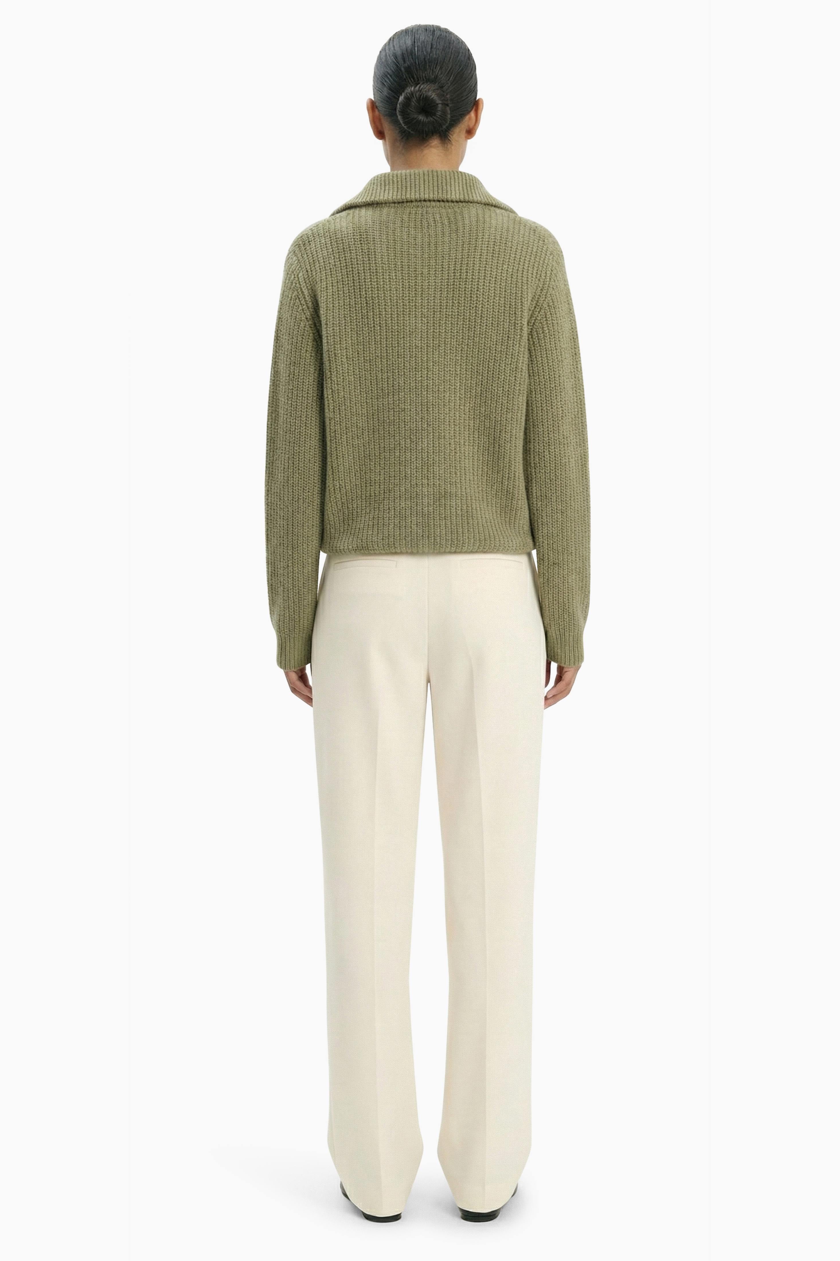 The Millie Quarter-Zip Ribbed Sweater blends casual ease with luxurious comfort. Crafted from 100% cashmere, it features a folded neck with a quarter-zip closure, ribbed detailing, and a relaxed fit. Soft, cozy, and versatile, it’s perfect for layering or wearing on its own for effortless style.