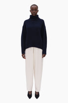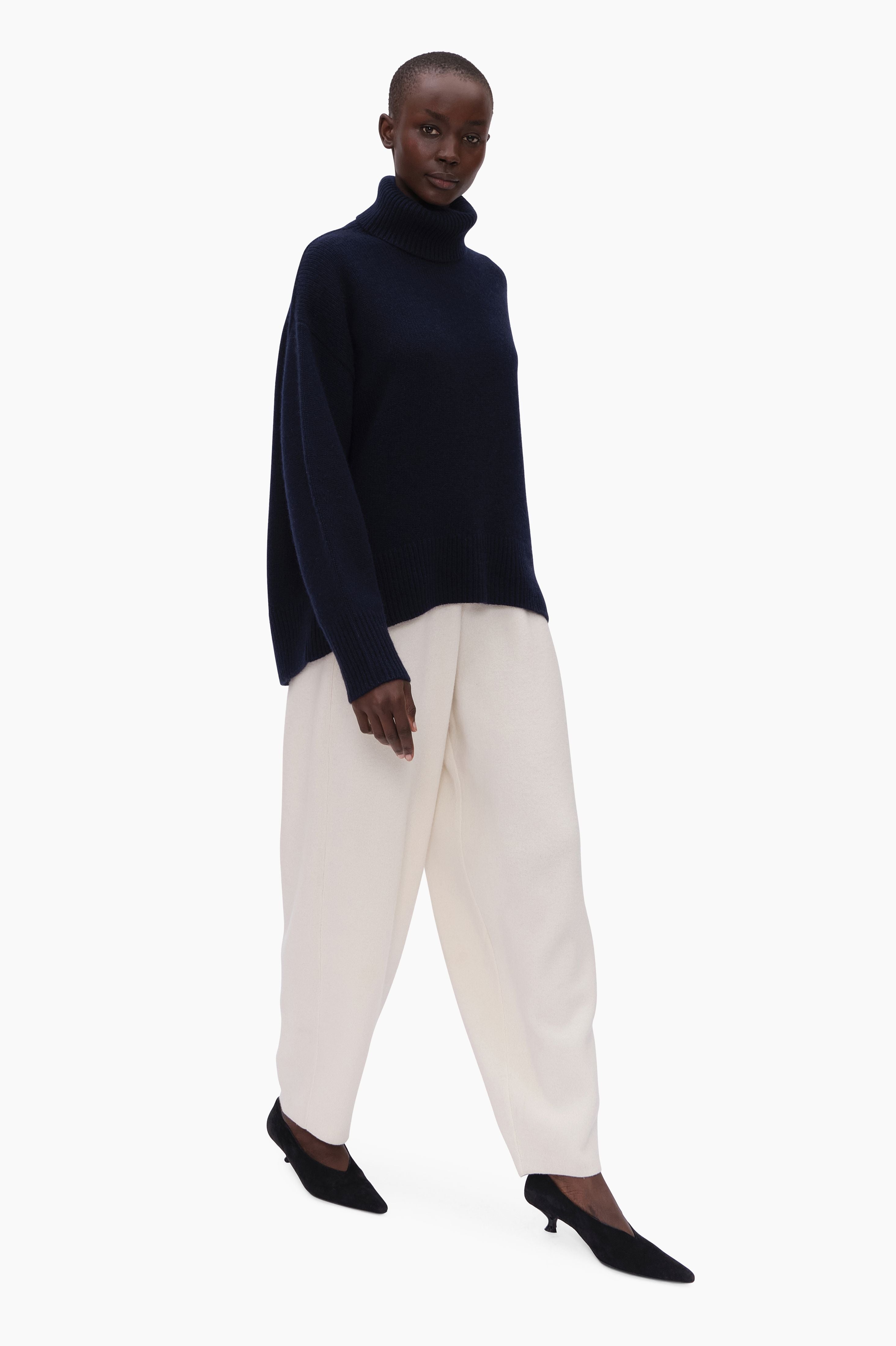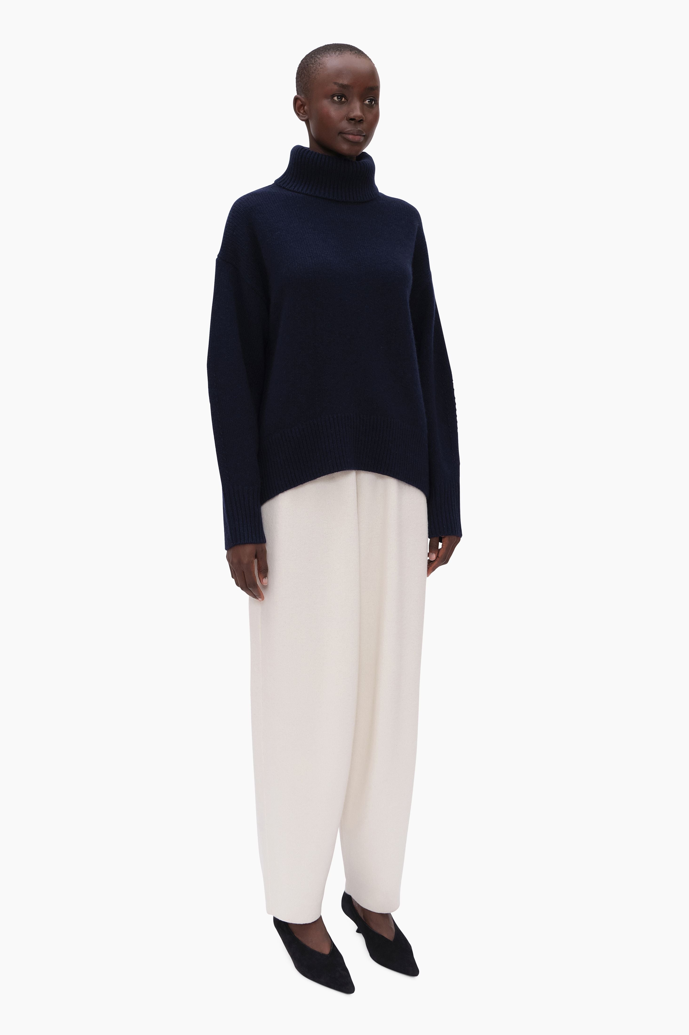Indulge in ultimate comfort with this slouchy roll-neck chunky knit jumper, crafted from 100% cashmere. Featuring fully fashioned seams, the oversized silhouette is paired with drop shoulders and refined by a ribbed neckline, cuffs and hem. A cozy essential for elevating your everyday look.