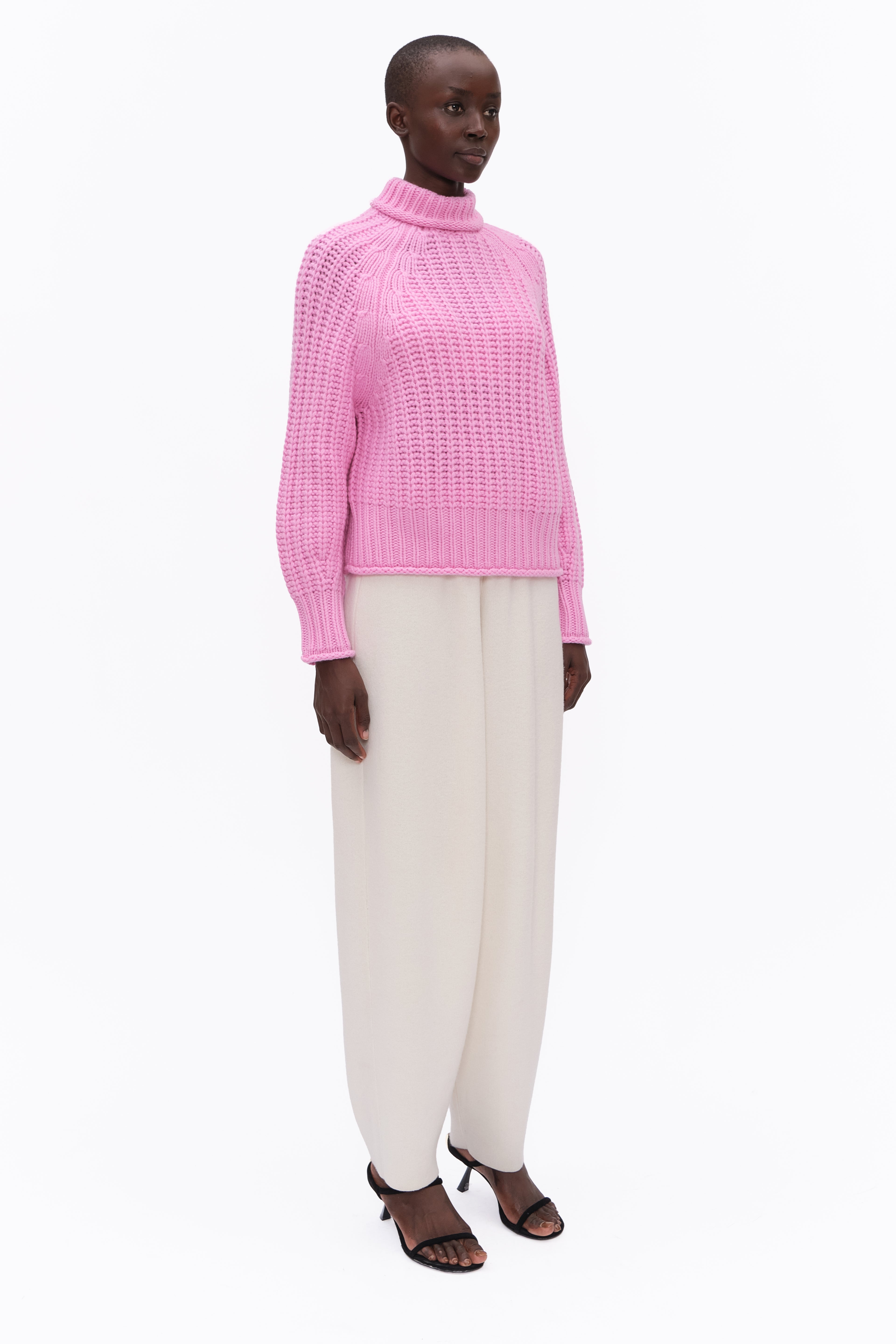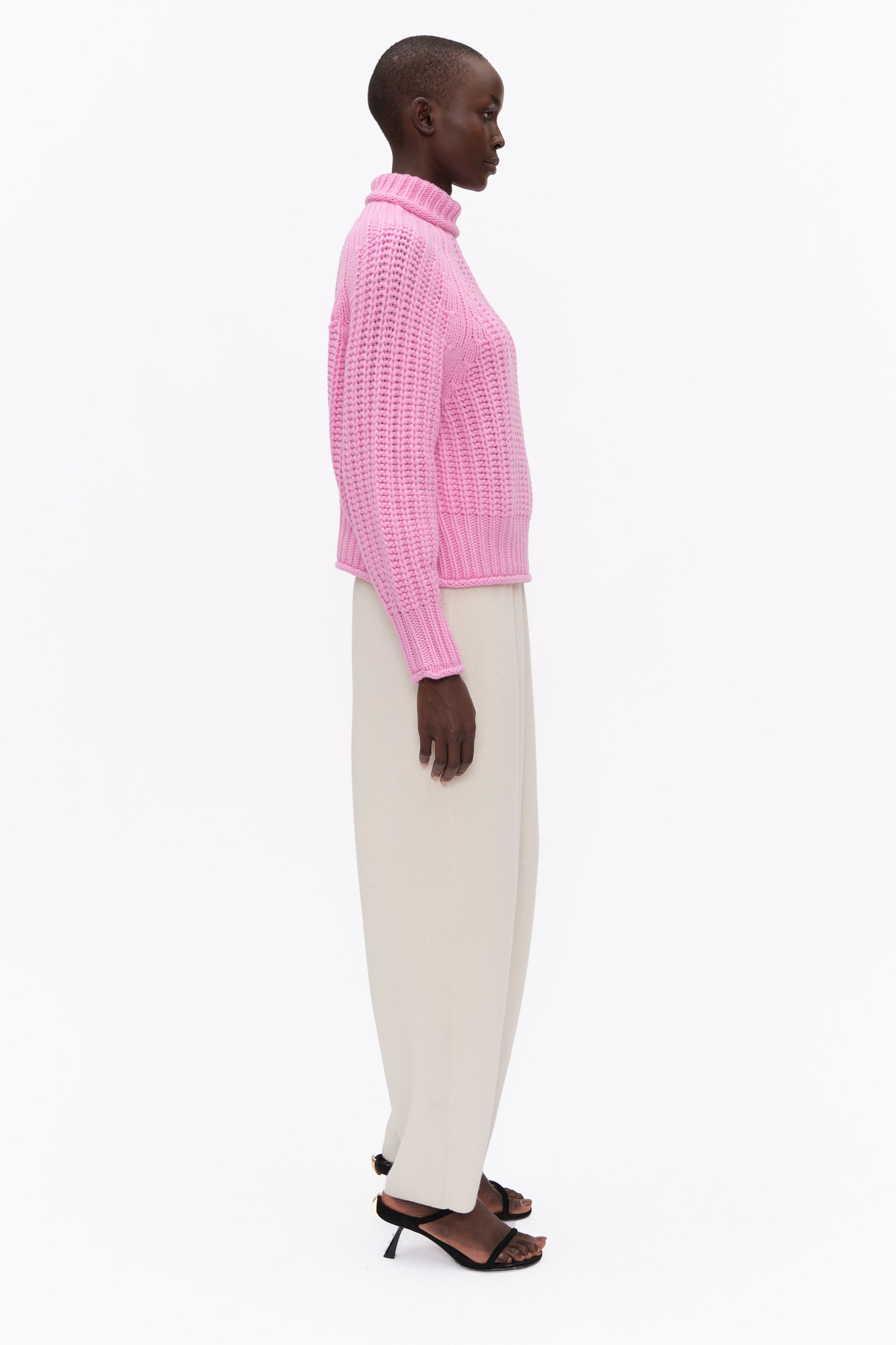 This high-neck hand-knitted cashmere jumper showcases artisanal craftsmanship and luxurious comfort. Designed with a relaxed silhouette, it offers an effortlessly chic look for any occasion. Crafted from pure cashmere, it combines timeless style with exceptional softness.