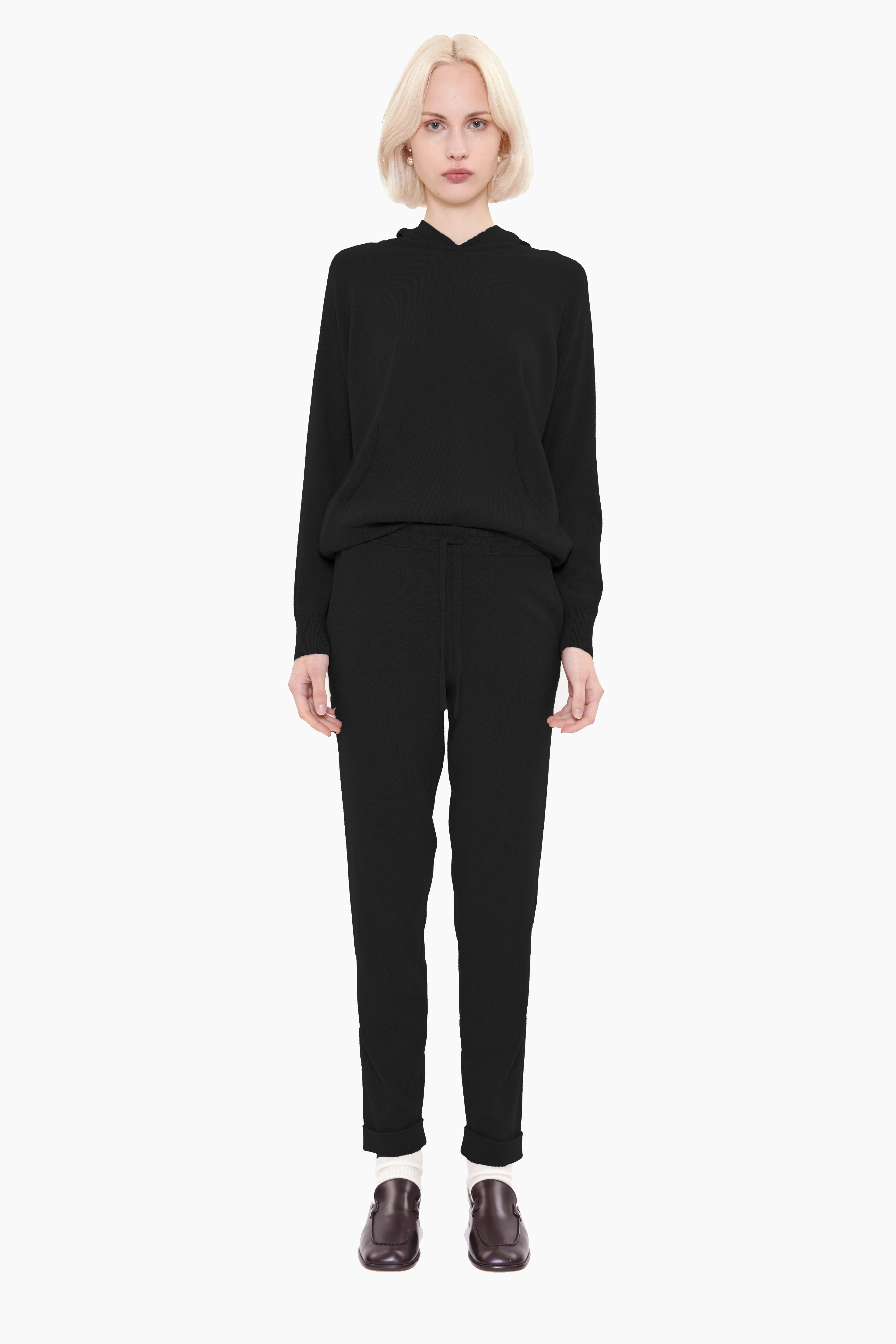 These baby goat cashmere tracksuit pants are shaped for a relaxed fit, offering both comfort and style. The straight-leg design is complemented by a drawstring elasticated waist for a customizable fit, while two side slip pockets add practicality. Crafted from 100% baby goat cashmere, they combine softness with effortless chic.