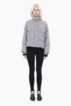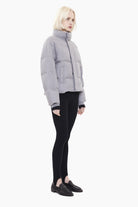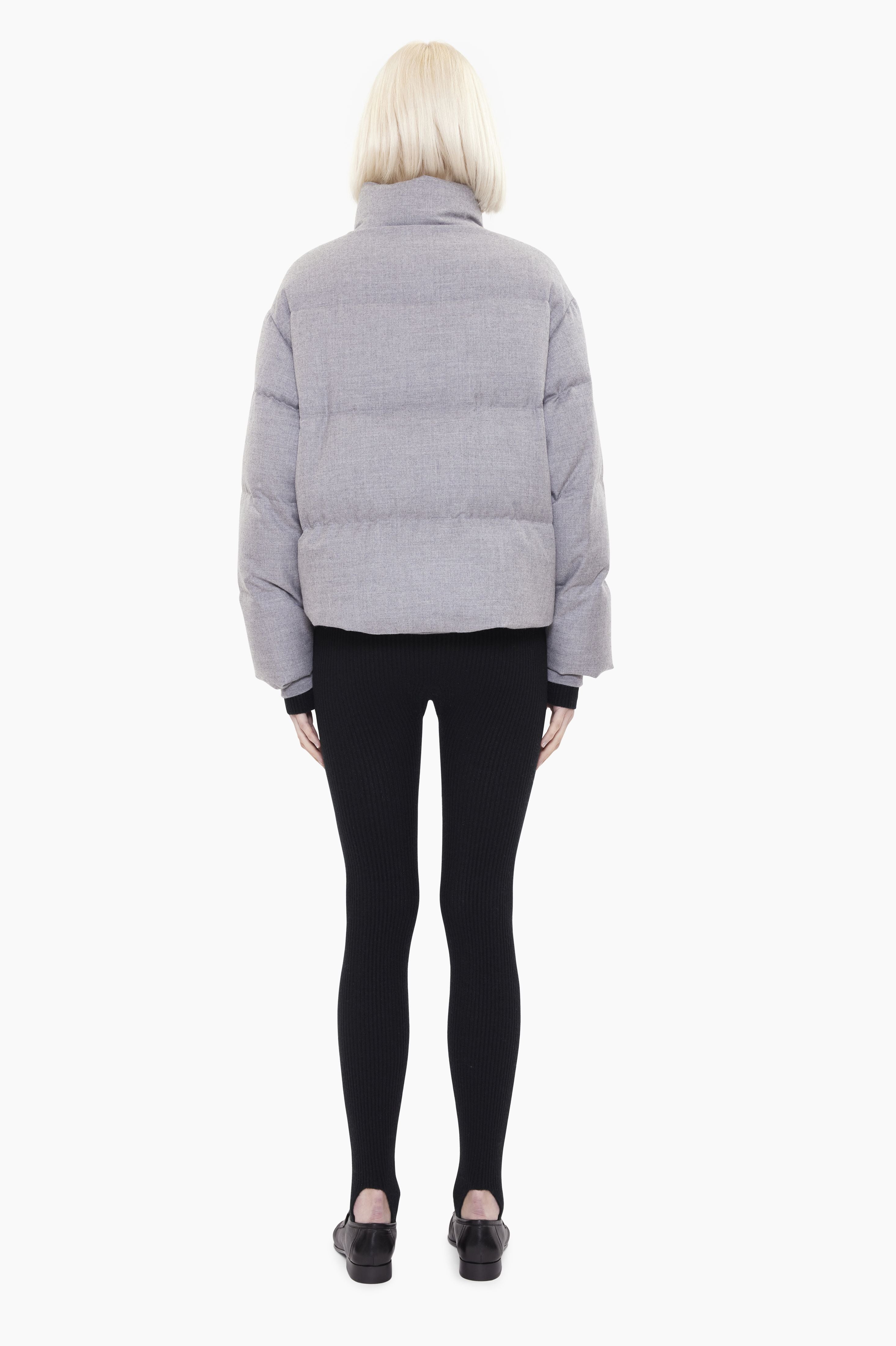 A modern quilted jacket crafted from 100% cashmere, combining exceptional softness with lightweight warmth. Designed in a cropped silhouette, it features a high stand collar and a clean concealed fastening for a streamlined finish. The padded construction adds gentle volume while maintaining a refined, minimal aesthetic—balancing comfort, insulation and understated luxury.