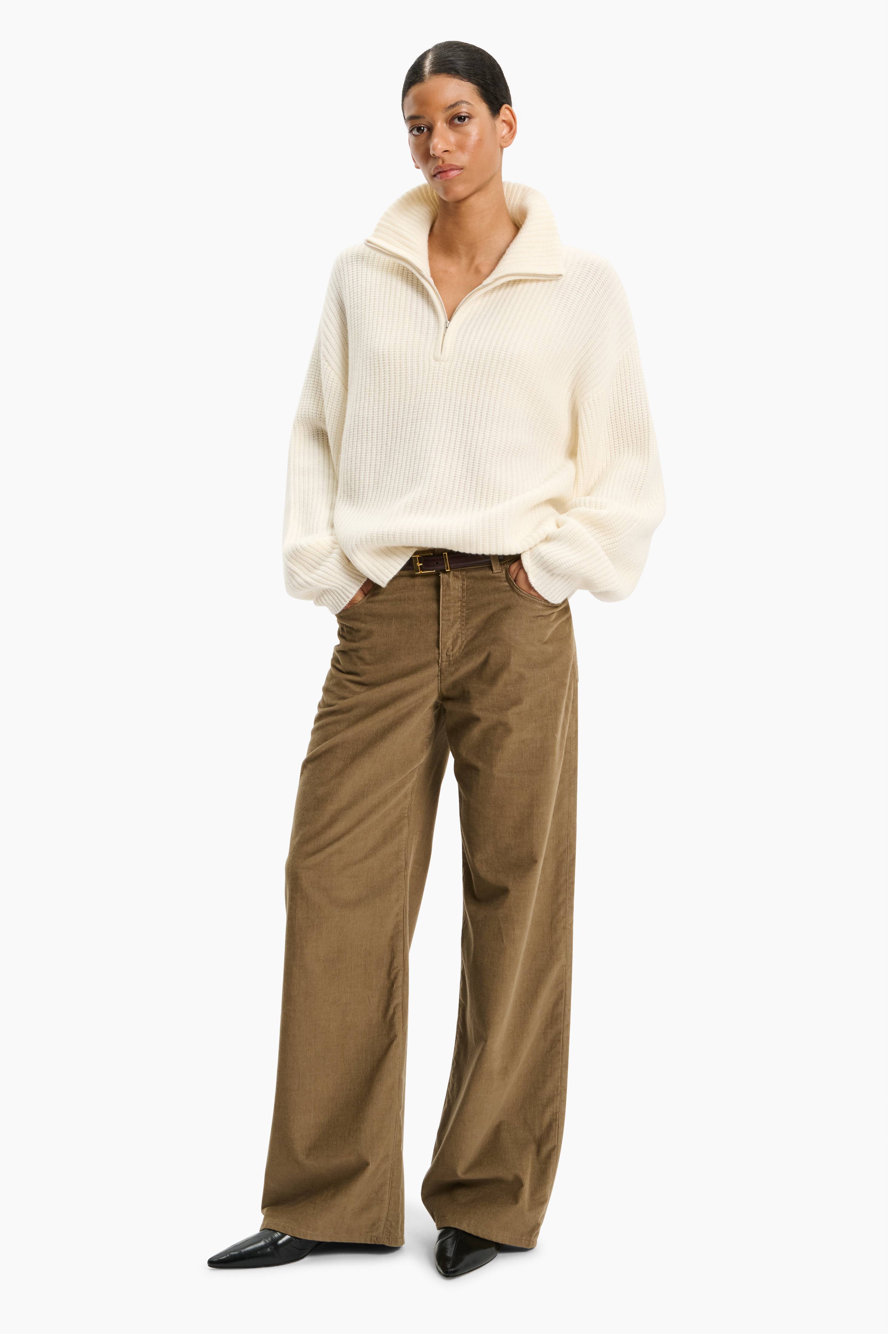 This modern classic jumper features a ribbed stitch texture and a relaxed fit for ultimate comfort. Designed with a stylish 1/3 zip neck, it’s crafted from 100% cashmere for a soft and luxurious feel. A versatile piece that effortlessly combines warmth, style, and sophistication.