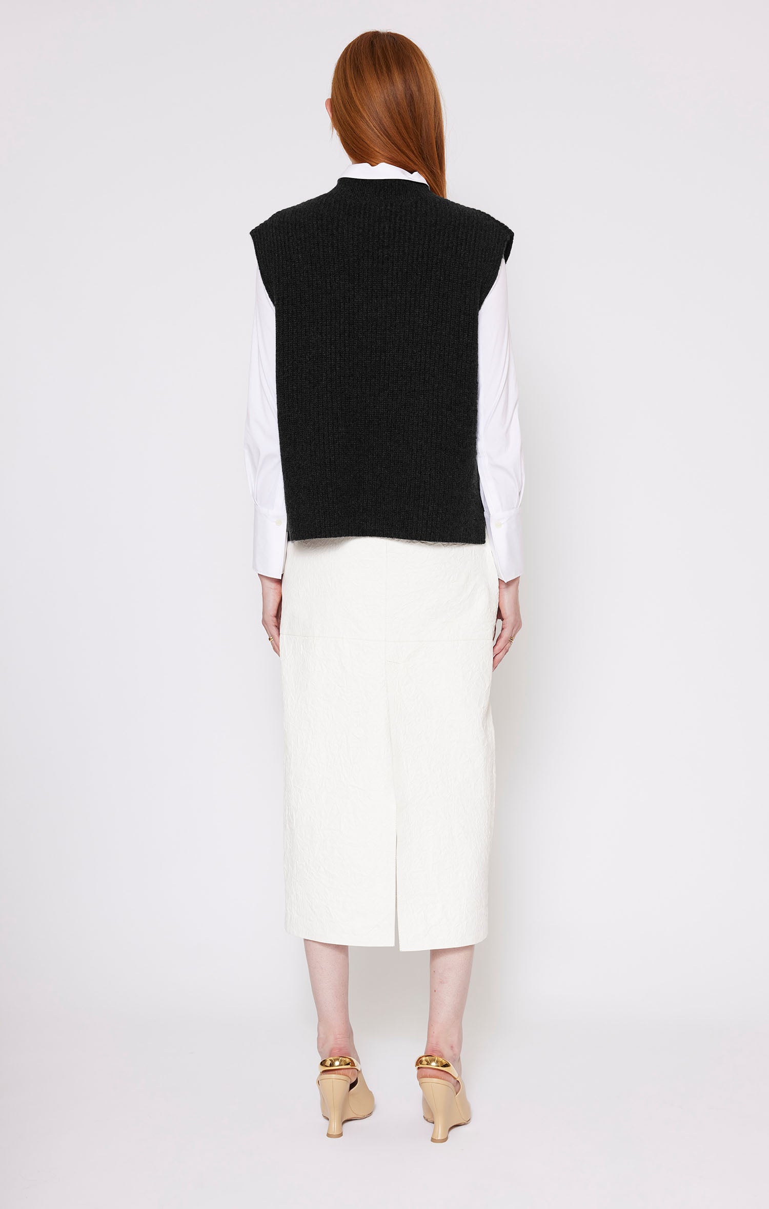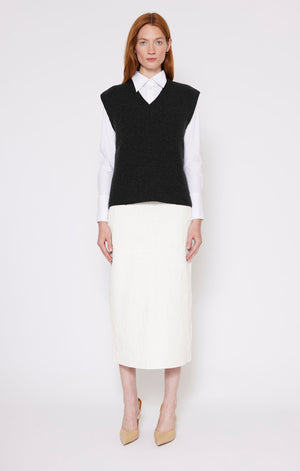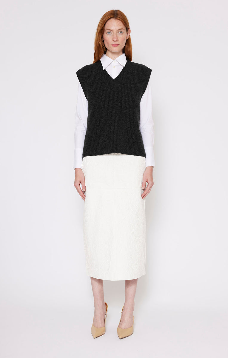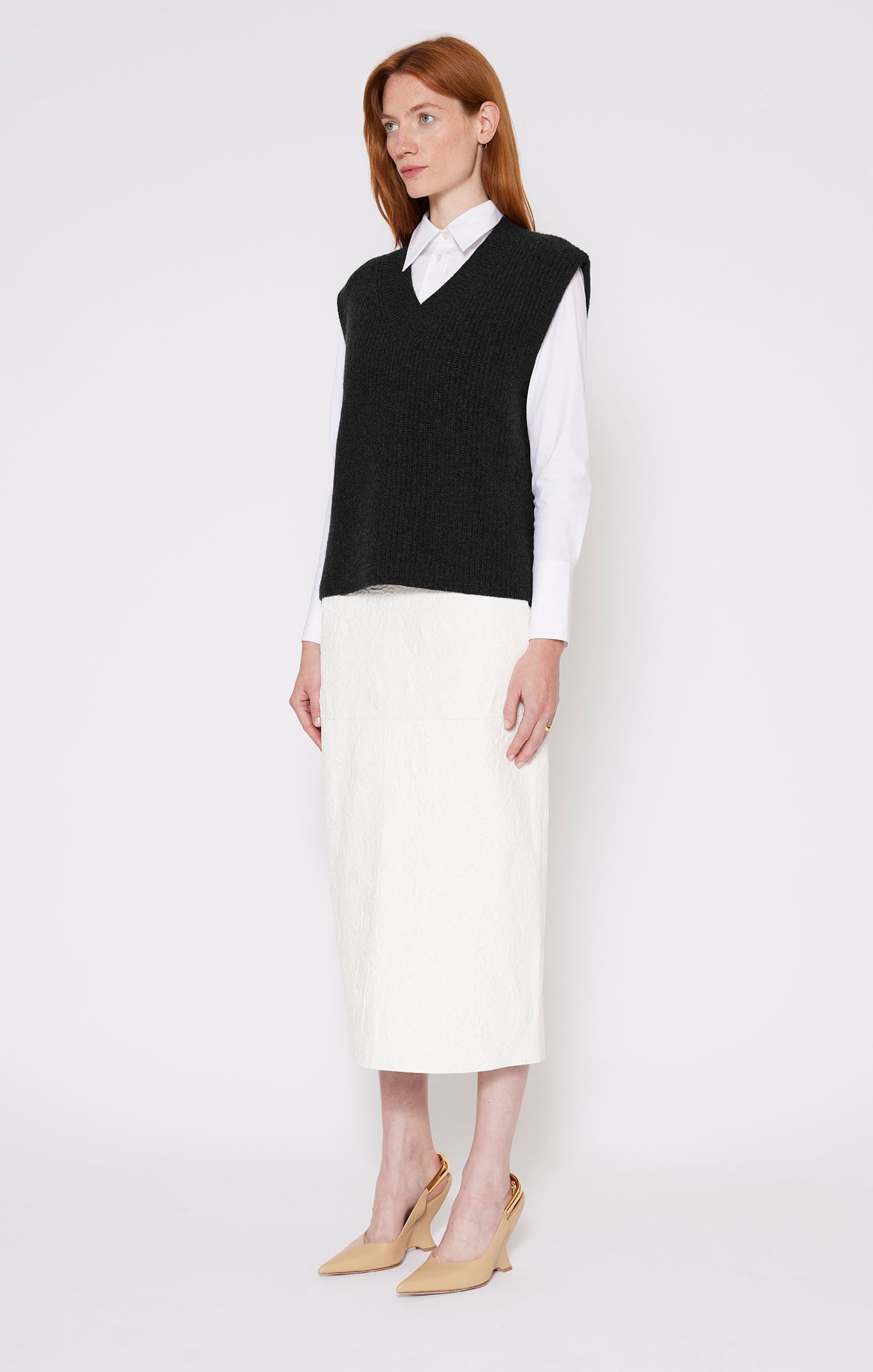 This beautiful full cardigan stitch textured vest with a relaxed fit, ribbed v-neck, in luxurious chunky knit cashmere has been carefully and sustainably selected for its exceptional lightweight softness. With a loose silhouette balanced by elegant ribbed detailing, this style is perfect for layering through all seasons.
