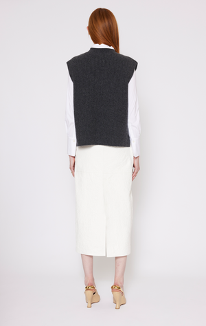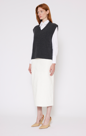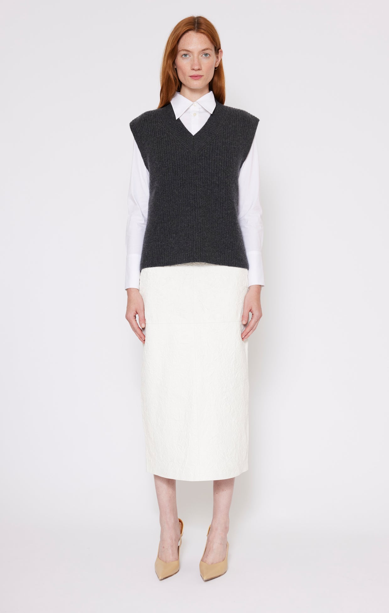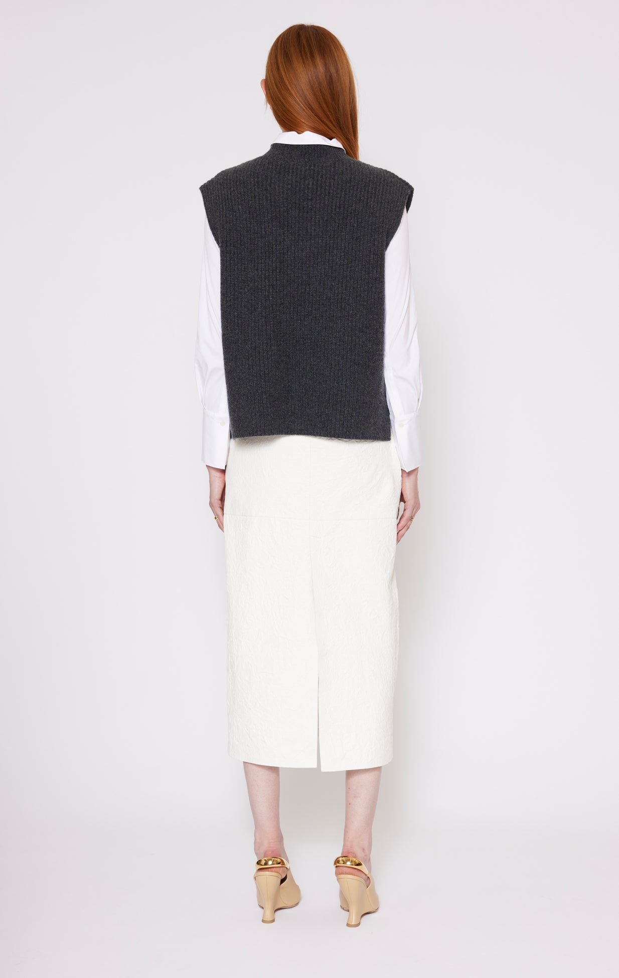 This beautiful full cardigan stitch textured vest with a relaxed fit, ribbed v-neck, in luxurious chunky knit cashmere has been carefully and sustainably selected for its exceptional lightweight softness. With a loose silhouette balanced by elegant ribbed detailing, this style is perfect for layering through all seasons.