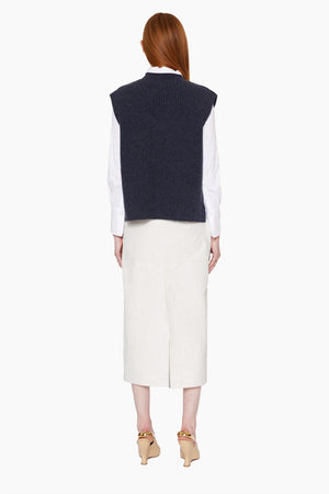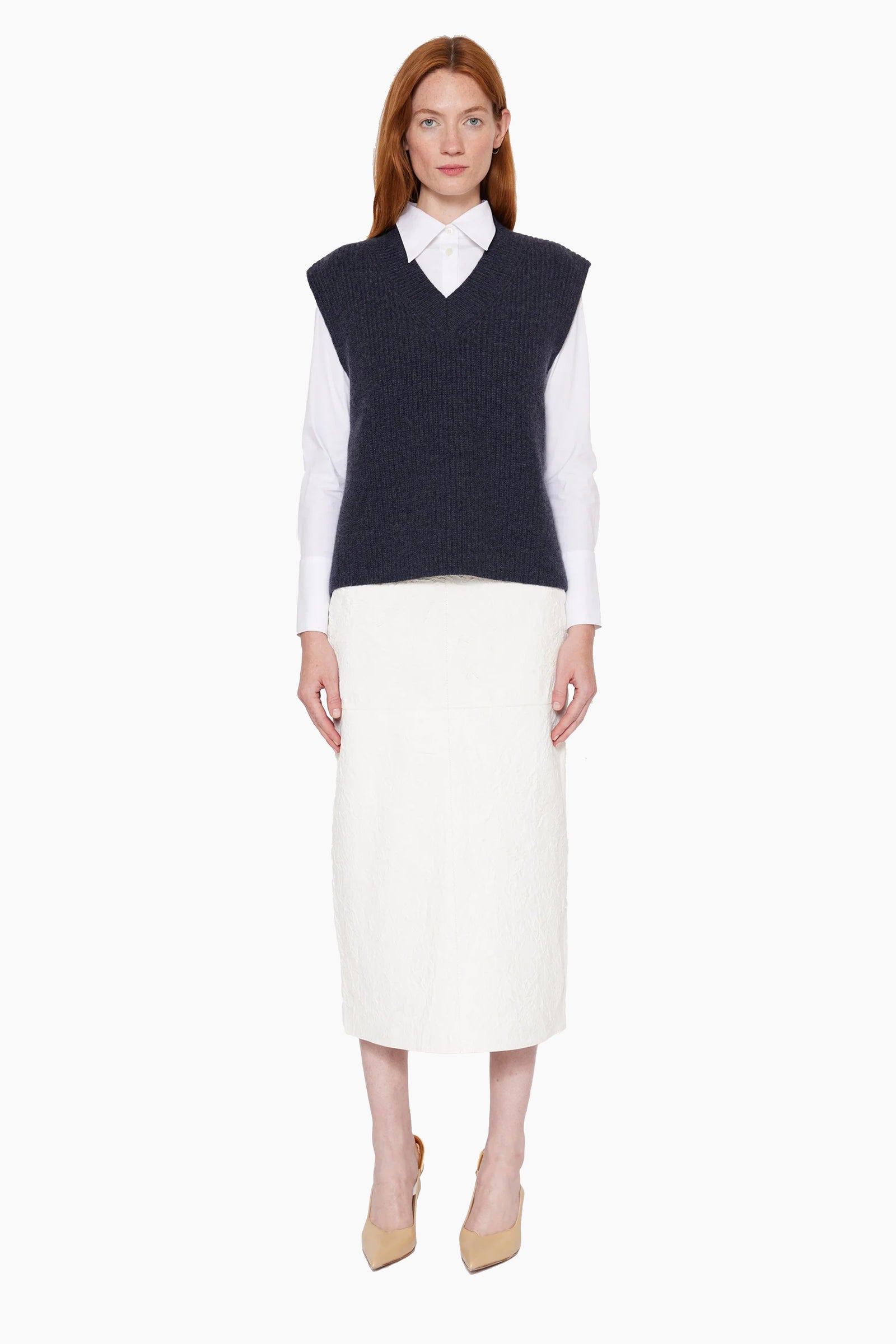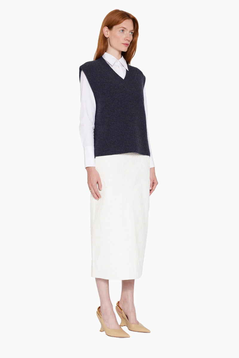 This beautiful full cardigan stitch textured vest with a relaxed fit, ribbed v-neck, in luxurious chunky knit cashmere has been carefully and sustainably selected for its exceptional lightweight softness. With a loose silhouette balanced by elegant ribbed detailing, this style is perfect for layering through all seasons.