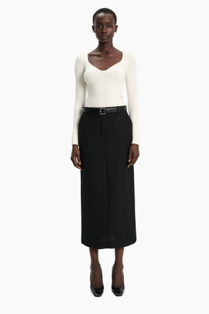 This unique long sleeve jumper, highlighted by a flattering sweetheart neckline, in luxurious stretchy knit cashmere, has been carefully and sustainably selected for its exceptional stretch and fabric recovery. It features fully fashioned seams and bust detail, with a refined, sexy but elegant silhouette.