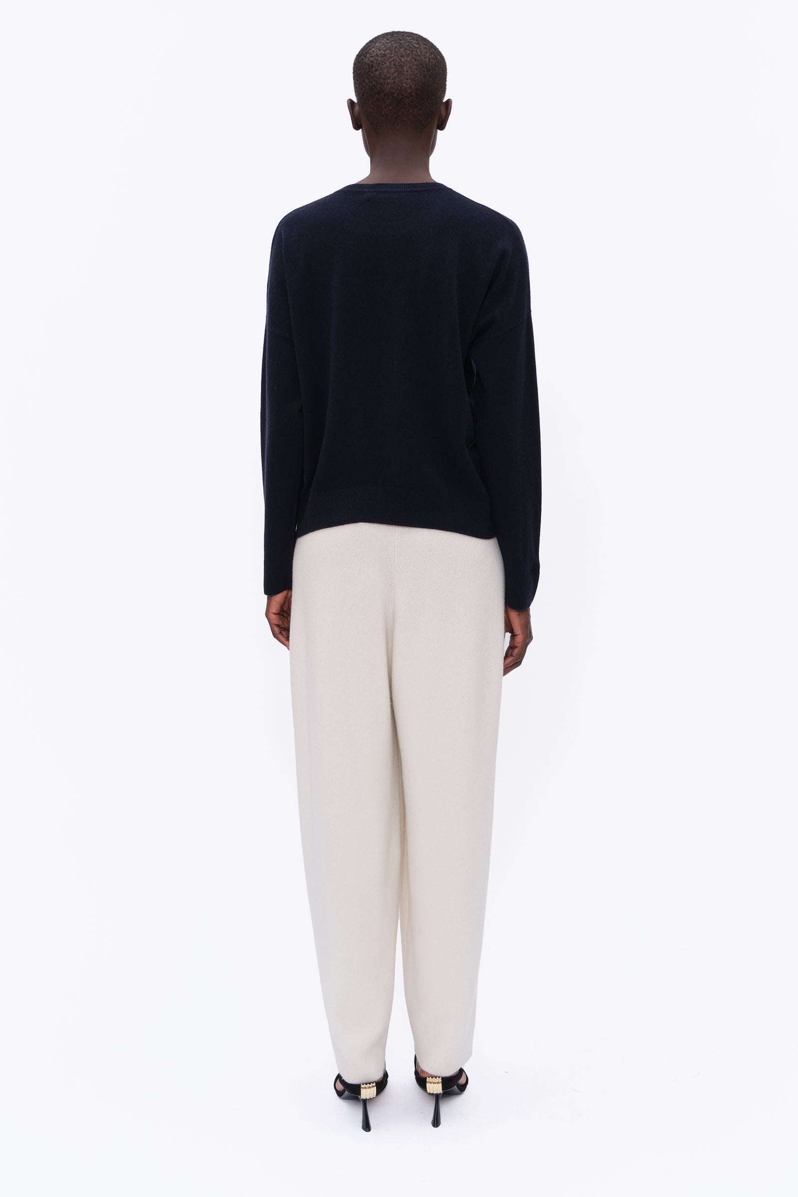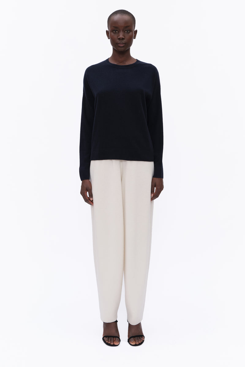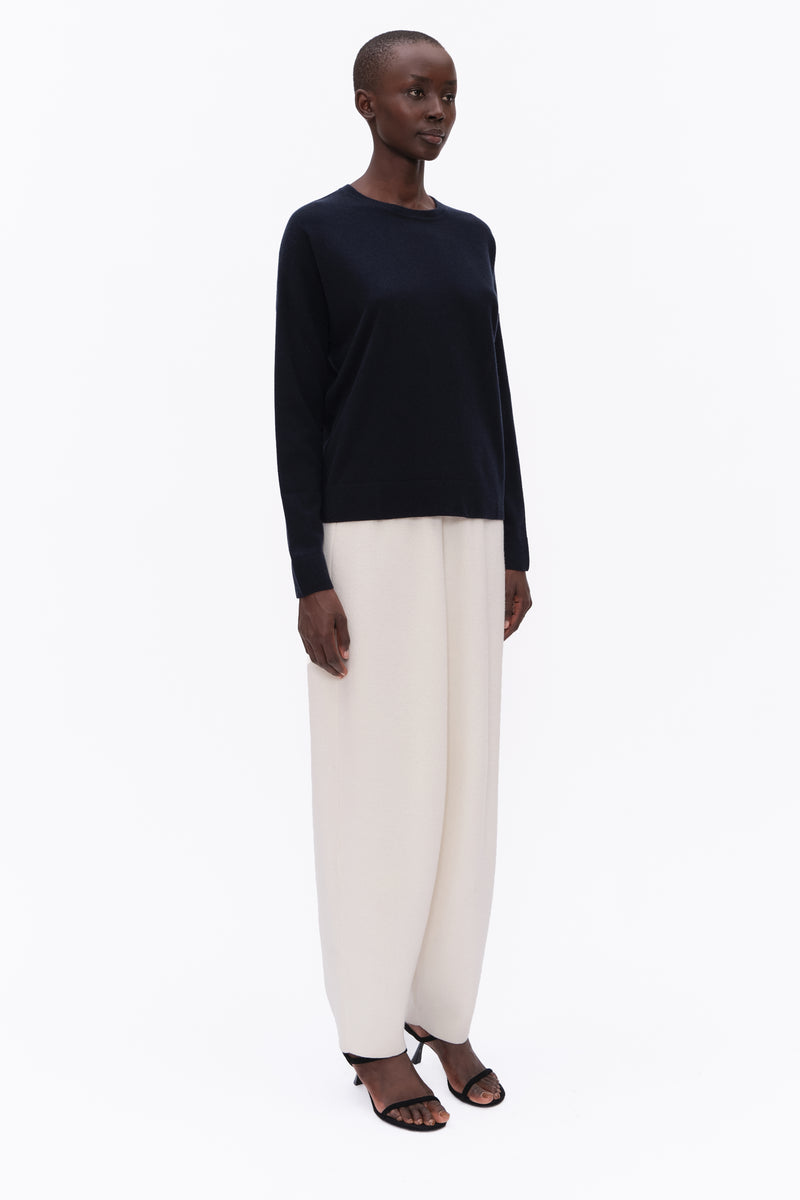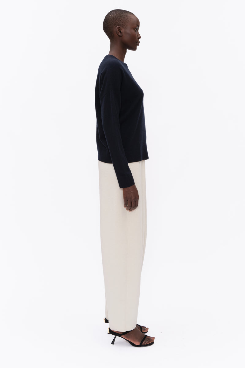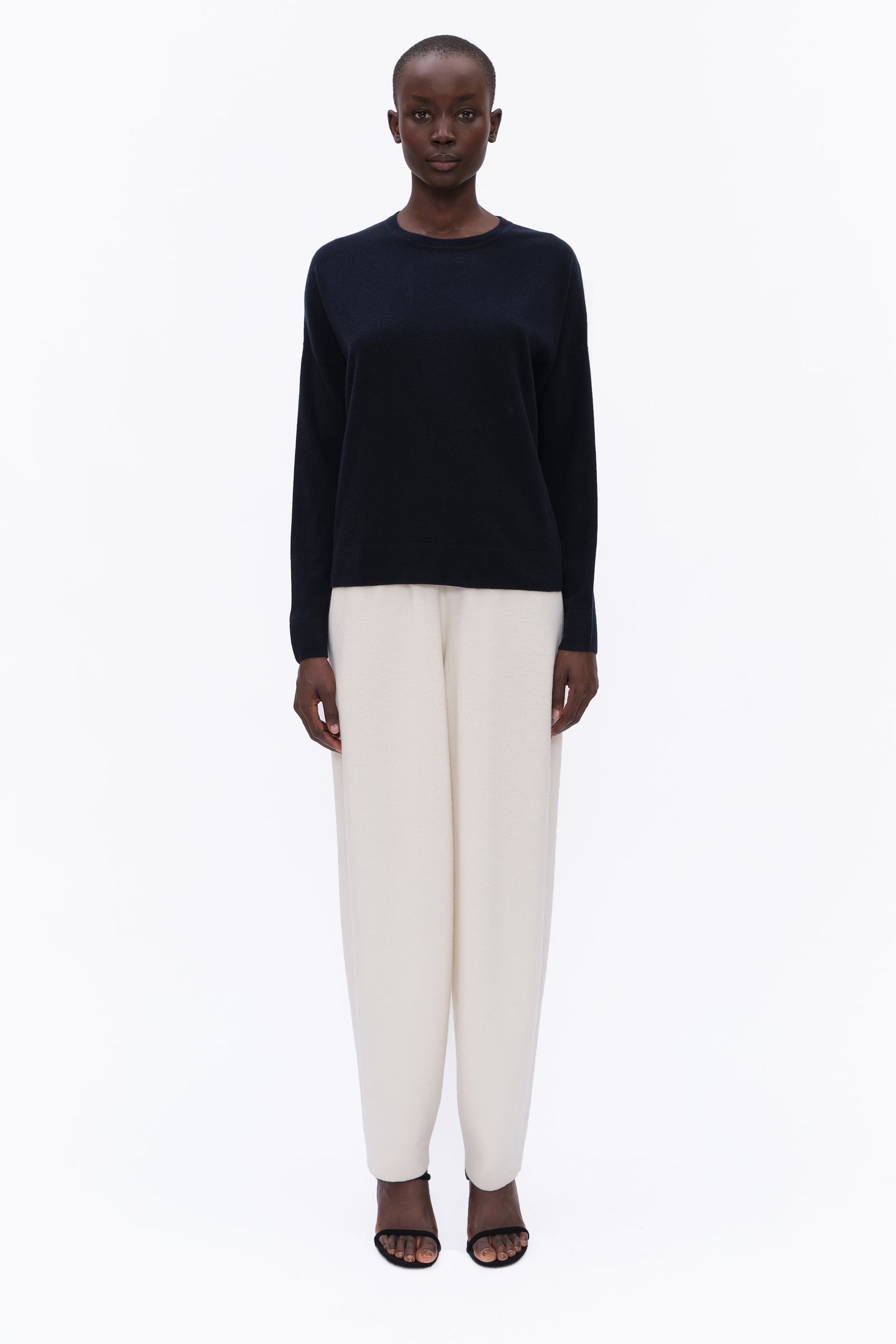This crew neck jumper is a timeless classic, crafted from ultra-soft baby goat cashmere. Its clean design and versatile silhouette make it perfect for effortless layering or wearing on its own. A piece that brings both comfort and sophistication to any outfit.