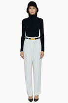 This half roll neck ribbed top, in luxurious baby goat cashmere, has been carefully and sustainably selected for its exceptional lightweight softness. It has a fitted silhouette balanced by long, elegant sleeves. 100% Baby goat cashmere.