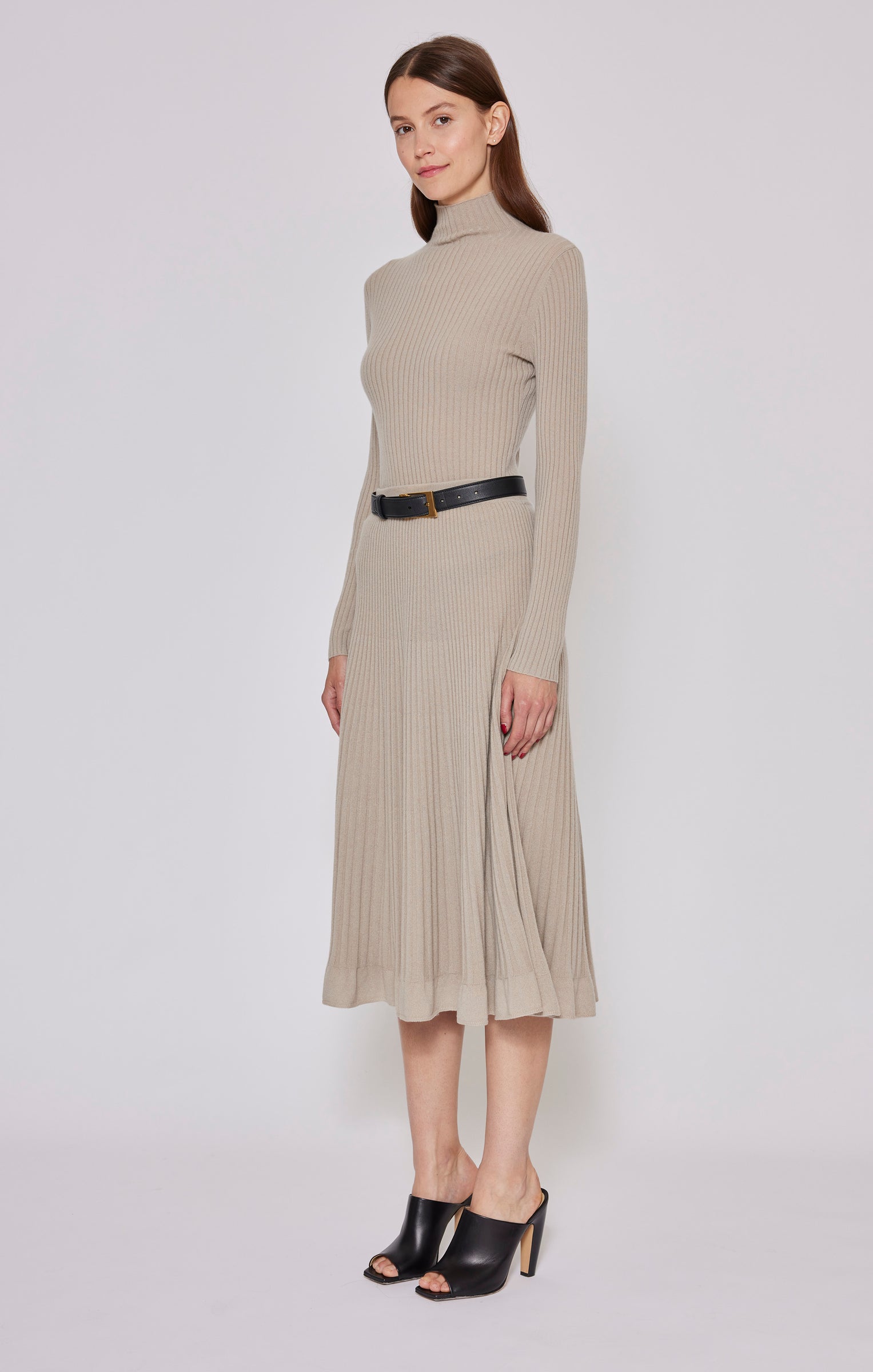 This half roll neck ribbed top, in luxurious baby goat cashmere, has been carefully and sustainably selected for its exceptional lightweight softness. It has a fitted silhouette balanced by long, elegant sleeves. 100% Baby goat cashmere.