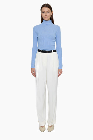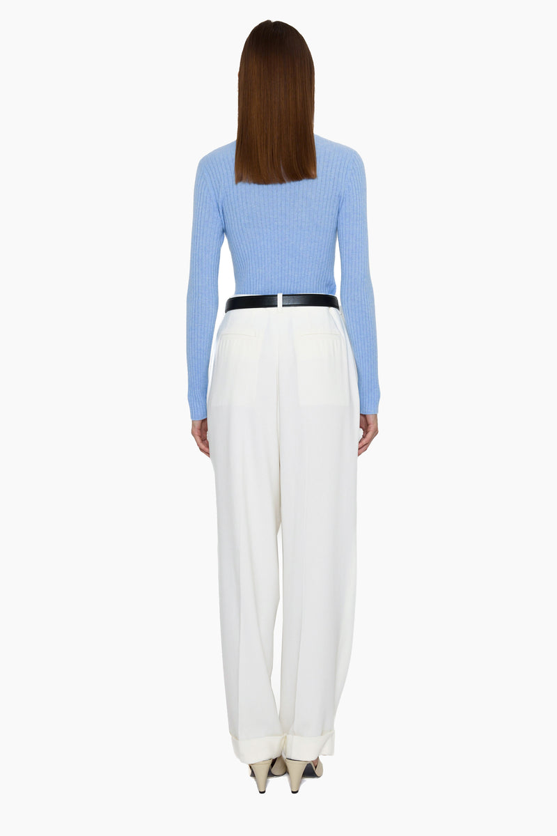 This half roll neck jumper, in luxurious baby goat cashmere, is carefully and sustainably selected for its exceptional lightweight softness. All over ribbed body with fitted long sleeves. 100% Baby goat cashmere.