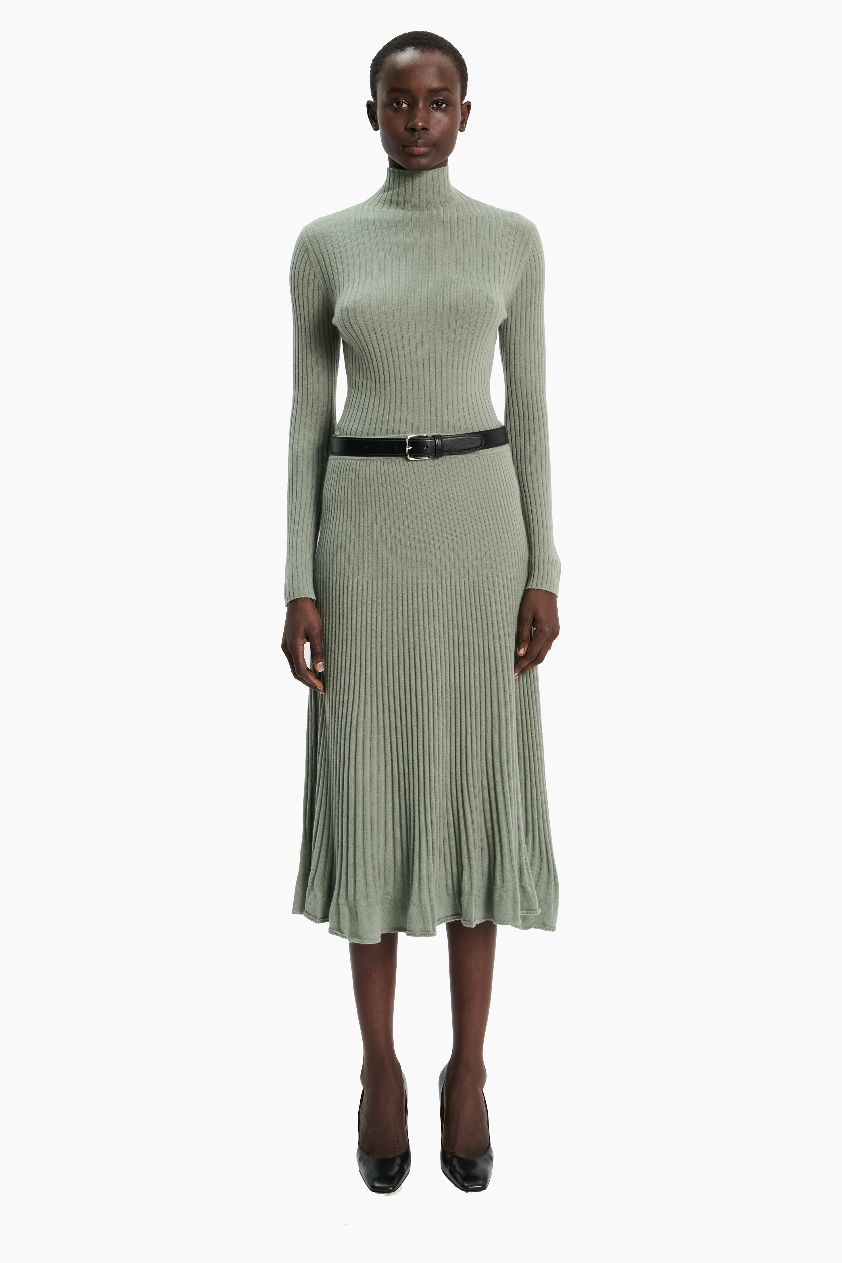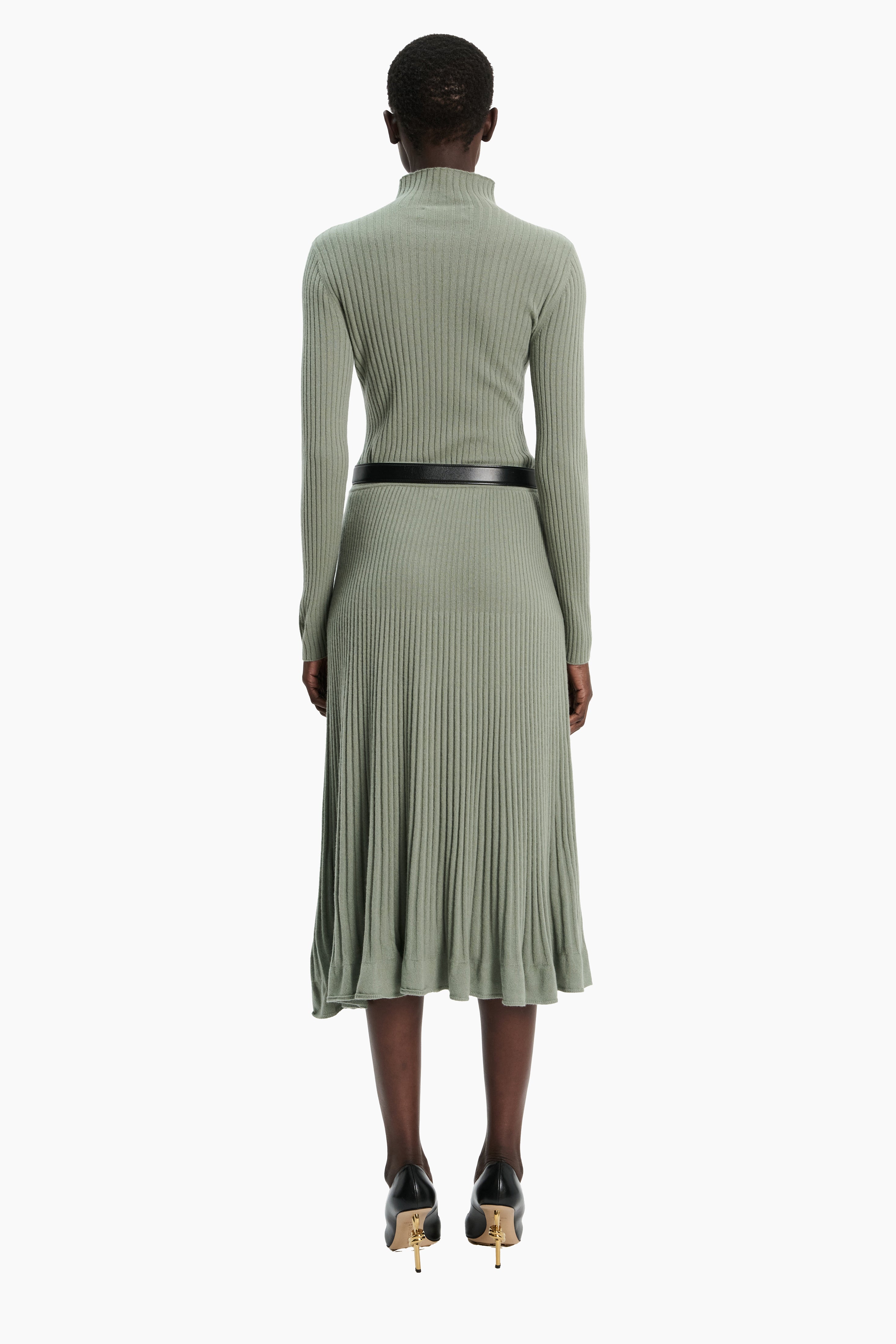 This half roll neck ribbed top, in luxurious baby goat cashmere, has been carefully and sustainably selected for its exceptional lightweight softness. It has a fitted silhouette balanced by long, elegant sleeves. 100% Baby goat cashmere.