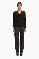 This V-neck jumper, in luxurious baby goat cashmere, has been carefully and sustainably selected for its exceptional lightweight softness. It has a slouchy, relaxed silhouette balanced by long, elegant sleeves.