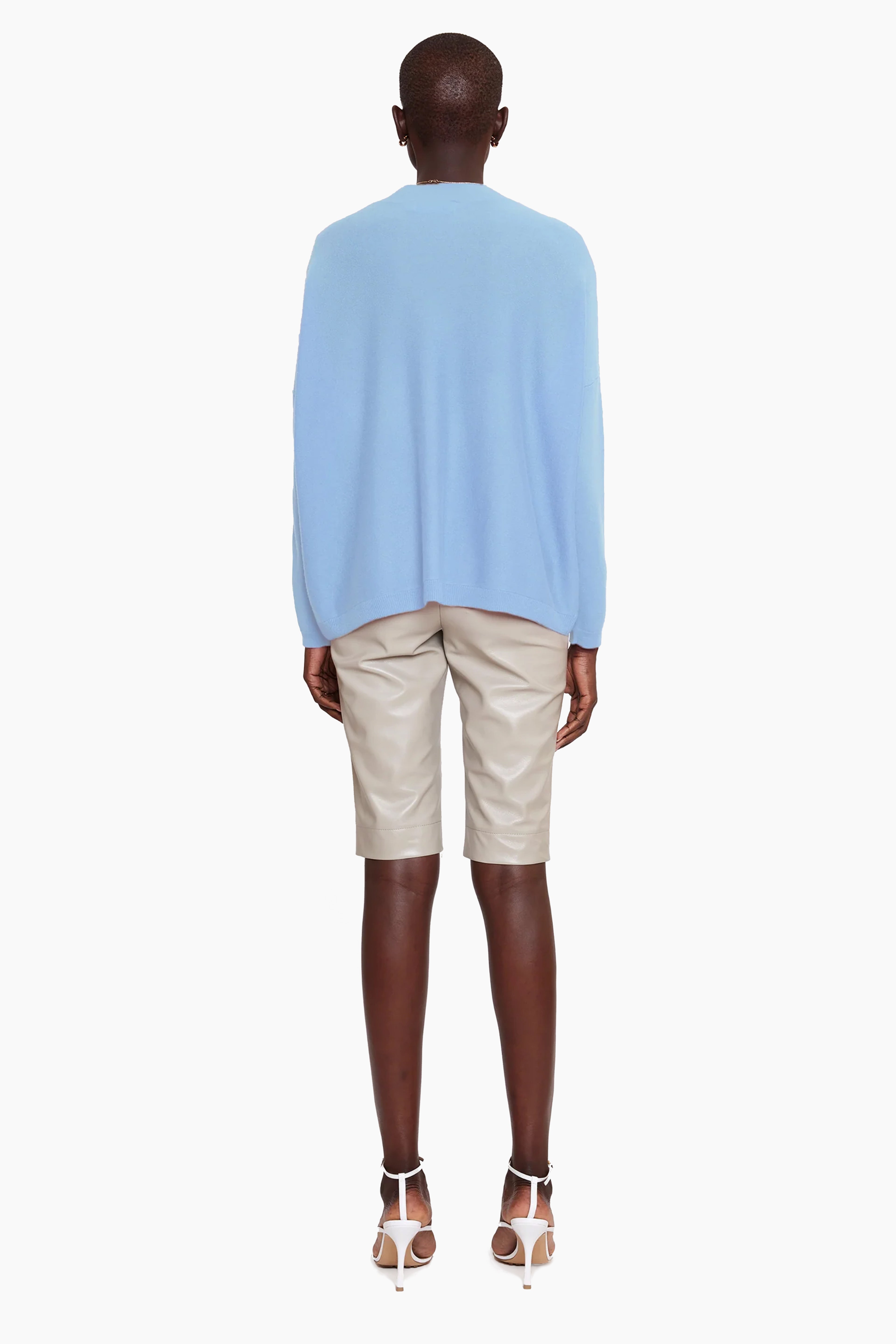 This V-neck jumper, in luxurious baby goat cashmere, has been carefully and sustainably selected for its exceptional lightweight softness. It has a slouchy, relaxed silhouette balanced by long, elegant sleeves.