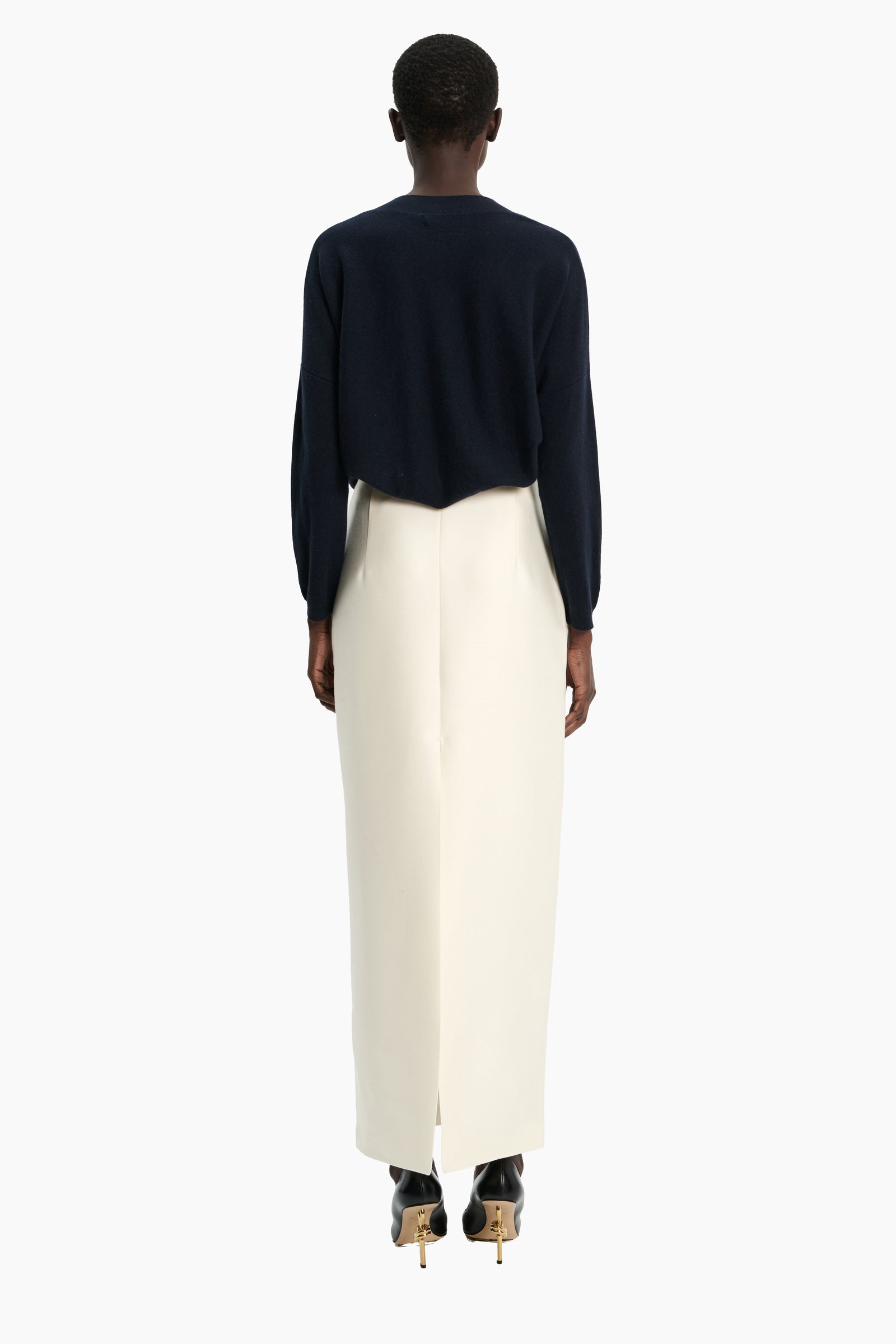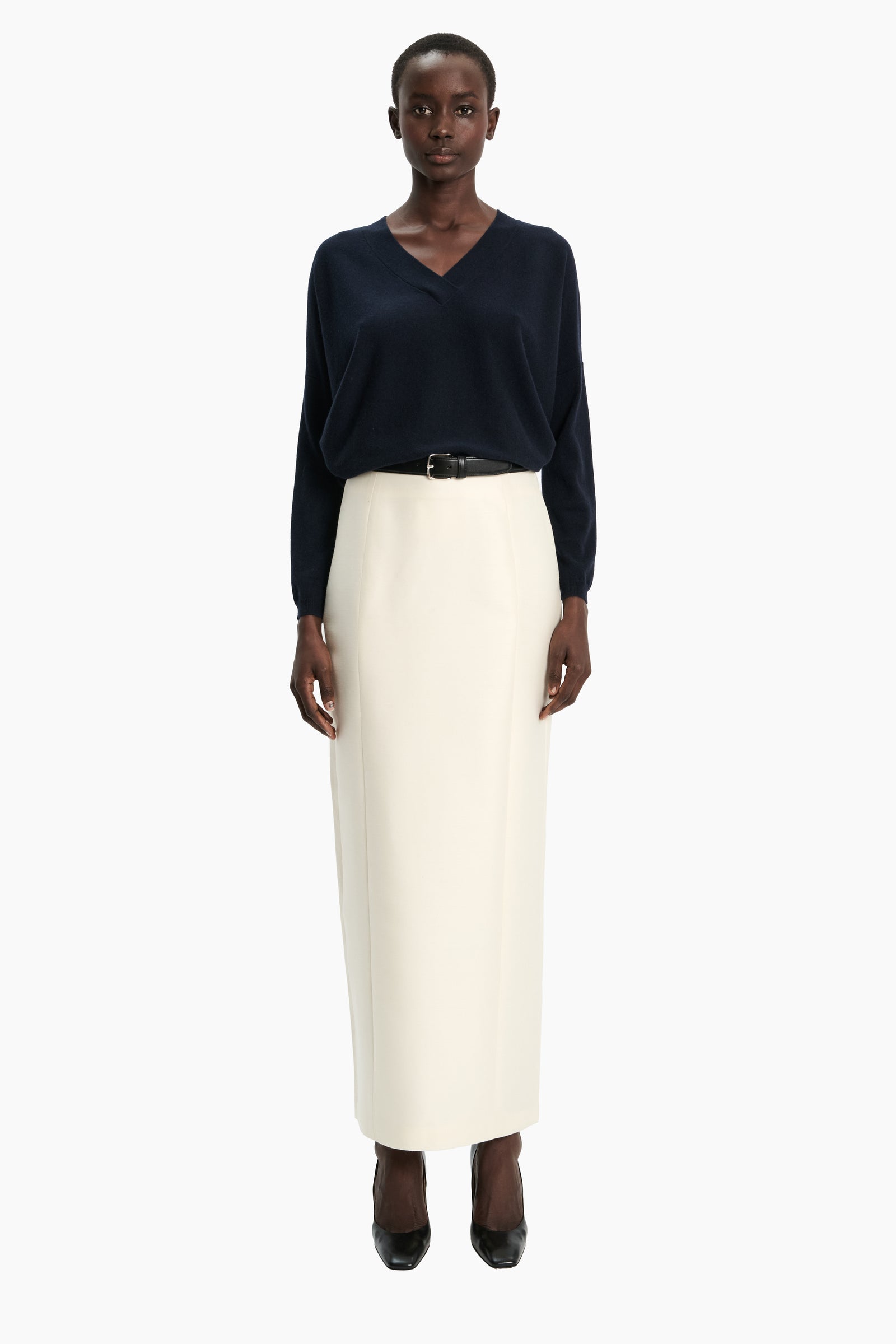 This V-neck jumper, in luxurious baby goat cashmere, has been carefully and sustainably selected for its exceptional lightweight softness. It has a slouchy, relaxed silhouette balanced by long, elegant sleeves.
