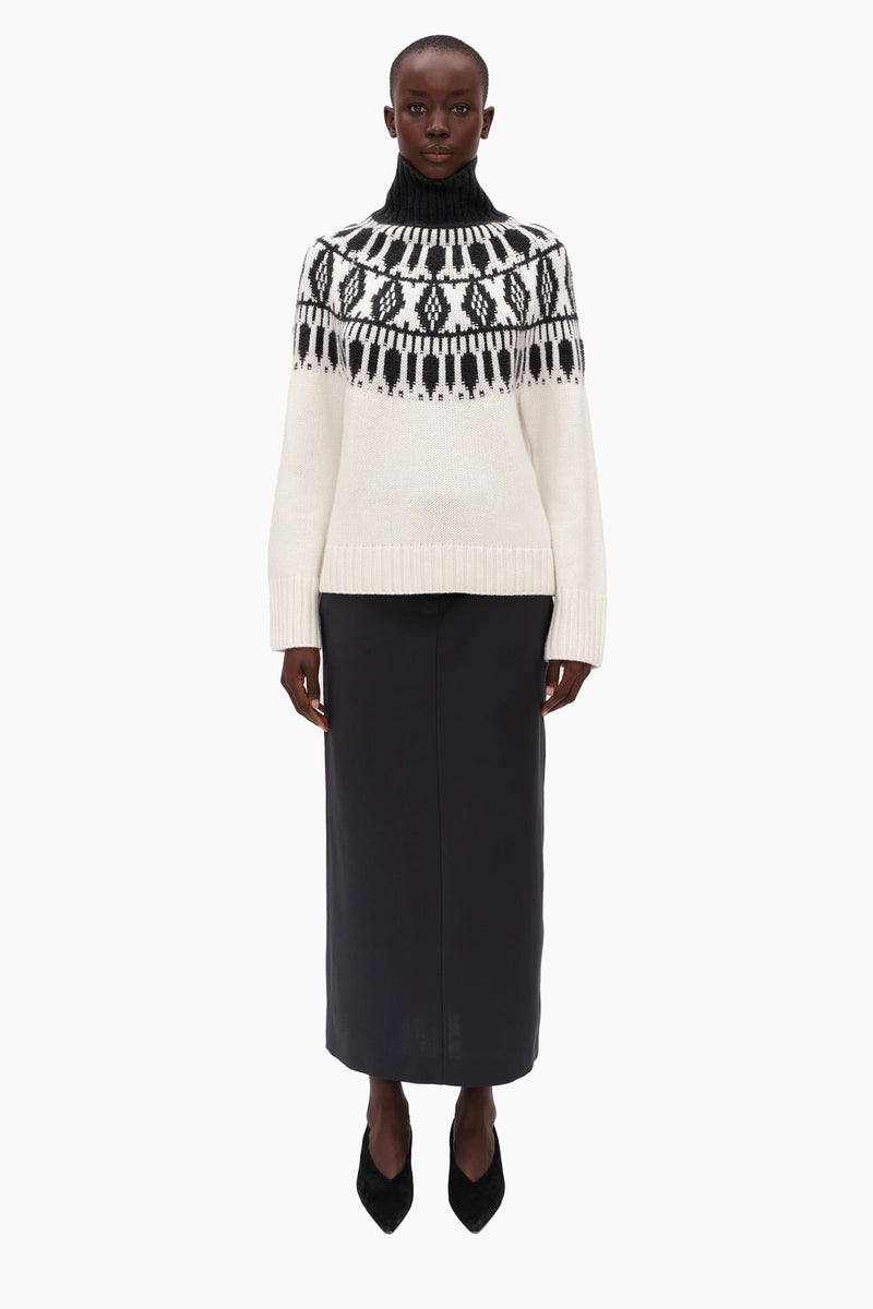 Stay cozy and stylish with our Turtleneck Printed Cashmere Jumper, the ultimate piece for après-ski luxury. Crafted from the finest cashmere, this jumper offers superior warmth and softness after a day on the slopes. The chic turtleneck design keeps you snug, while the bold, winter-inspired print adds a touch of playful elegance.