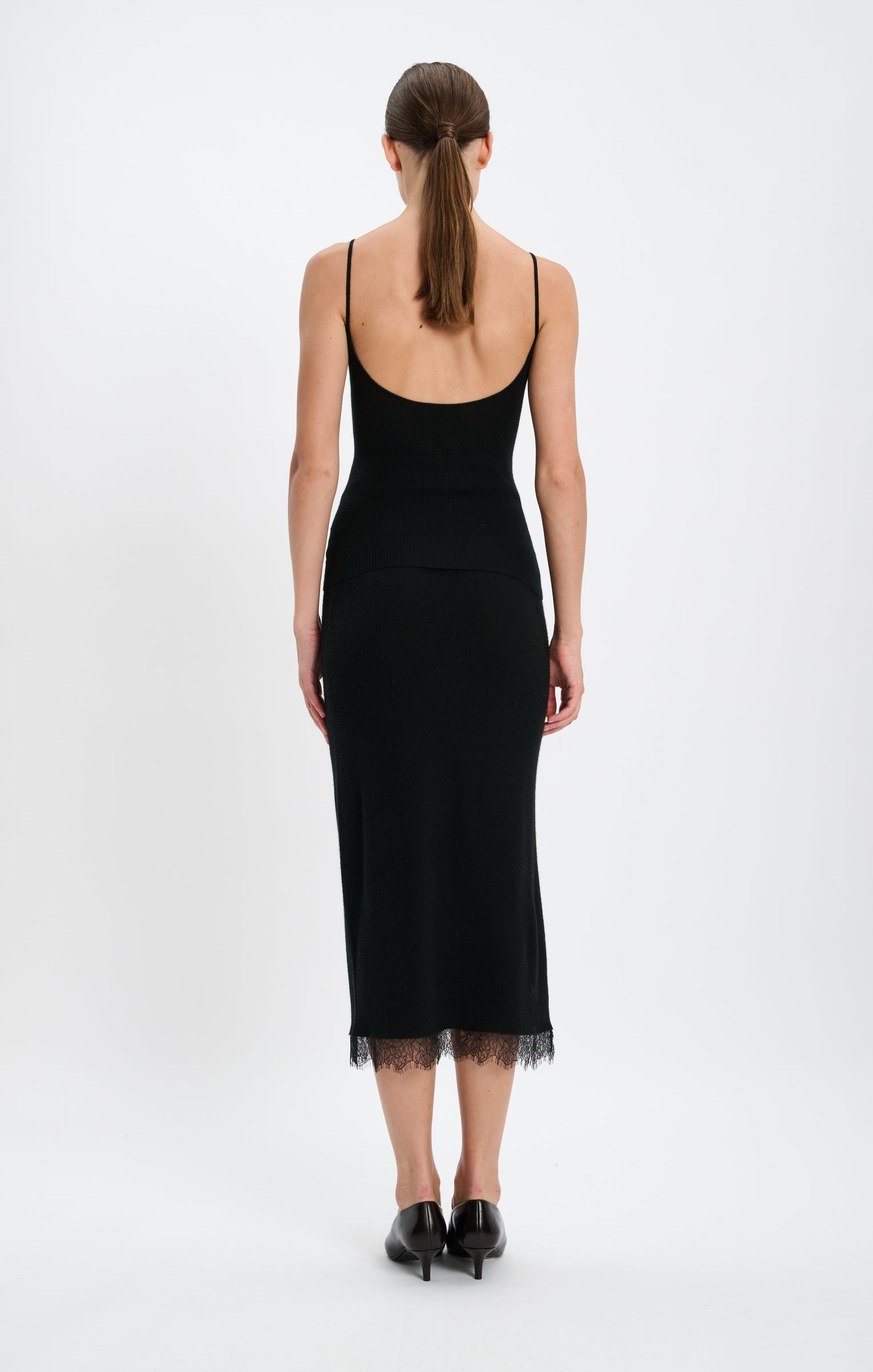 Indulge in pure luxury with this 100% cashmere vest, crafted for exceptional softness and timeless elegance. Designed with a flattering ribbed texture and finished with delicate lace trim, it offers a feminine touch to any look. Perfect for layering under a blazer or wearing on its own for effortless sophistication.