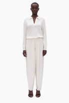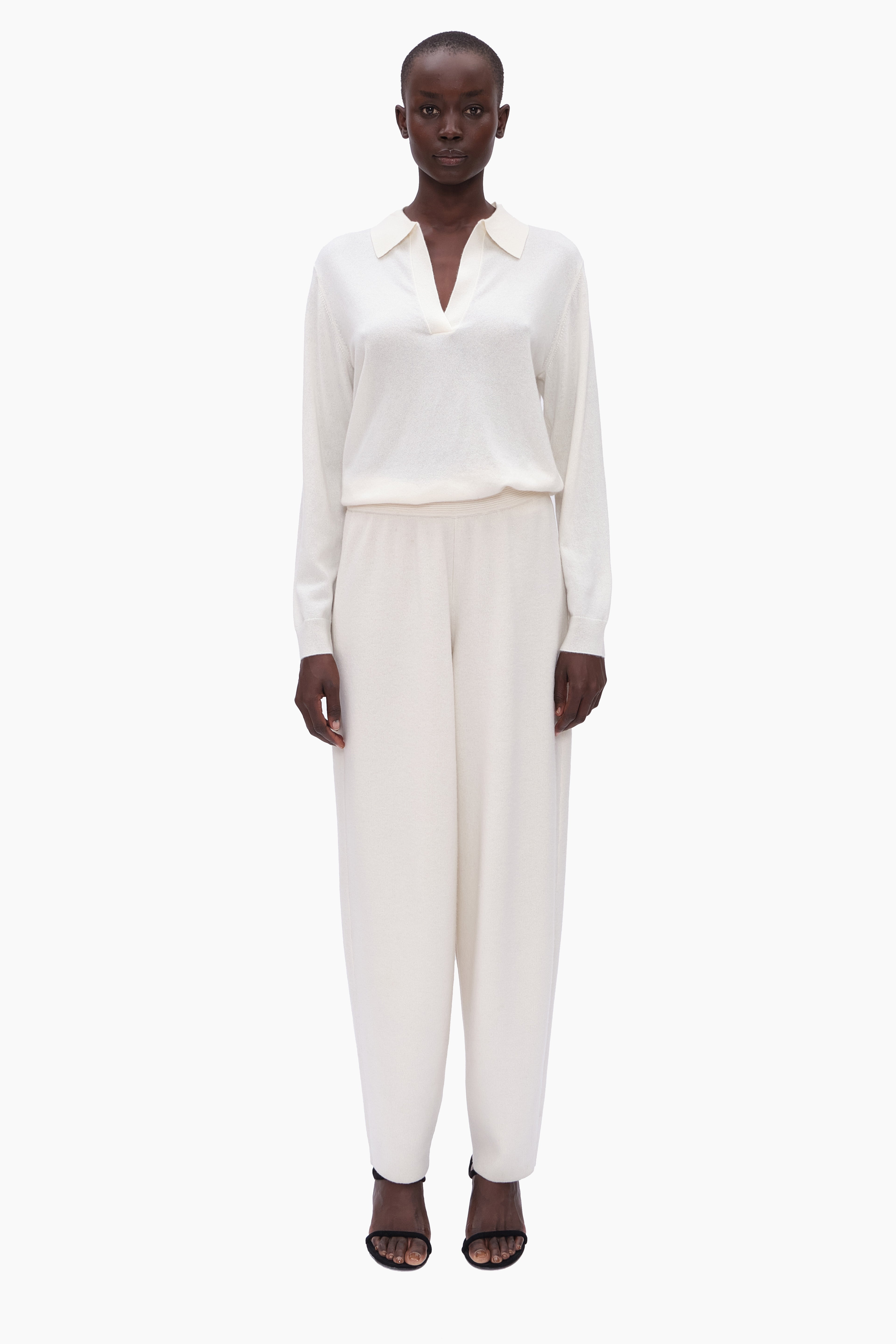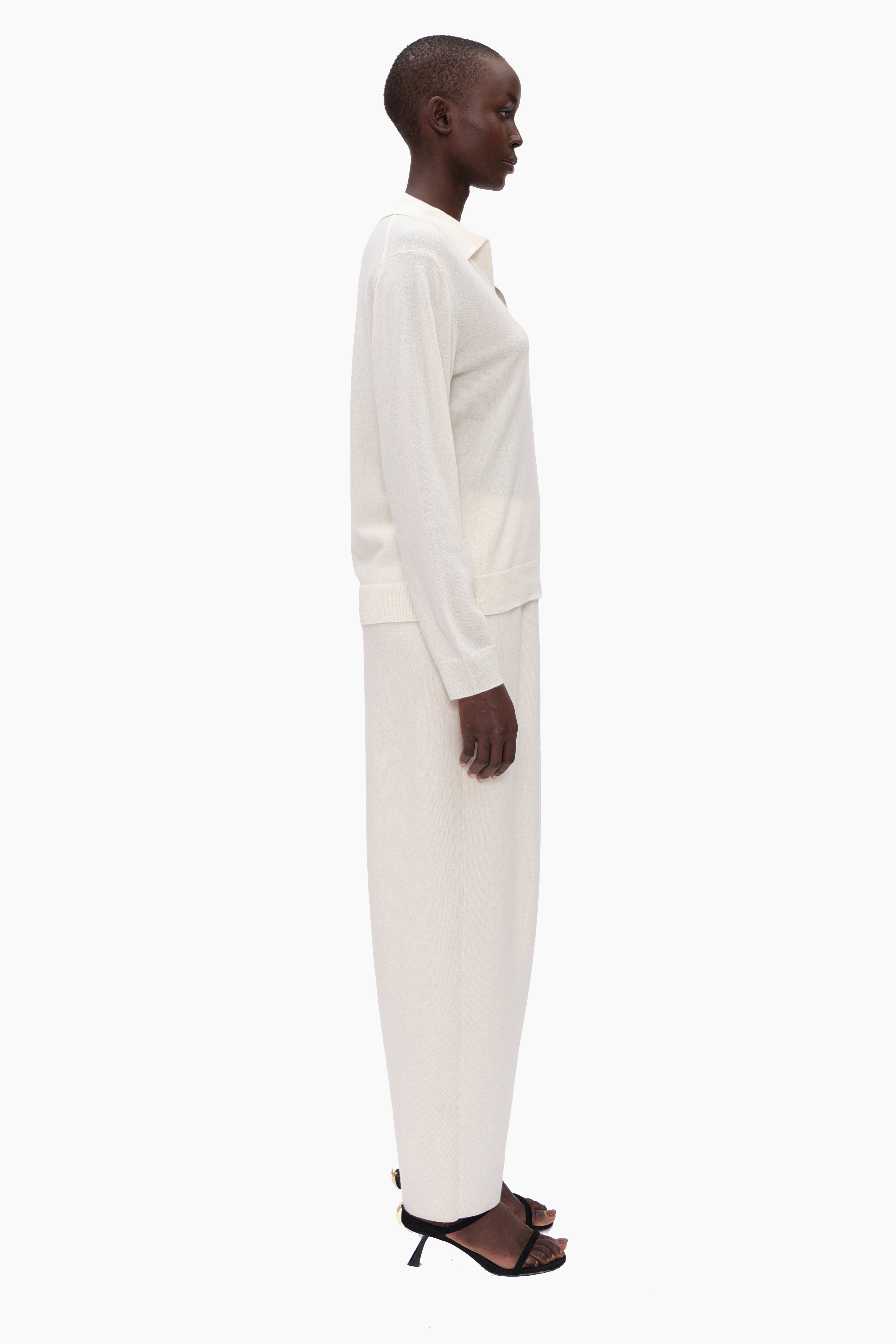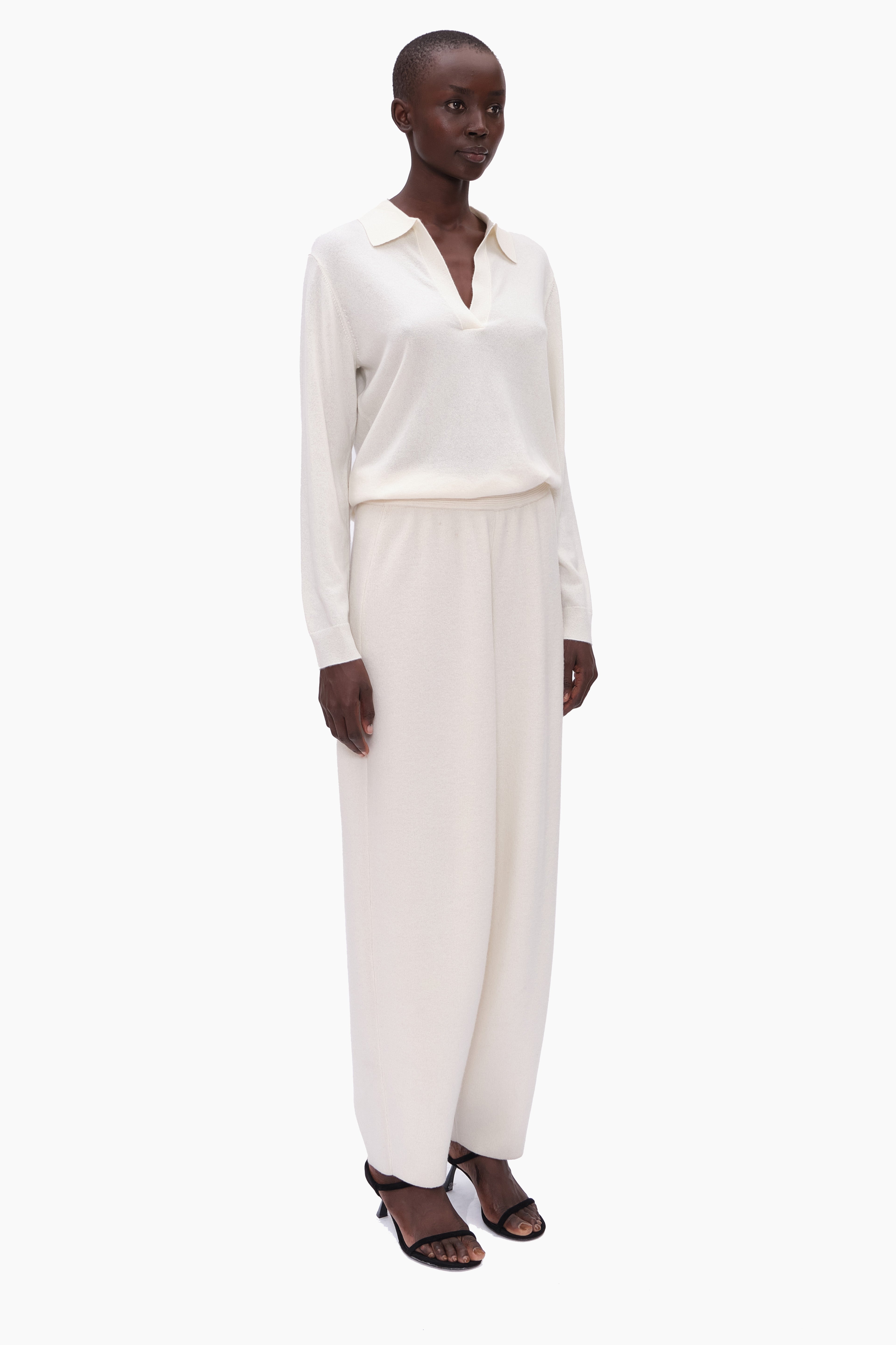 This baby goat cashmere jumper is an effortless staple, combining style and comfort in one refined piece. Featuring a relaxed polo collar that frames the V-neckline, it offers a laid-back yet polished look.