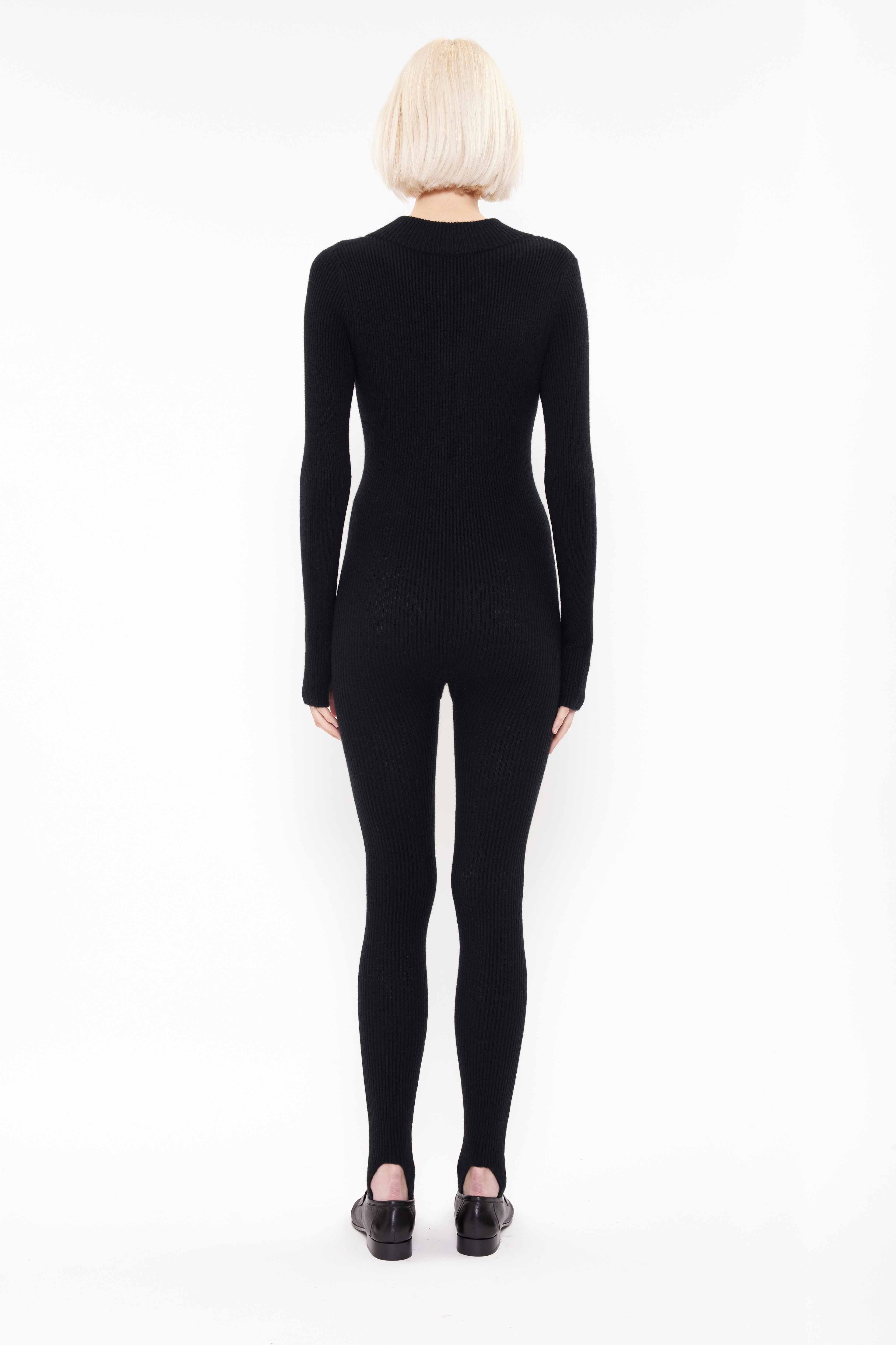 This unique long sleeve catsuit, highlighted by a flattering high neckline, in luxurious stretchy knit cashmere, carefully and sustainably selected for its exceptional stretch and fabric recovery. Featuring fully fashioned seams and bust detail, with a refined sexy, but elegant silhouette.