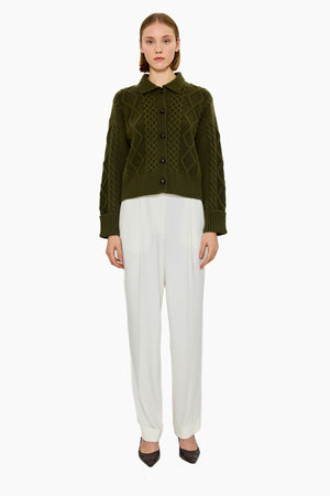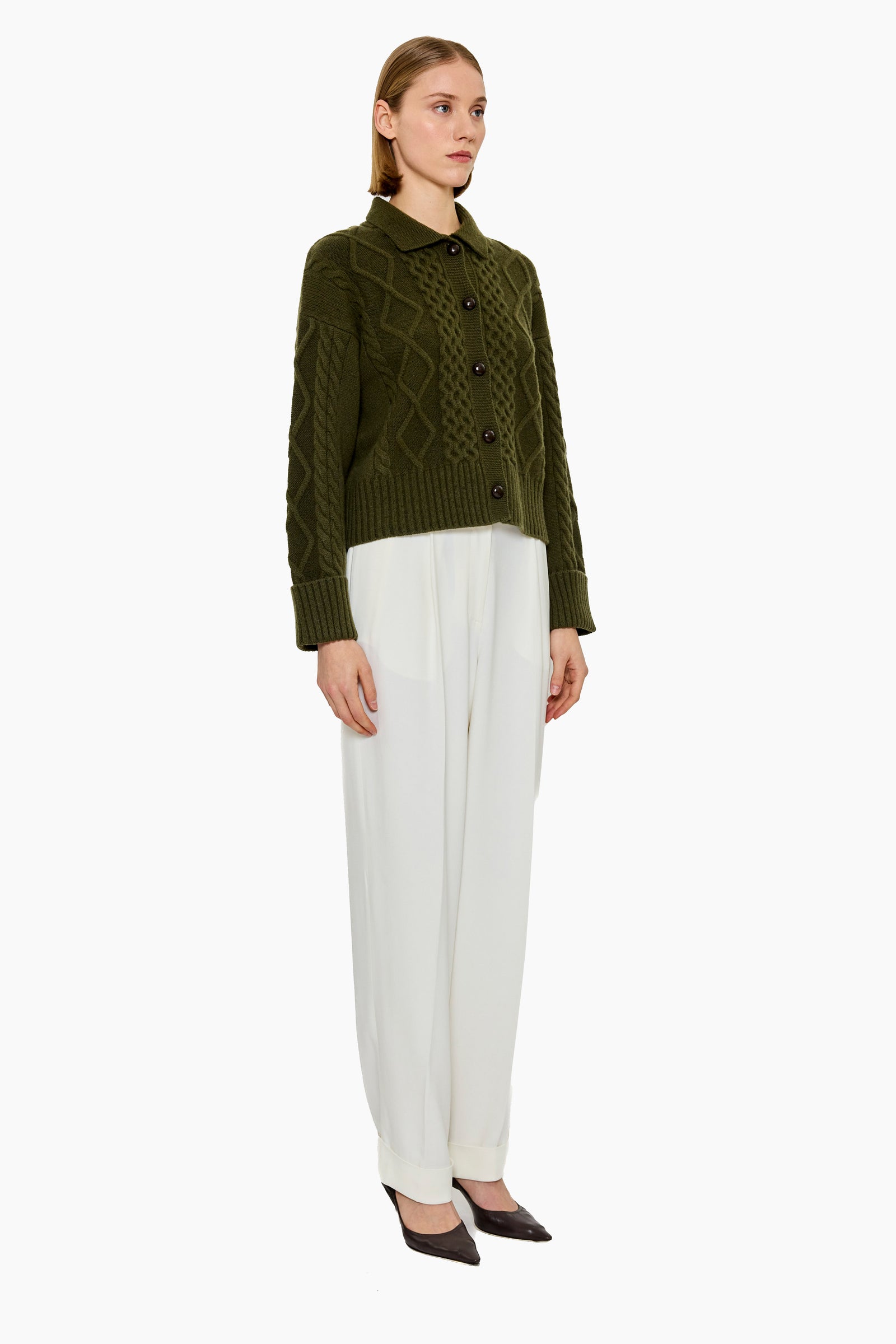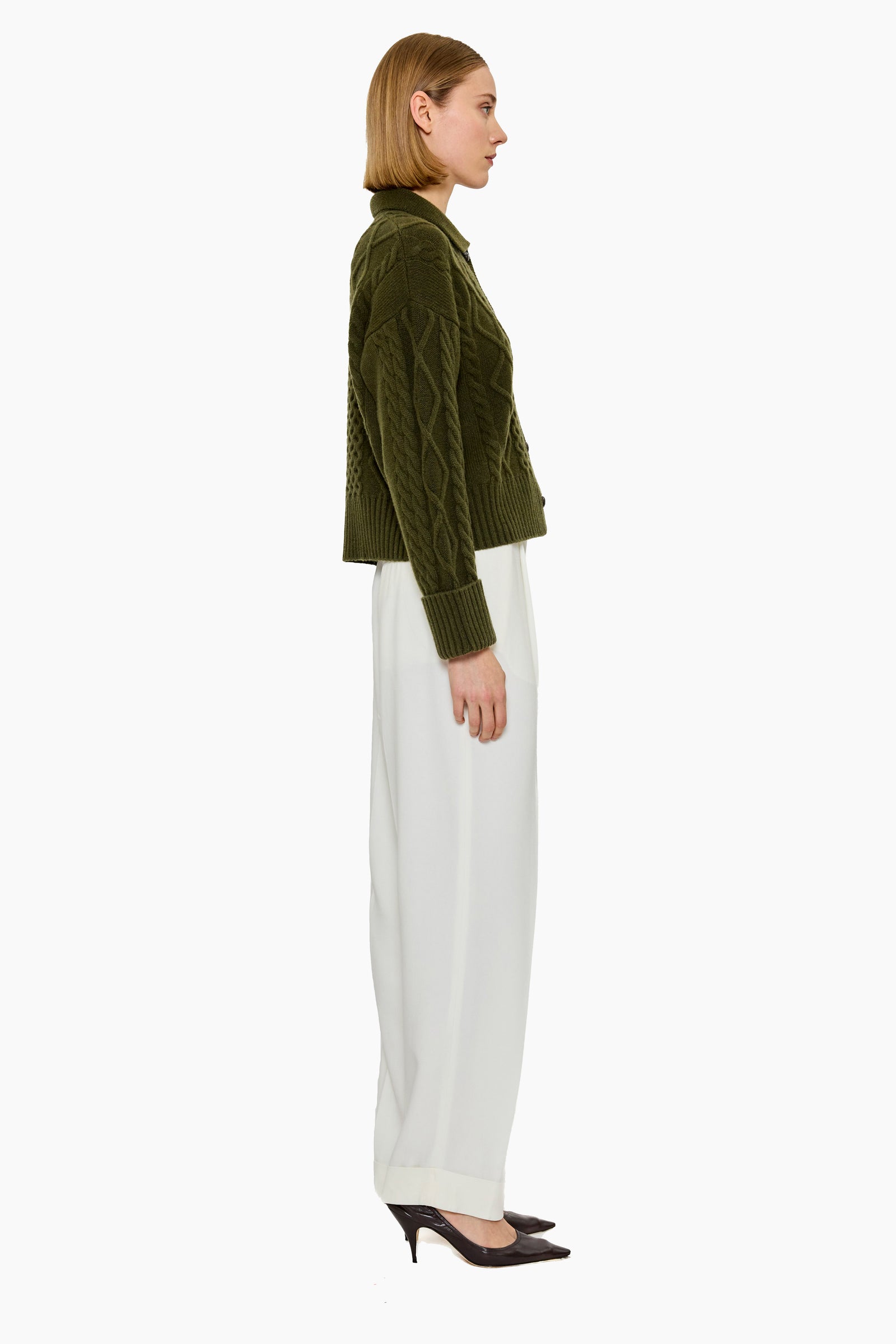 The Columbia Button-Down Polo Neck Cardigan blends classic design with luxurious comfort. Crafted from 100% cashmere, it features a polo-style collar, button-down front, and folded-up sleeves for a relaxed, contemporary look. Soft, cozy, and versatile, it’s perfect for layering or wearing on its own for effortless style.