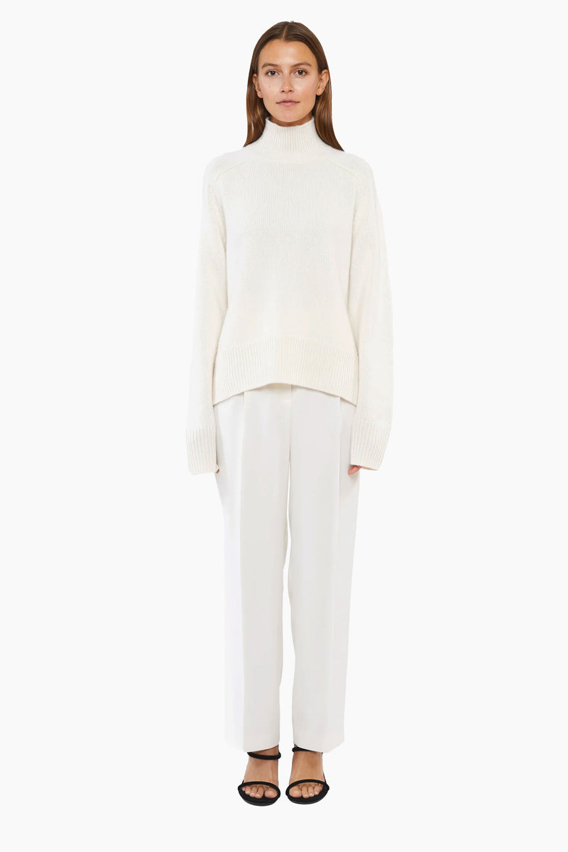 Elevate your wardrobe with this half roll-neck jumper, crafted from heavy-weight chunky knit cashmere for timeless sophistication. Fully fashioned seams enhance its relaxed yet elegant silhouette, while a ribbed neckline, cuffs, and hem add a refined touch. A cozy classic for effortless everyday style.