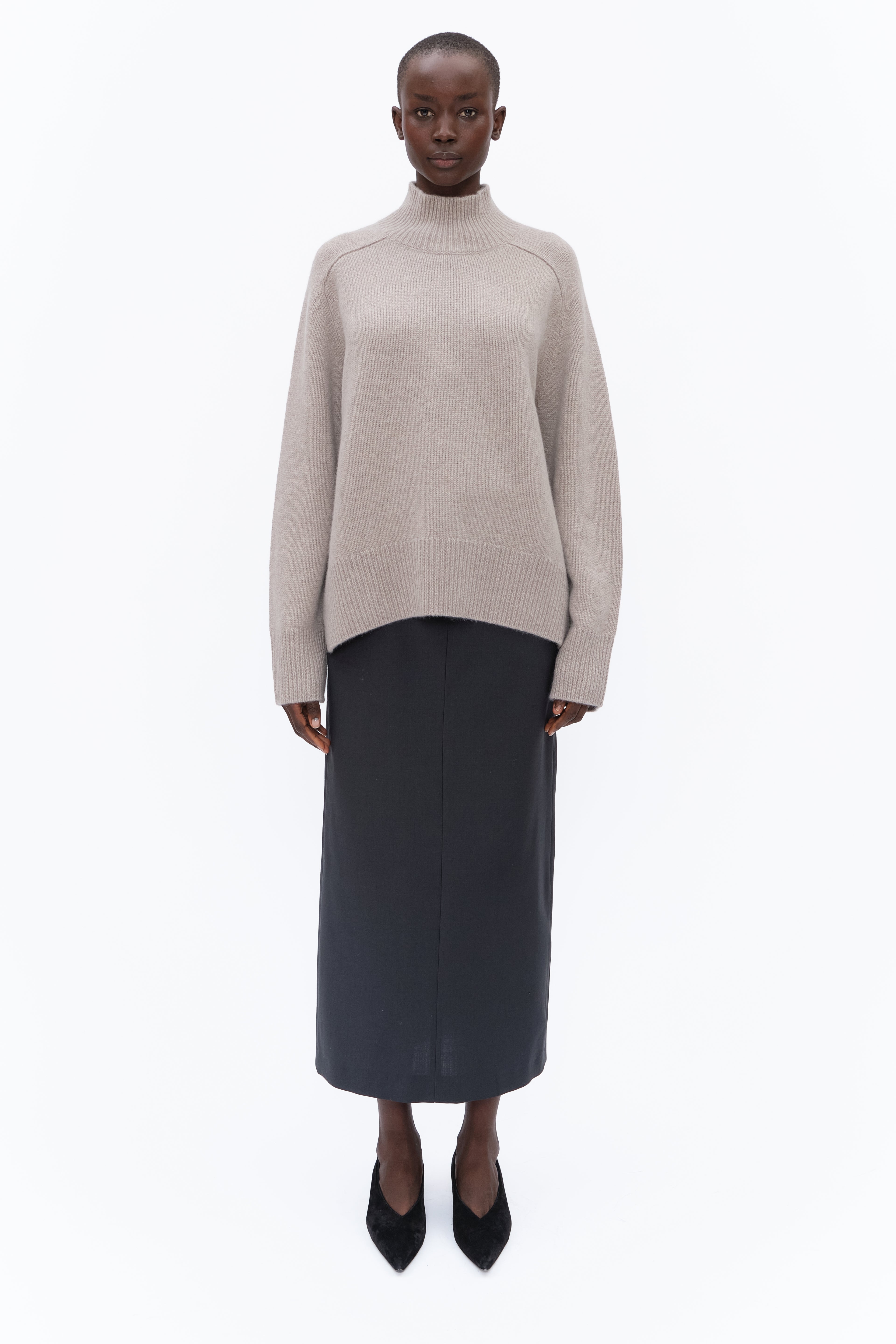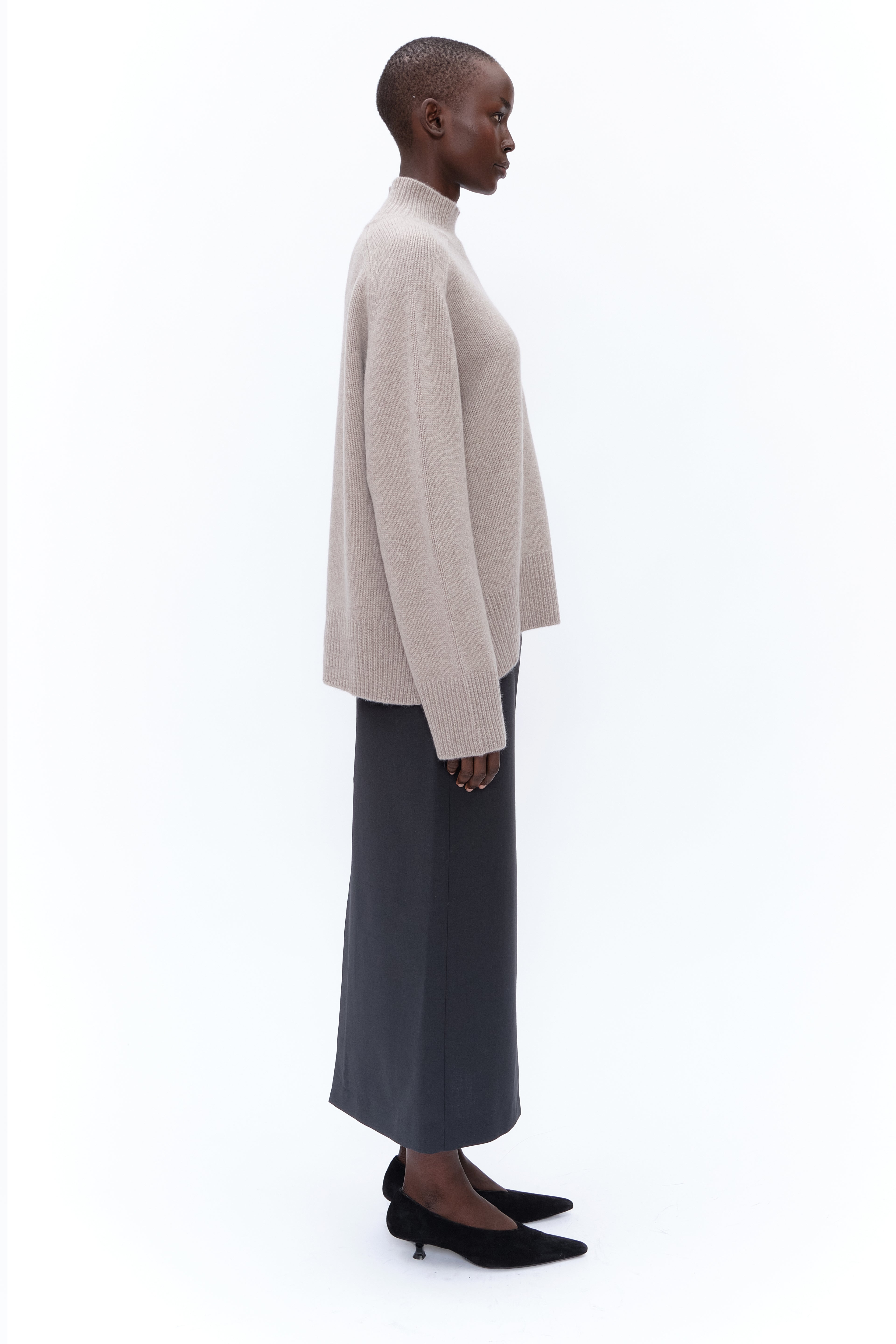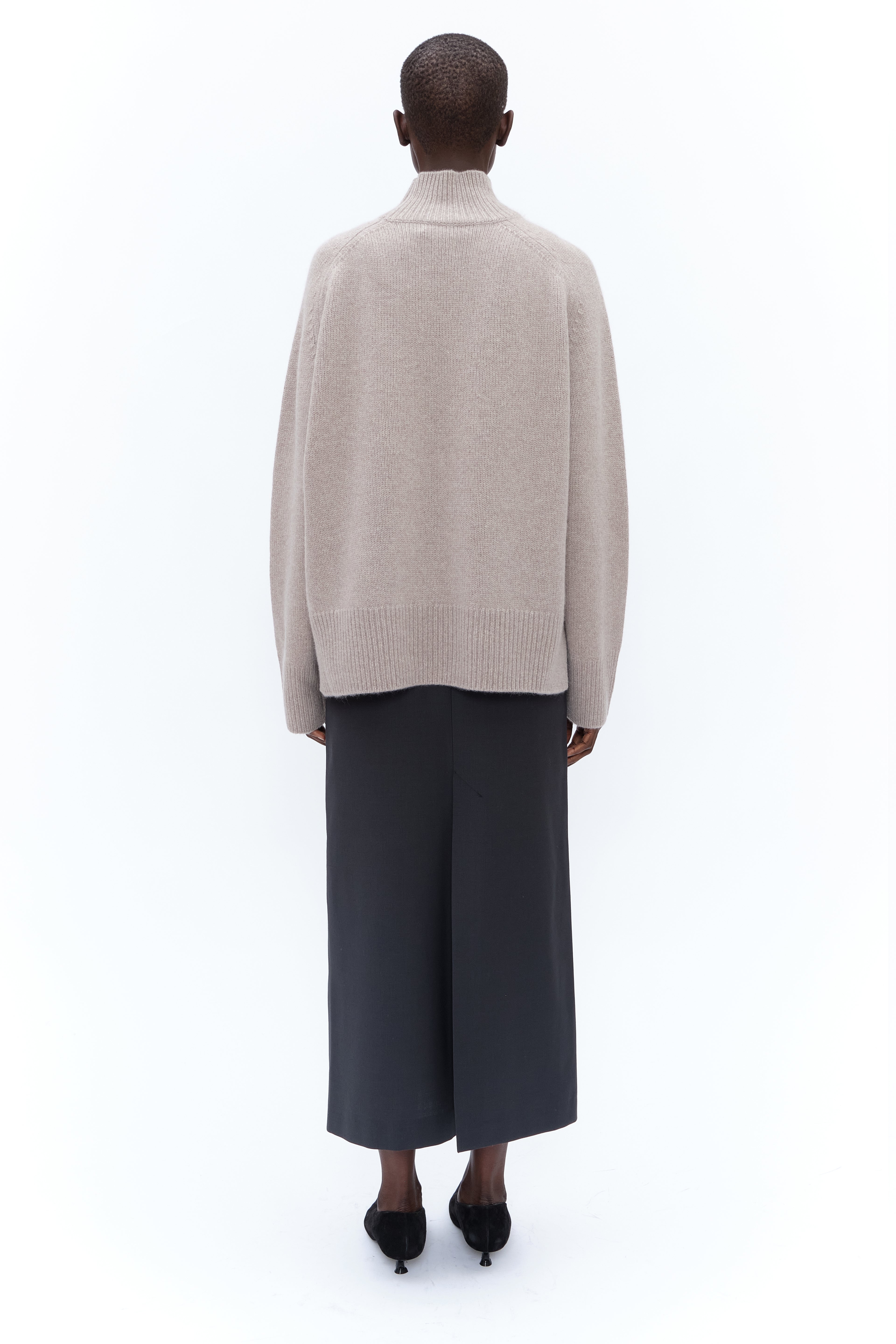 Elevate your wardrobe with this half roll-neck jumper, crafted from heavy-weight chunky knit cashmere for timeless sophistication. Fully fashioned seams enhance its relaxed yet elegant silhouette, while a ribbed neckline, cuffs, and hem add a refined touch. A cozy classic for effortless everyday style.
