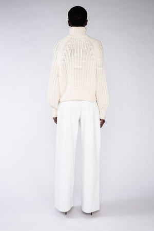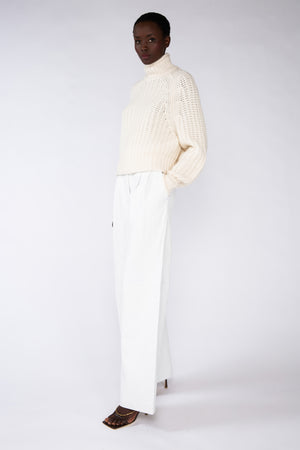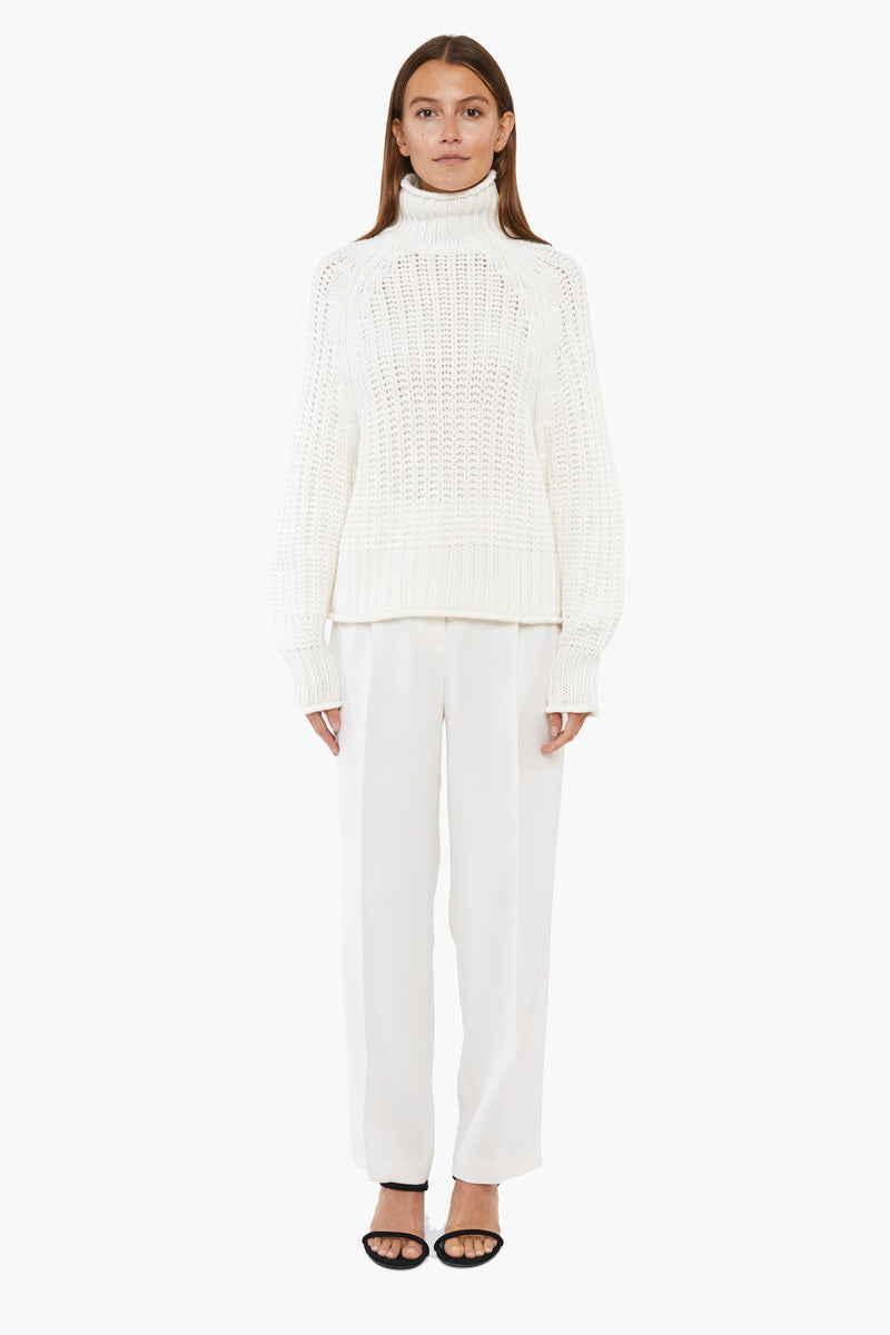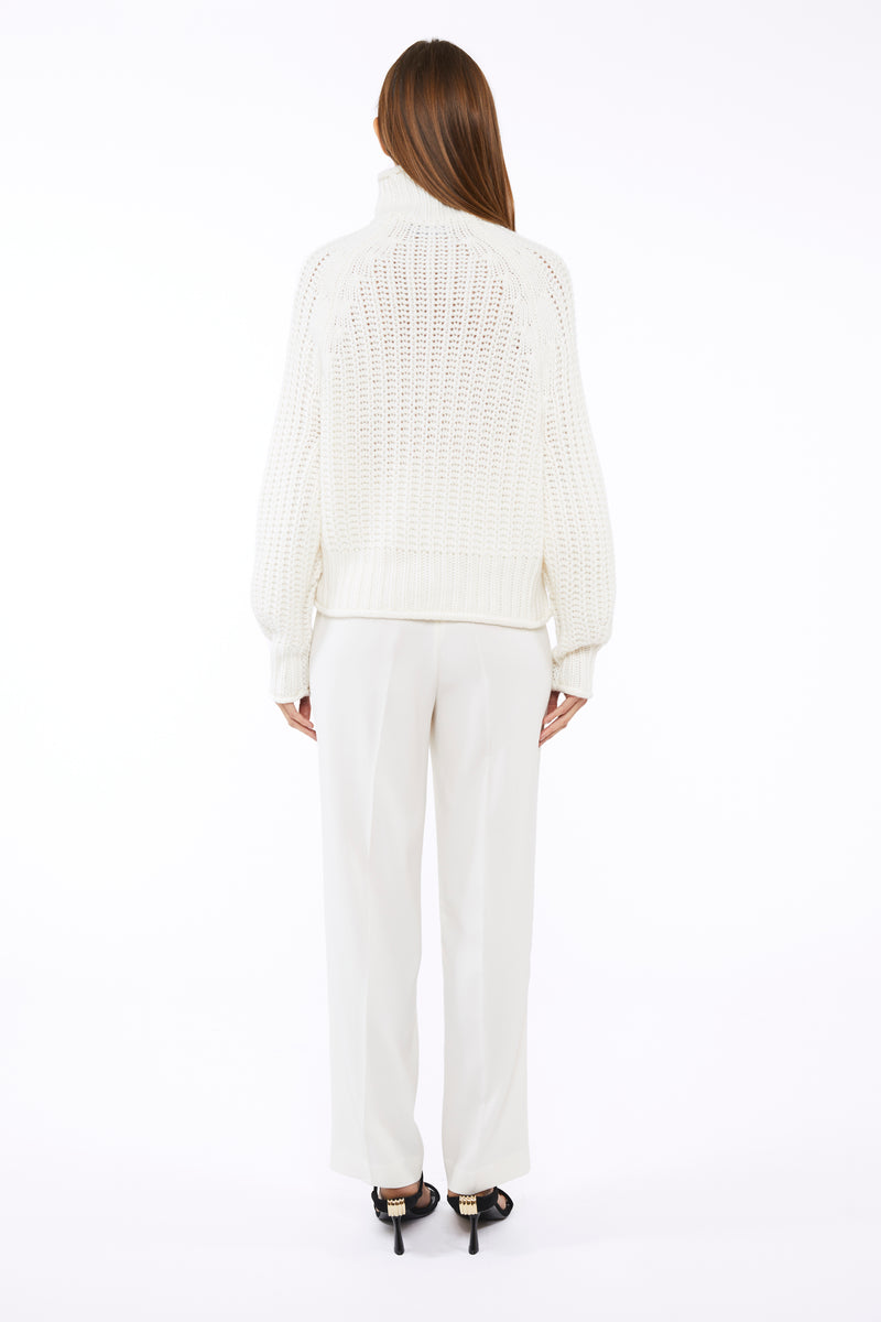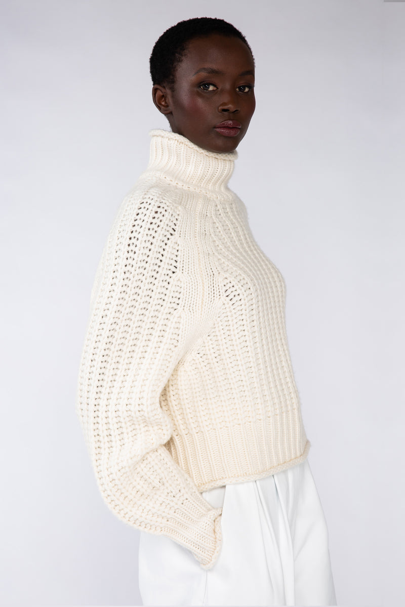 This high-neck hand-knitted cashmere jumper showcases artisanal craftsmanship and luxurious comfort. Designed with a relaxed silhouette, it offers an effortlessly chic look for any occasion. Crafted from pure cashmere, it combines timeless style with exceptional softness.