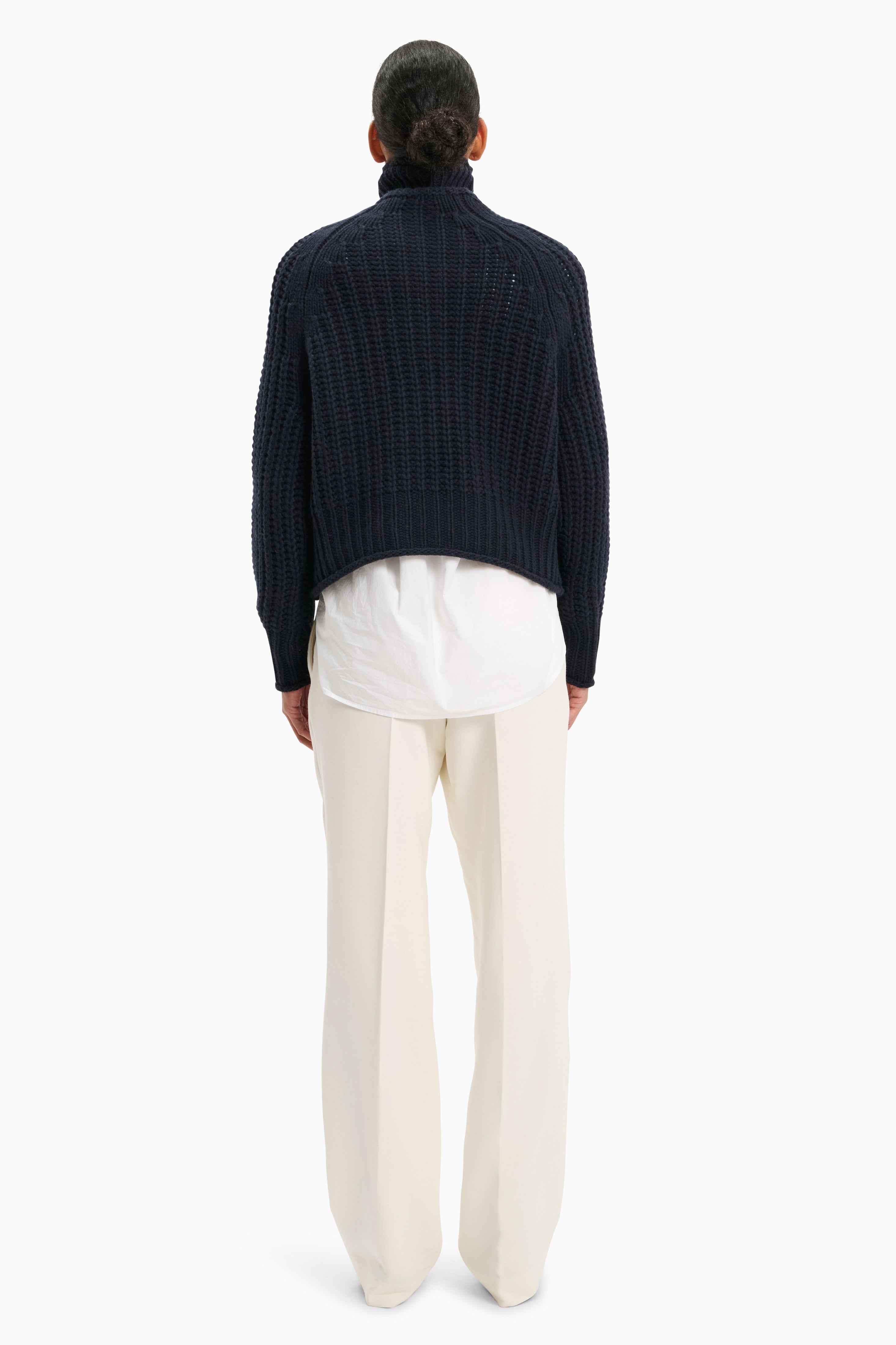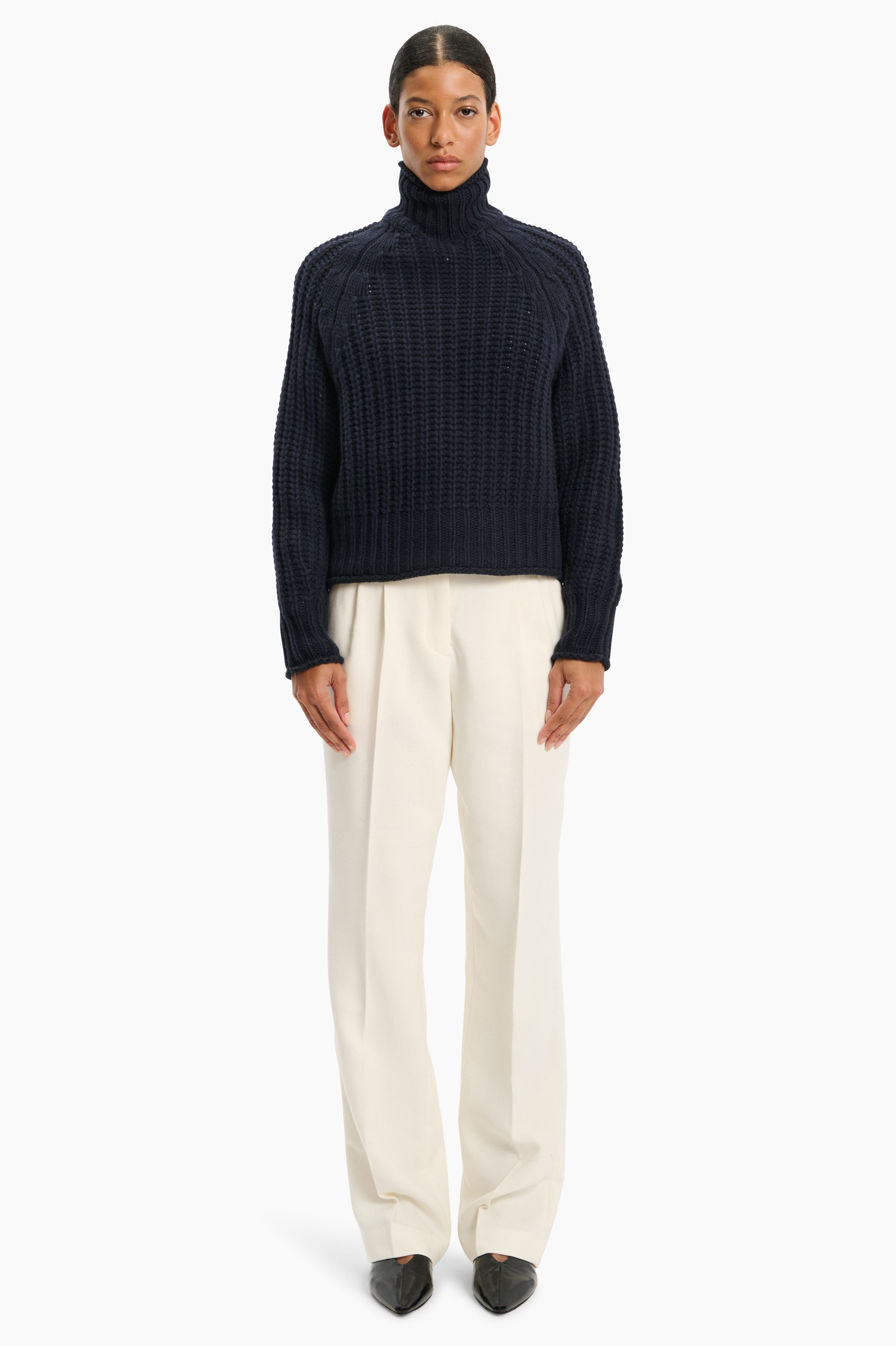 This high-neck hand-knitted cashmere jumper showcases artisanal craftsmanship and luxurious comfort. Designed with a relaxed silhouette, it offers an effortlessly chic look for any occasion. Crafted from pure cashmere, it combines timeless style with exceptional softness.