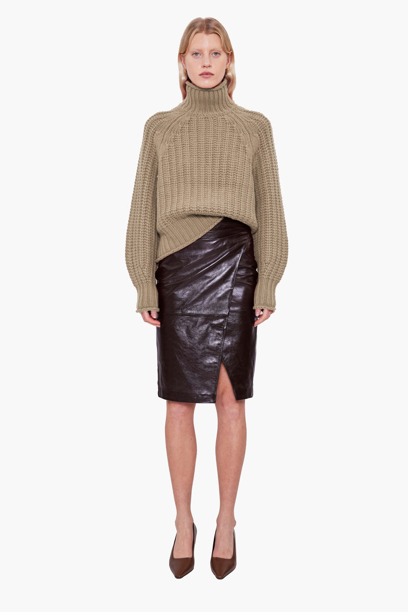 This high-neck hand-knitted cashmere jumper showcases artisanal craftsmanship and luxurious comfort. Designed with a relaxed silhouette, it offers an effortlessly chic look for any occasion. Crafted from pure cashmere, it combines timeless style with exceptional softness.