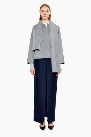 A timeless outer layer elevated by thoughtful design. Our Cashmere Jacket with Detachable Scarf Detail is crafted from pure, luxuriously soft cashmere—offering both warmth and understated elegance. The integrated scarf, effortlessly detachable, allows for versatile styling that adapts to your mood and setting.