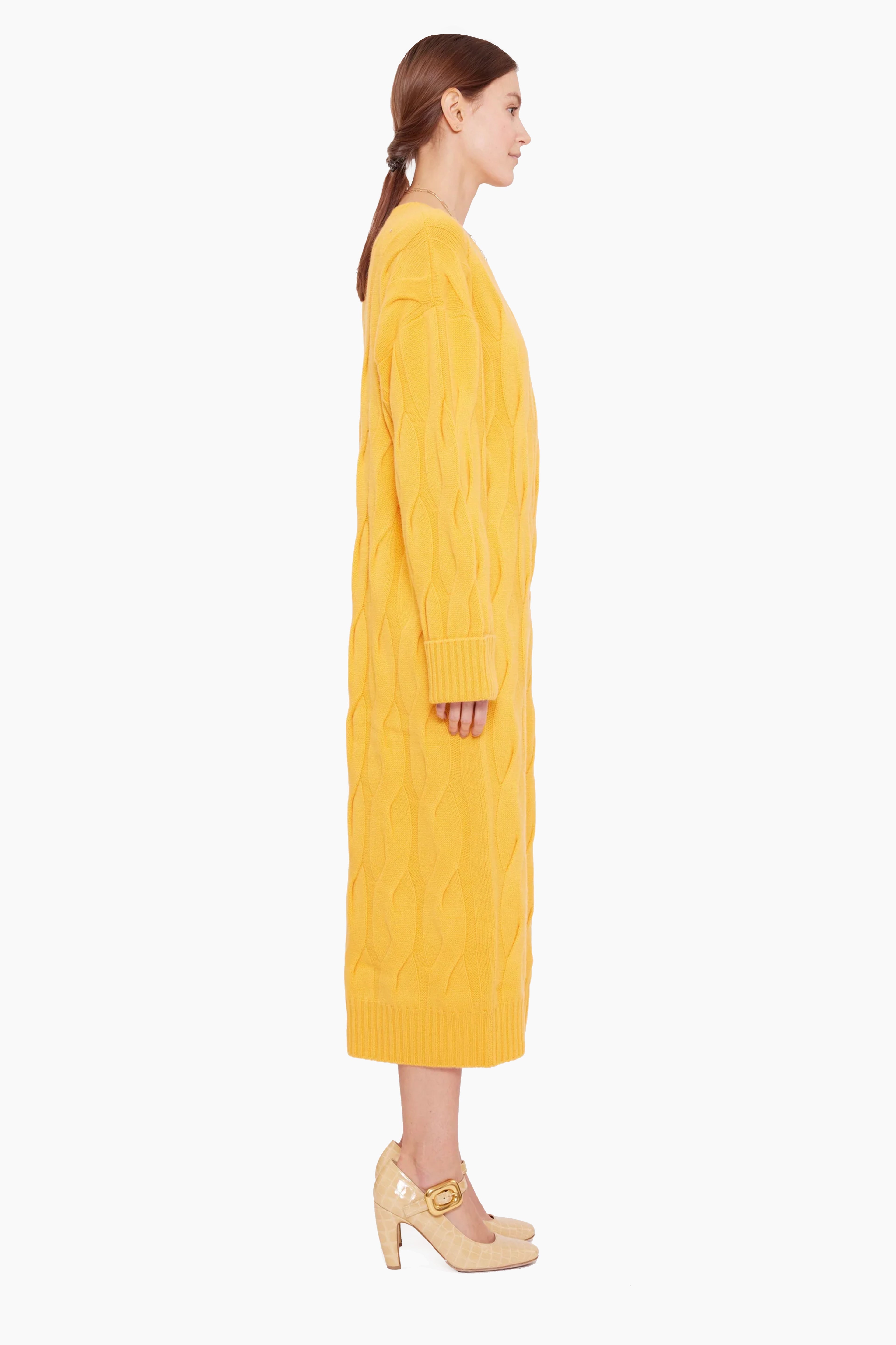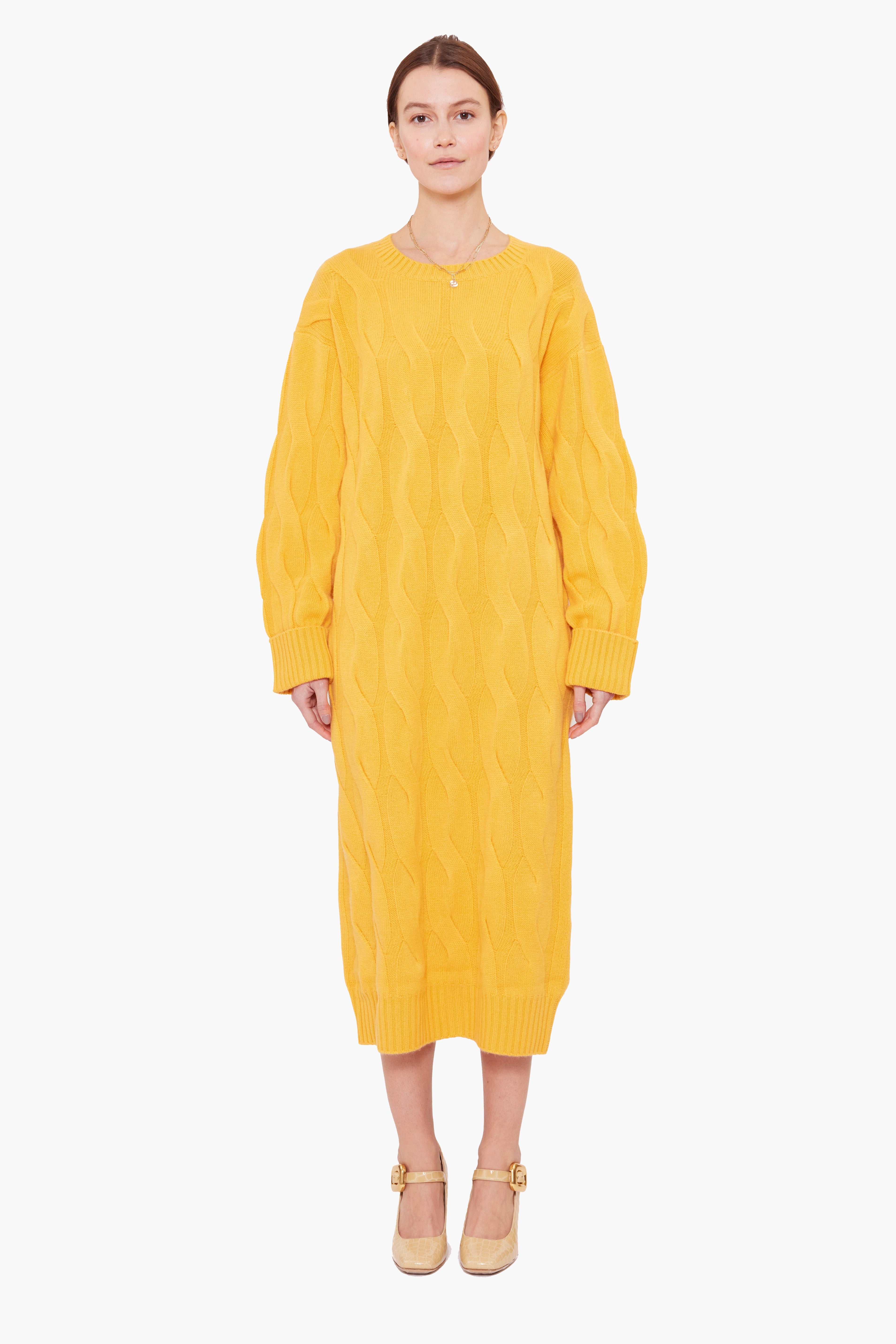 This effortlessly elegant longline dress in heavy weight winter knit cashmere, has been carefully and sustainably selected for its exceptional softness and rich texture. It features fully fashioned seams, with a full length silhouette and shift style for a casual yet chic look.