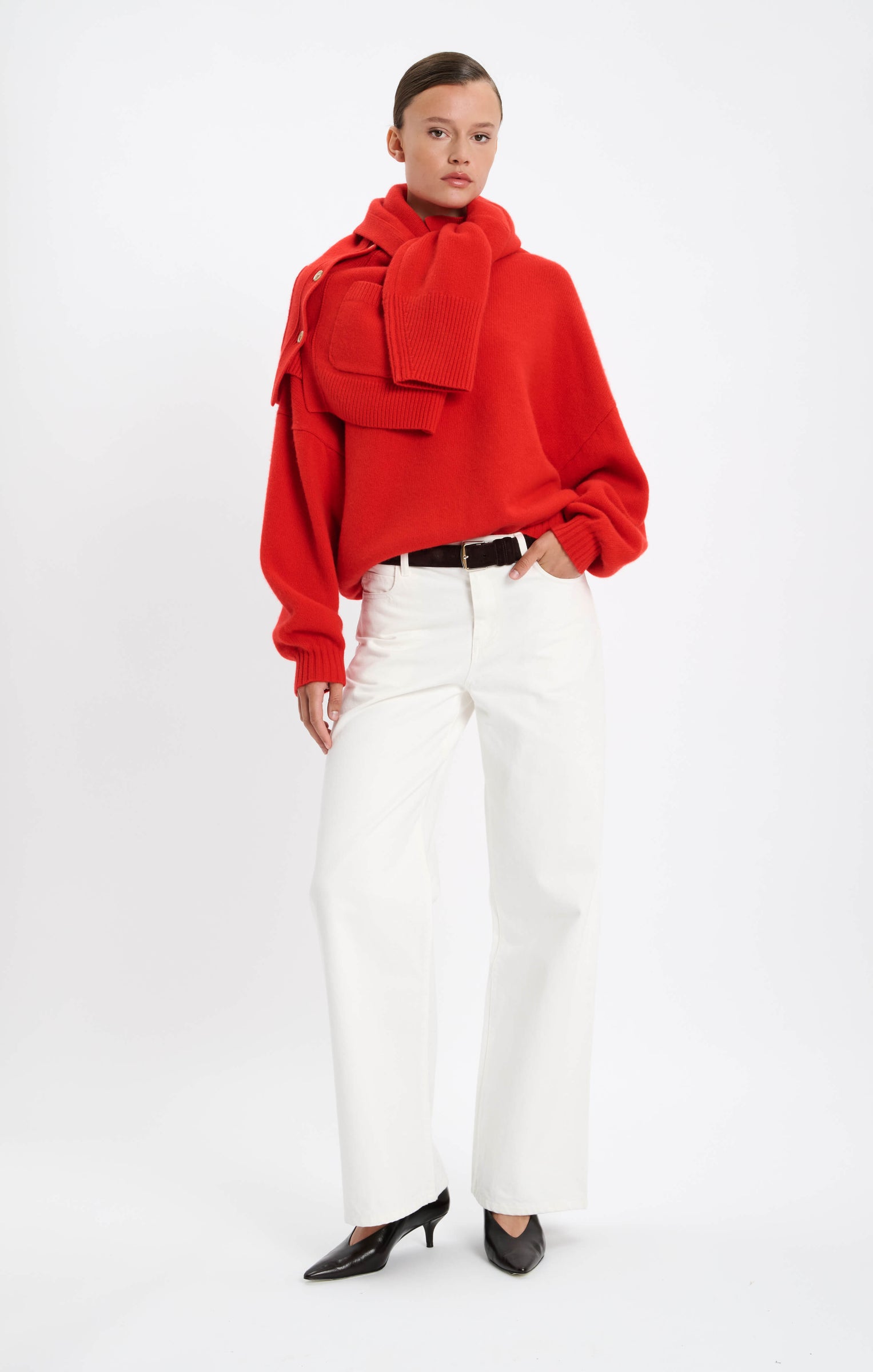 A chunky knit cashmere sweater designed with a slightly cropped silhouette for a modern, sophisticated look. Finely ribbed cuffs and hem, and billowed sleeves, this sweater brings elegance to any outfit. Luxuriously soft and sustainably crafted from pure cashmere.