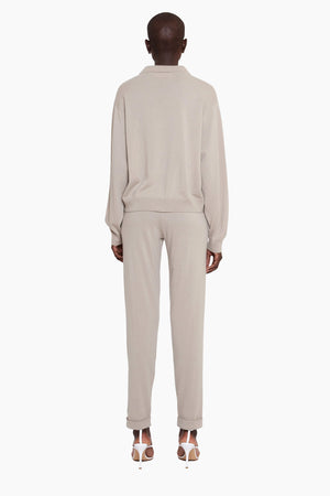 These baby goat cashmere tracksuit pants are shaped for a relaxed fit, offering both comfort and style. The straight-leg design is complemented by a drawstring elasticated waist for a customizable fit, while two side slip pockets add practicality. Crafted from 100% baby goat cashmere, they combine softness with effortless chic.