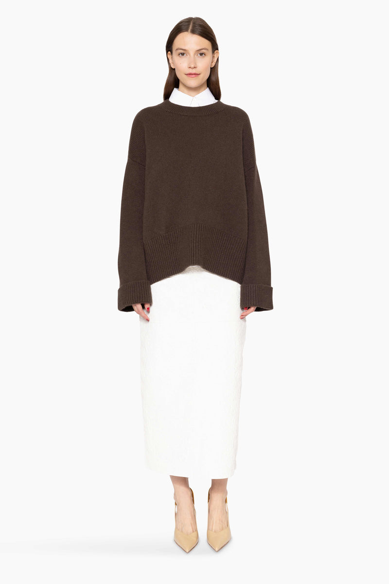 Cozy up in this luxurious chunky knit sweater crafted from 100% heavy-weight cashmere. Featuring a classic crew neck and ribbed sleeves, it combines timeless design with supreme warmth. Perfect for chilly days, this sweater is a staple for effortless style and comfort.