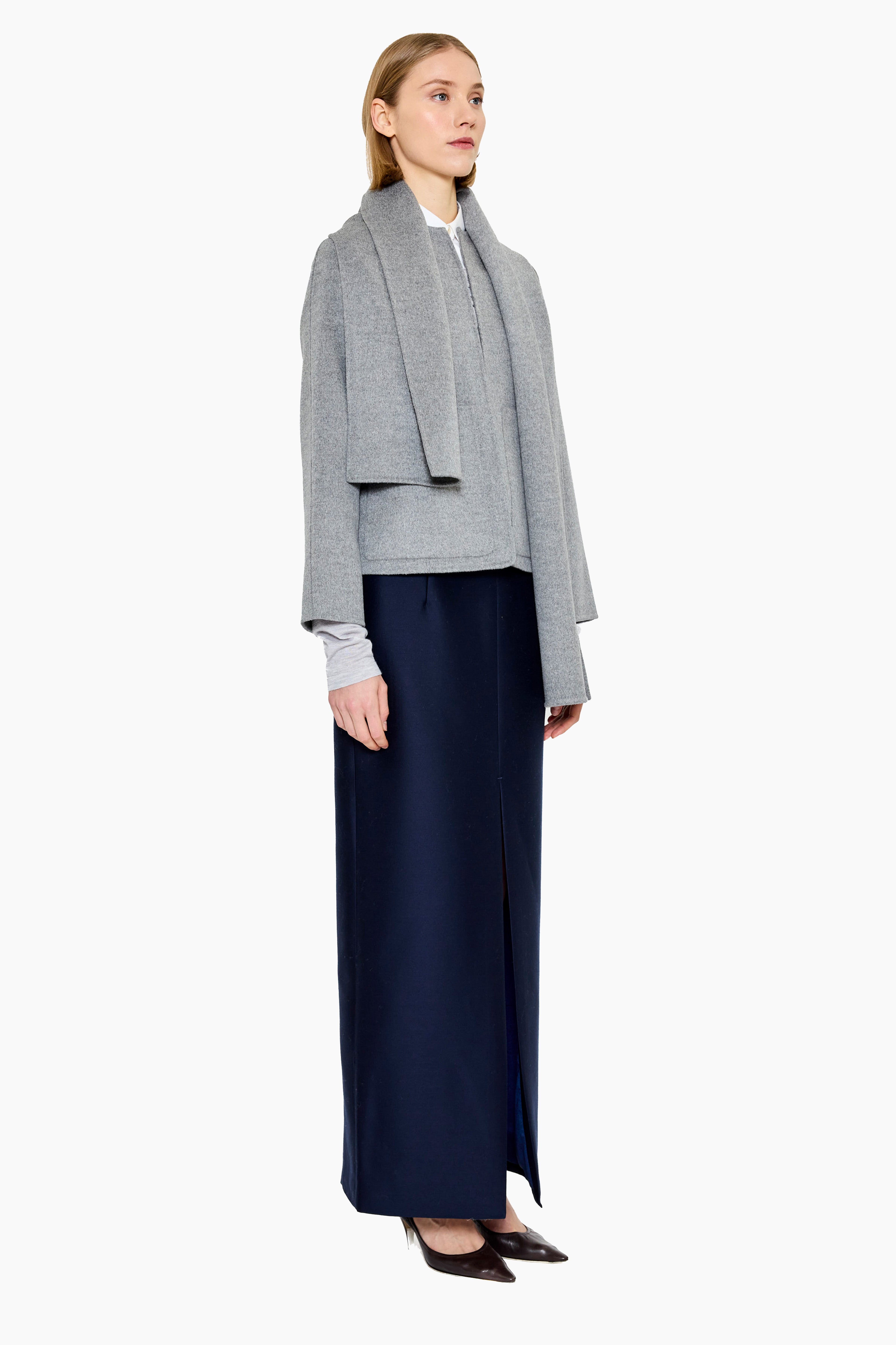 A timeless outer layer elevated by thoughtful design. Our Cashmere Jacket with Detachable Scarf Detail is crafted from pure, luxuriously soft cashmere—offering both warmth and understated elegance. The integrated scarf, effortlessly detachable, allows for versatile styling that adapts to your mood and setting.
