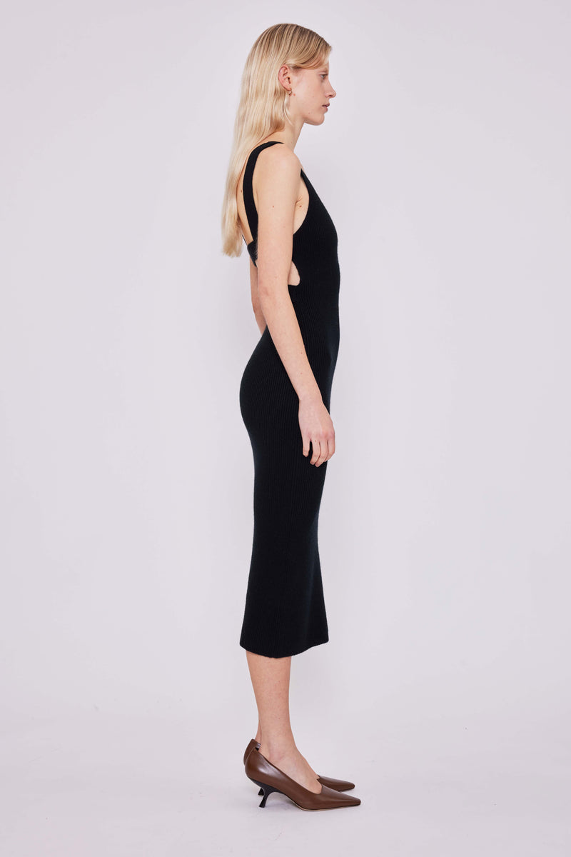 This unique sleeveless dress, highlighted by a flattering sweetheart neckline, in luxurious stretchy knit cashmere, carefully and sustainably selected for its exceptional stretch and fabric recovery. Featuring fully fashioned seams and bust detail, with a refined sexy, but elegant A-line silhouette.