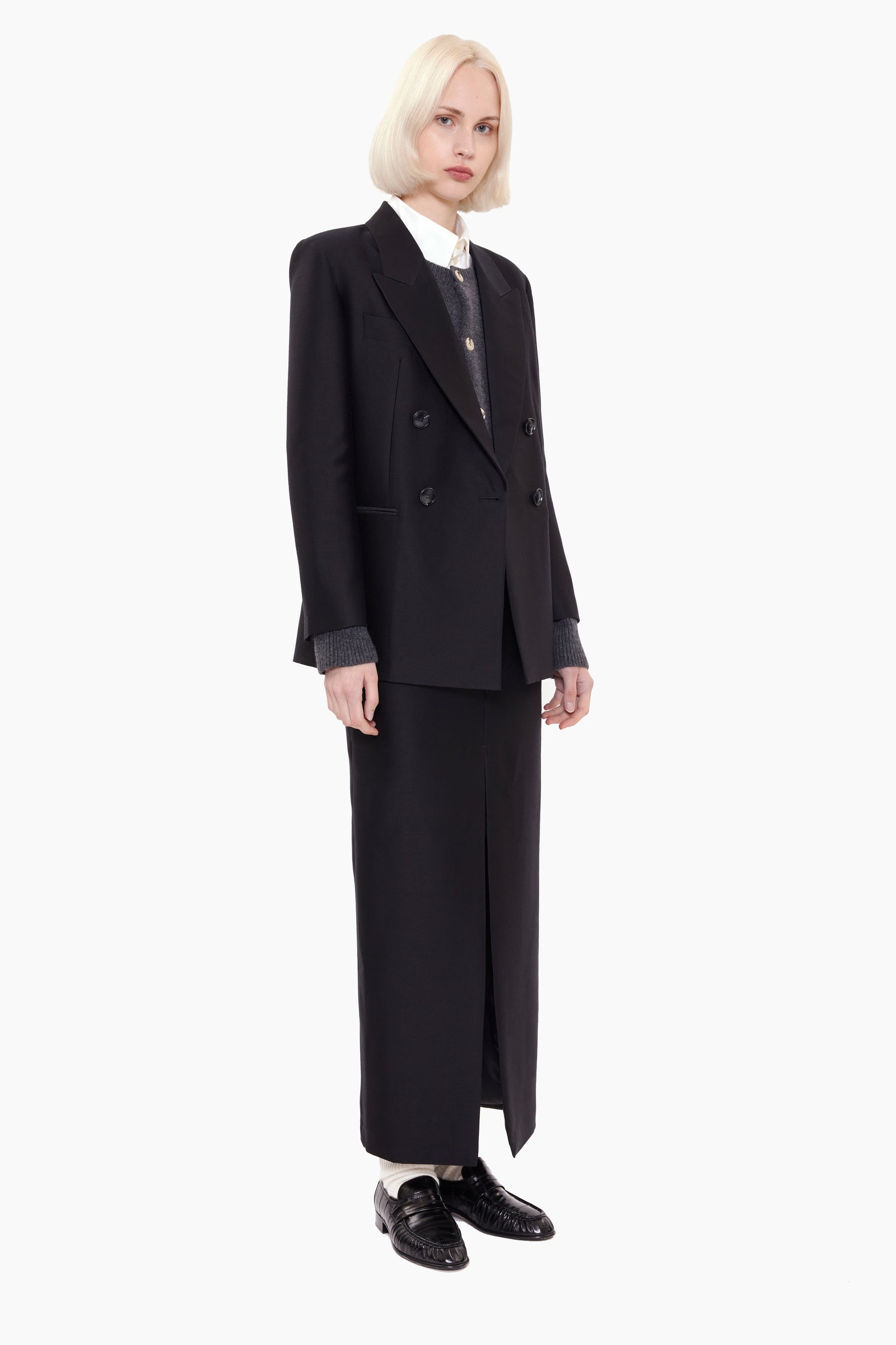 This double-breasted blazer from our Woven Soft Tailoring collection combines classic design with modern elegance. Expertly crafted, it features a sleek silhouette and is lined with luxurious silk for an added touch of sophistication. A refined, versatile piece perfect for both professional and evening wear.