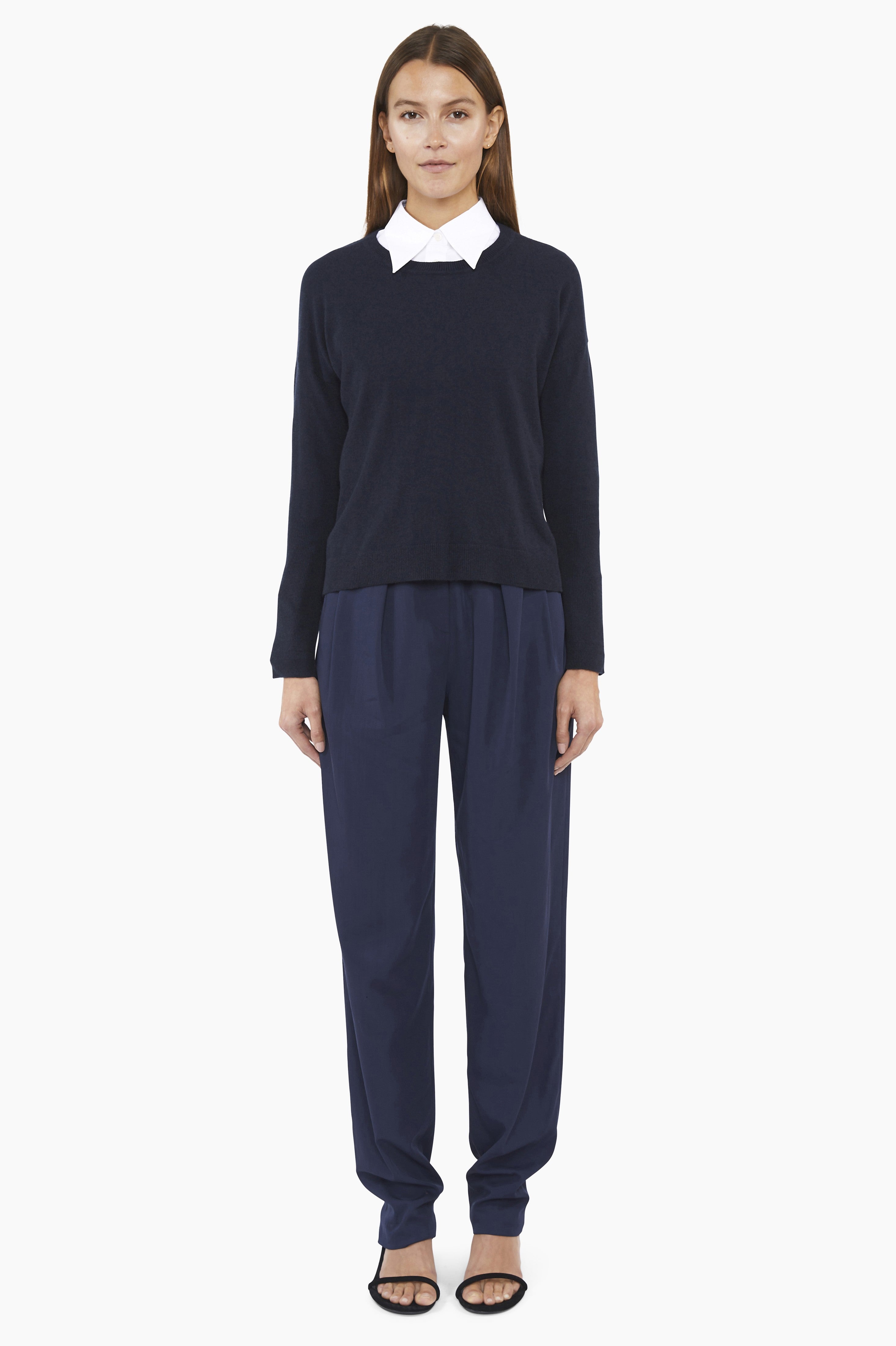 This crewneck jumper, crafted from luxurious baby goat cashmere, features a fitted silhouette balanced by elegant long sleeves. Carefully and sustainably selected for its exceptional lightweight softness, this piece offers timeless style and comfort.