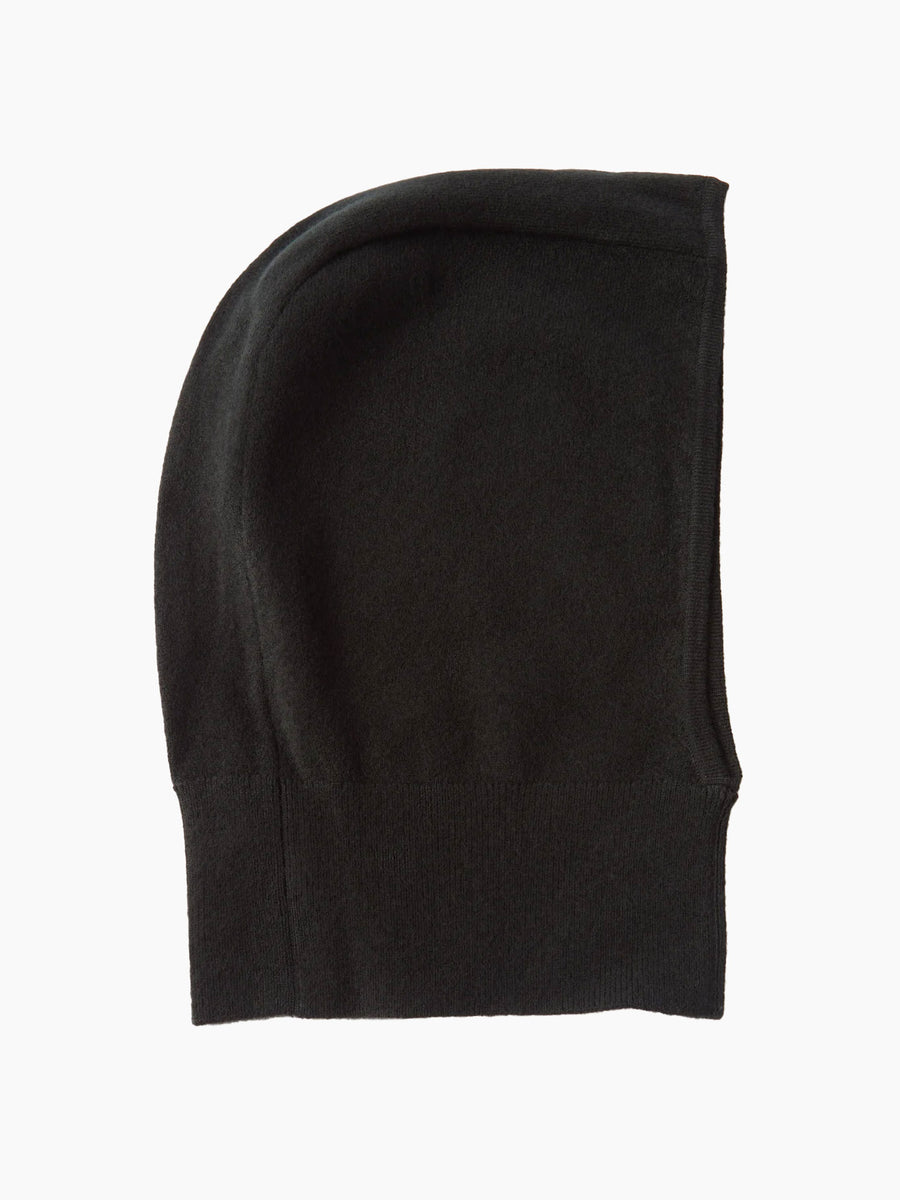 100% Cashmere balaclava crafted from luxuriously soft baby goat cashmere. Featuring a ribbed neckline and open face fixture.