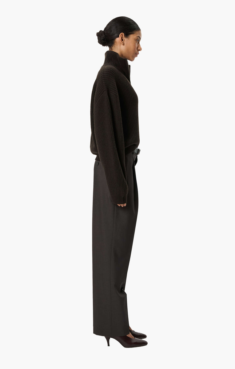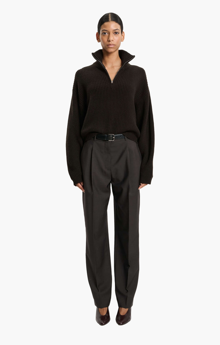 The Millie Quarter-Zip Ribbed Jumper blends casual ease with luxurious comfort. Crafted from 100% cashmere, it features a folded neck with a quarter-zip closure, ribbed detailing, and a relaxed fit. Soft, cozy, and versatile, it’s perfect for layering or wearing on its own for effortless style.