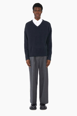 This Shirt collared v-neck neck jumper, in luxurious chunky knit cashmere, carefully and sustainably selected for its exceptional lightweight softness. With relaxed silhouette, ribbed cuffs and hem, and balanced by elegant long sleeves, Mr Battersea juper is perfect for layering or wearing on its own.