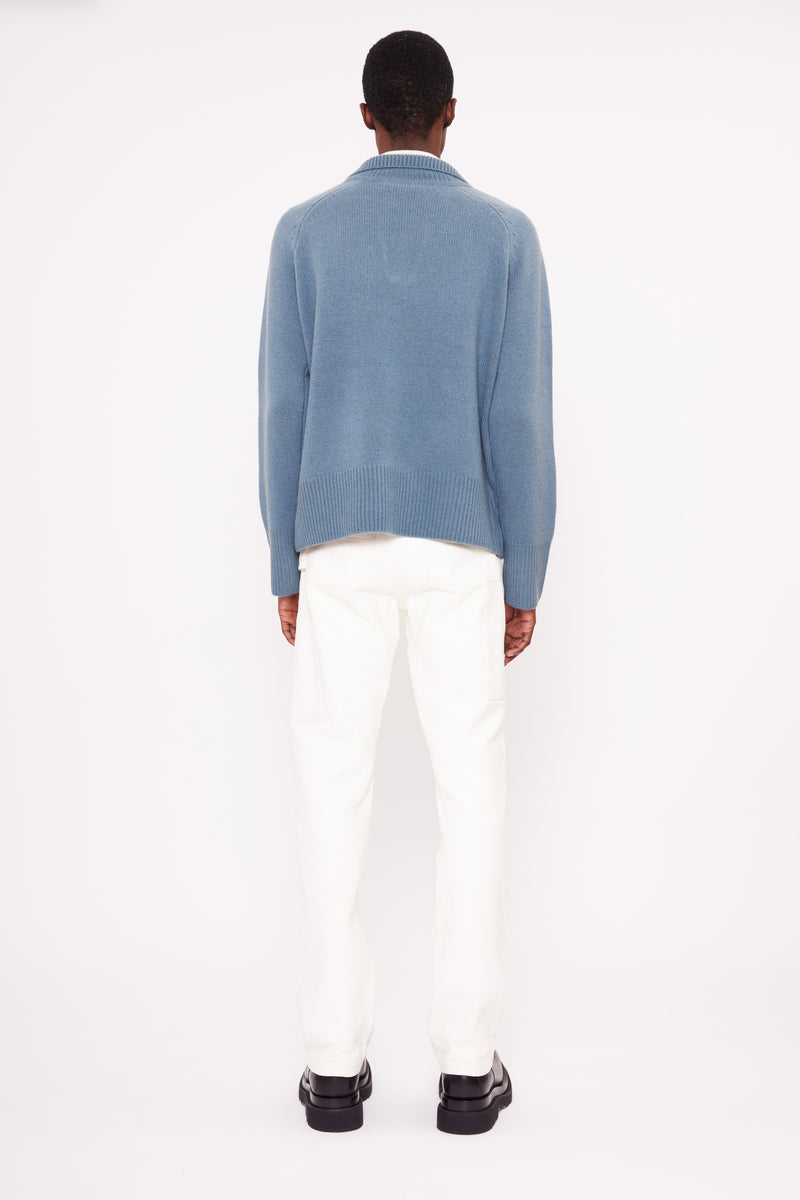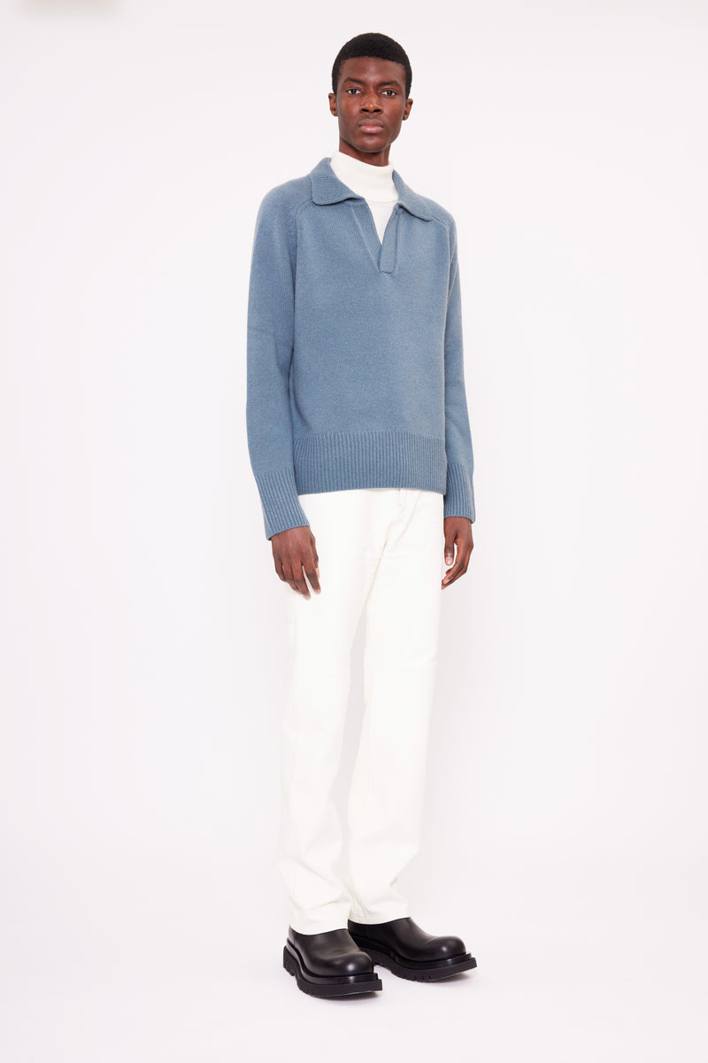 This Shirt collared v-neck jumper, in luxurious chunky knit cashmere, carefully and sustainably selected for its exceptional lightweight softness. With relaxed silhouette, ribbed cuffs and hem, and balanced by elegant long sleeves, Mr Clifton Gate is perfect for layering or wearing on its own.