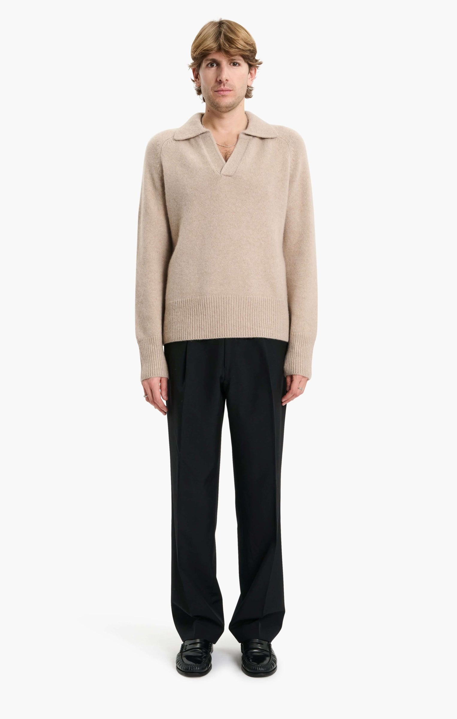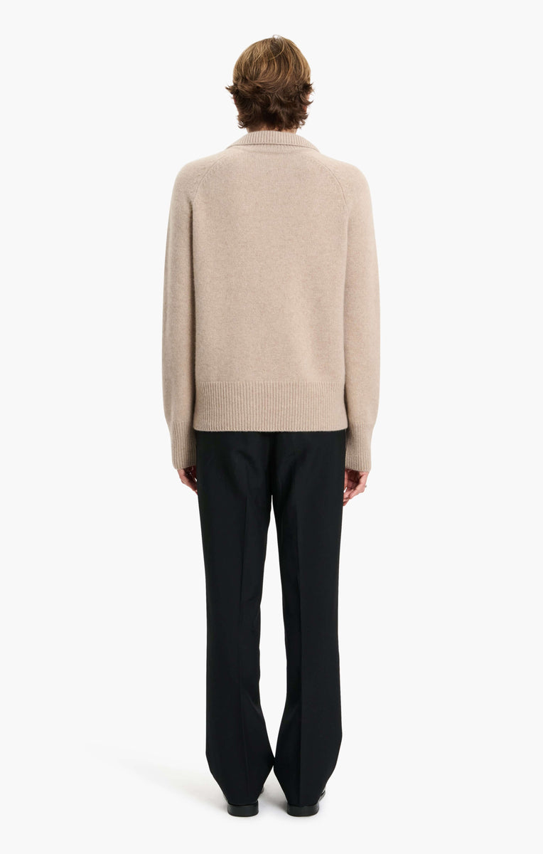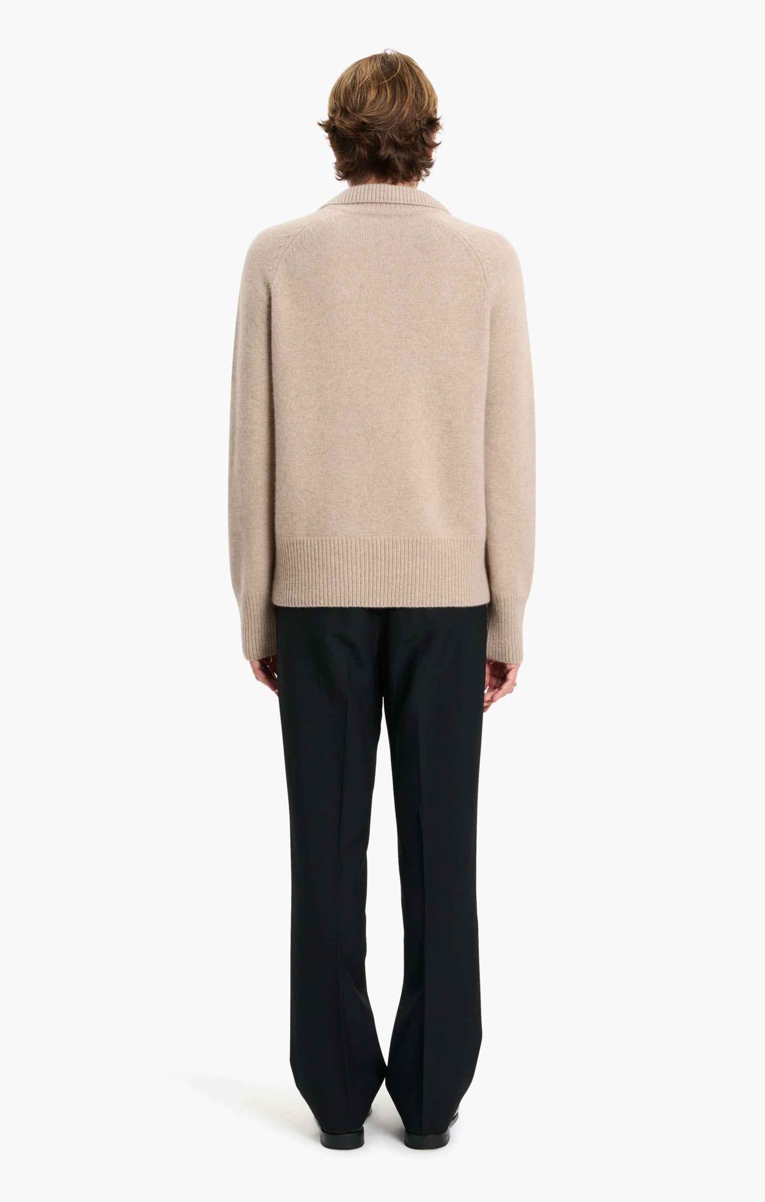 This Shirt collared v-neck neck sweater, in luxurious chunky knit cashmere, carefully and sustainably selected for its exceptional lightweight softness. With relaxed silhouette, ribbed cuffs and hem, and balanced by elegant long sleeves, Mr Clifton Gate is perfect for layering or wearing on its own.