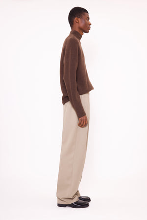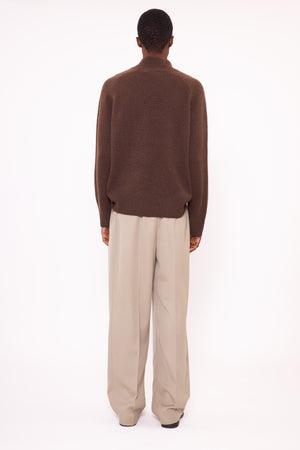 This Half roll neck jumper, in heavy weight luxurious chunky knit cashmere, carefully and sustainably selected for its exceptional softness and rich texture. Featuring fully fashioned raglan seams, with a slightly fitted cropped silhouette balanced by deliberately elongated sleeves and refined by a ribbed neckline, cuffs and hem.